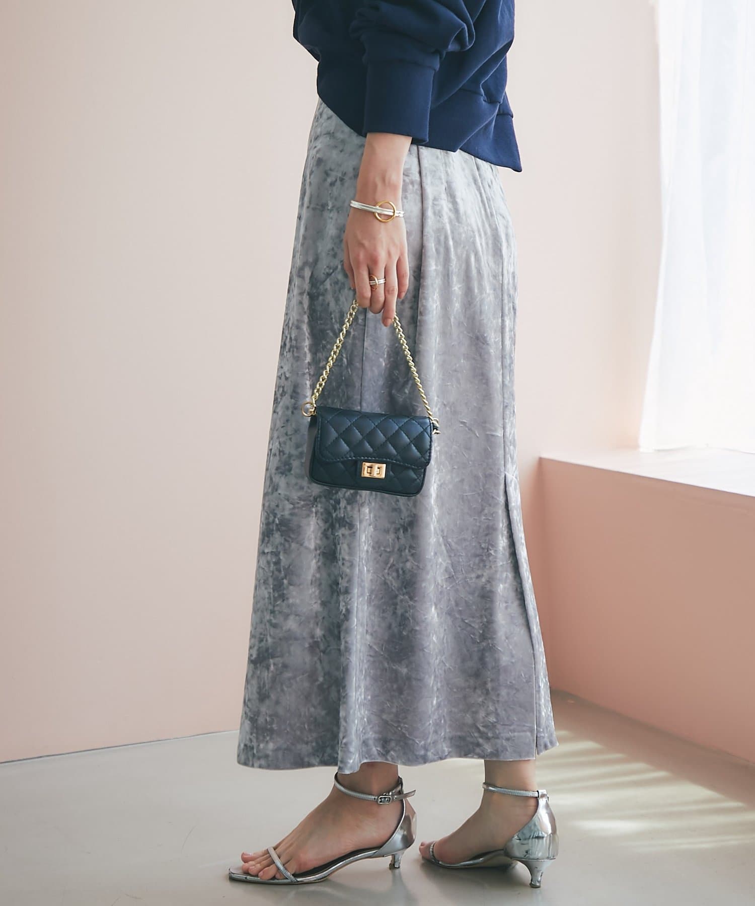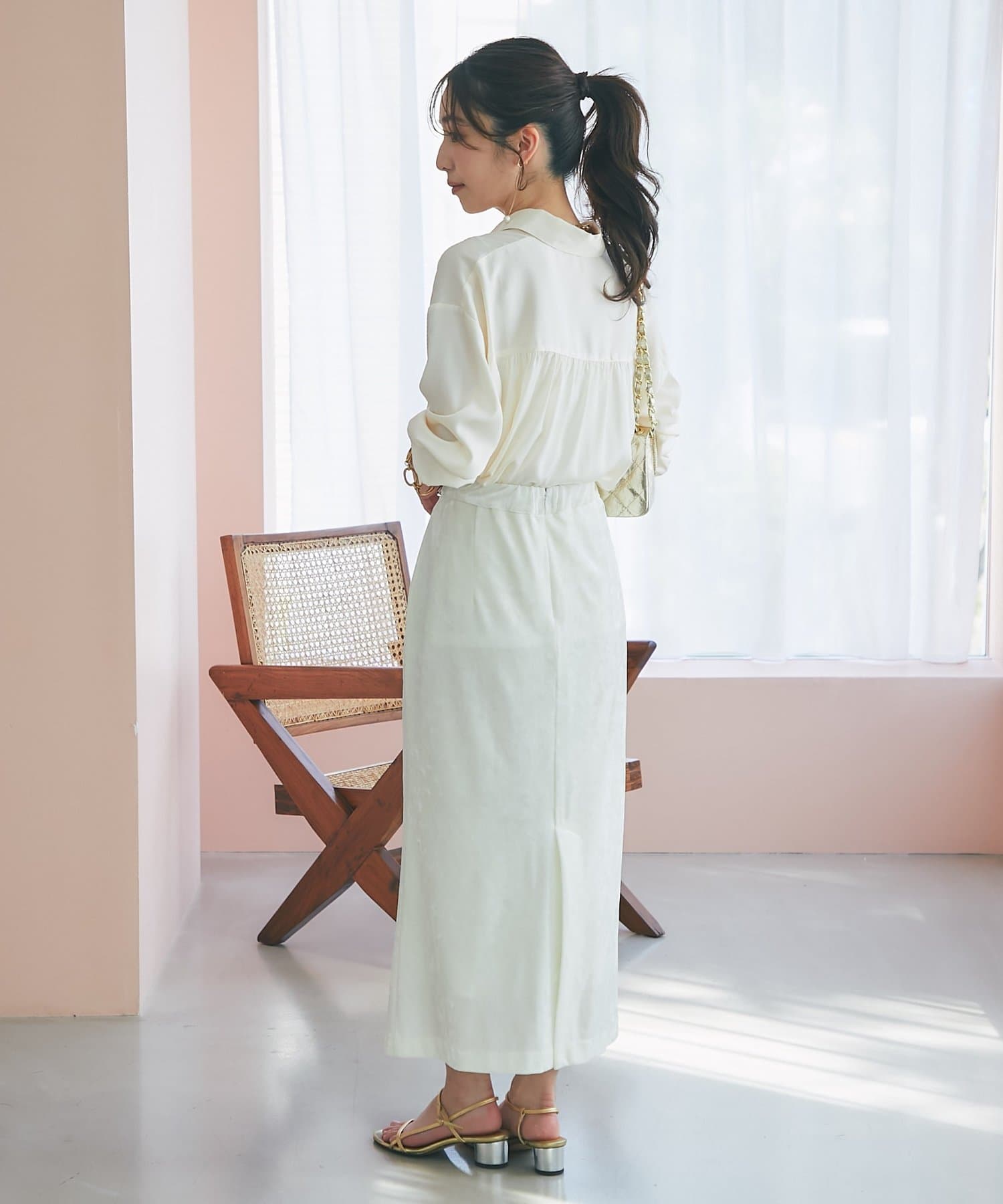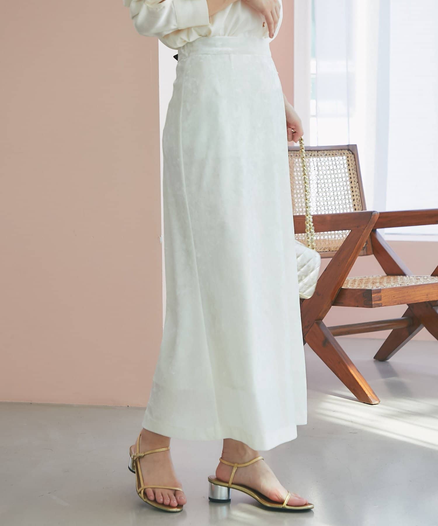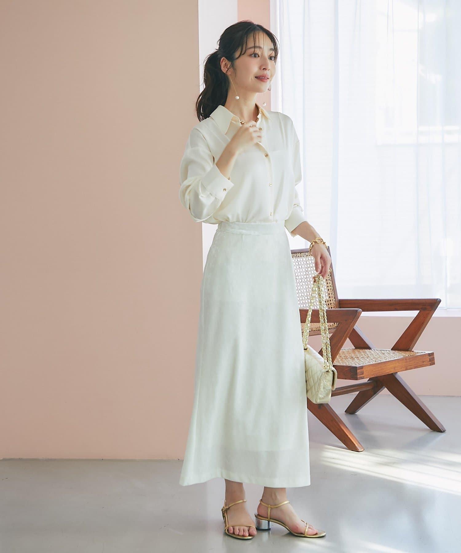 女性らしいシルエットと、上品なフェイクスエード素材が魅力のスカート。