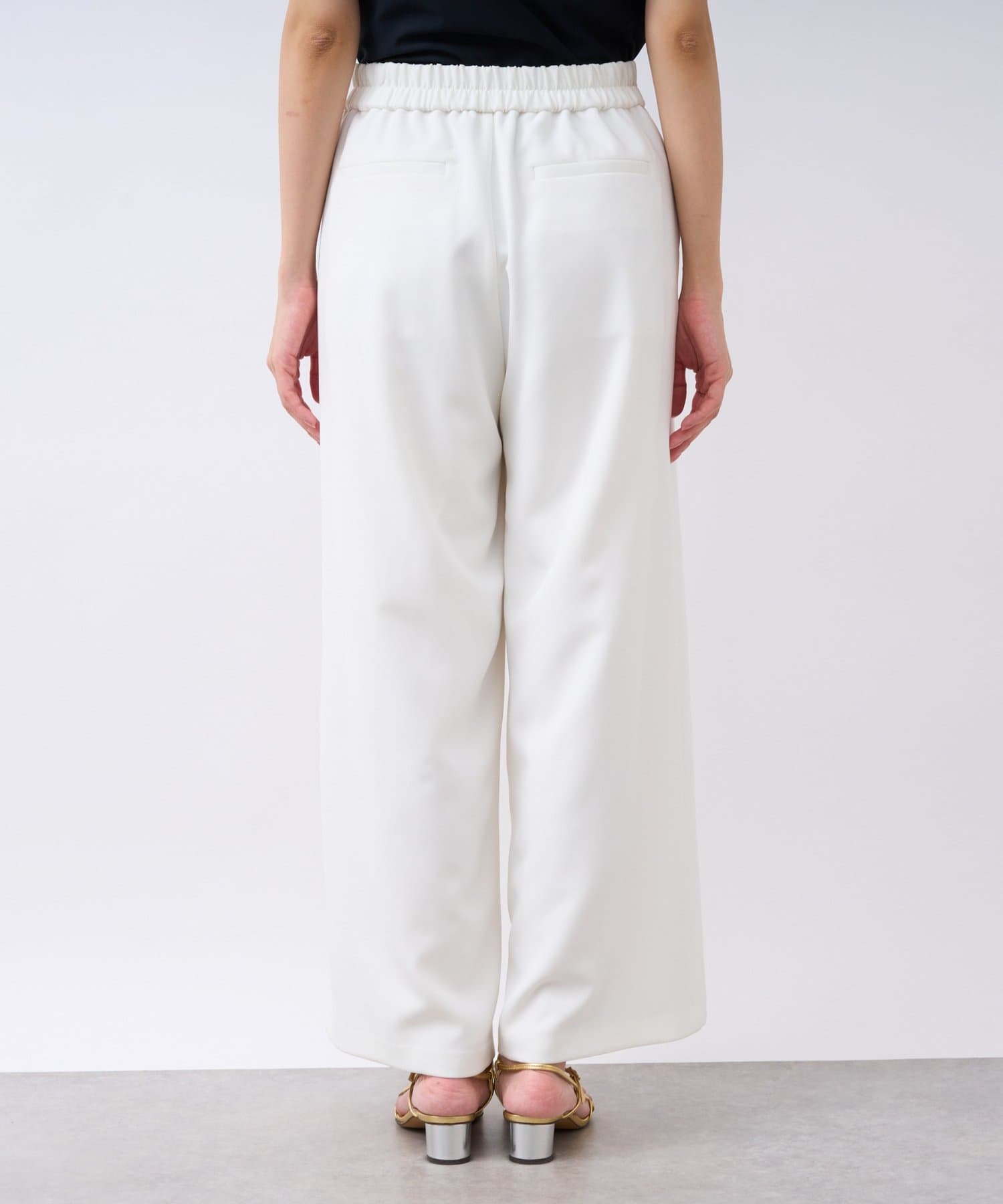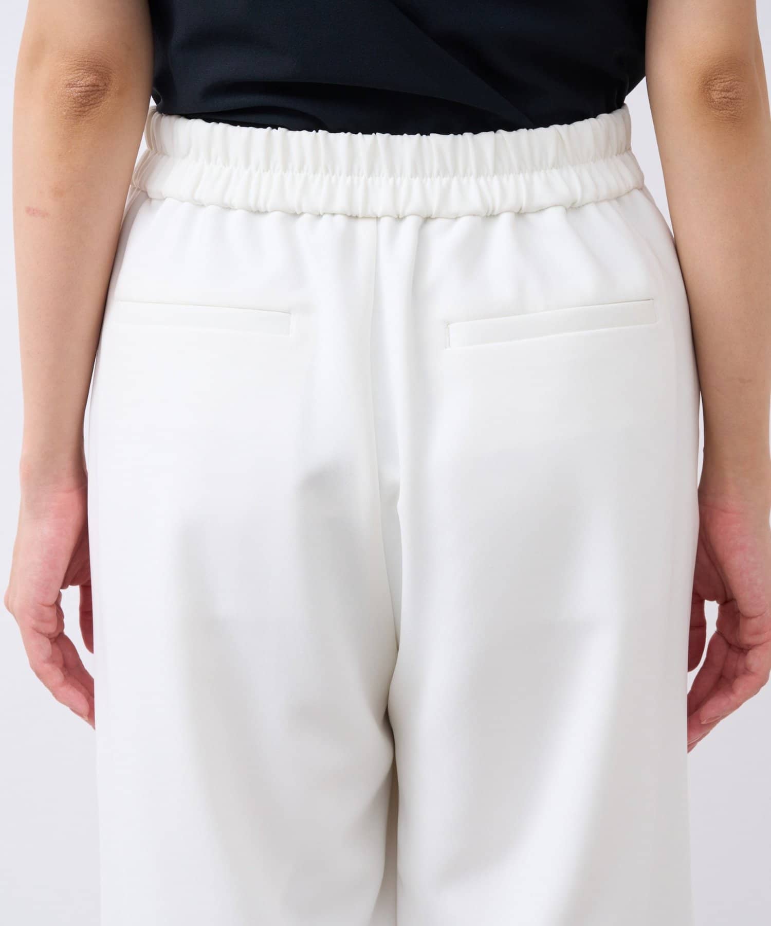 後ろウエストはゴム仕様でらくな履き心地に。