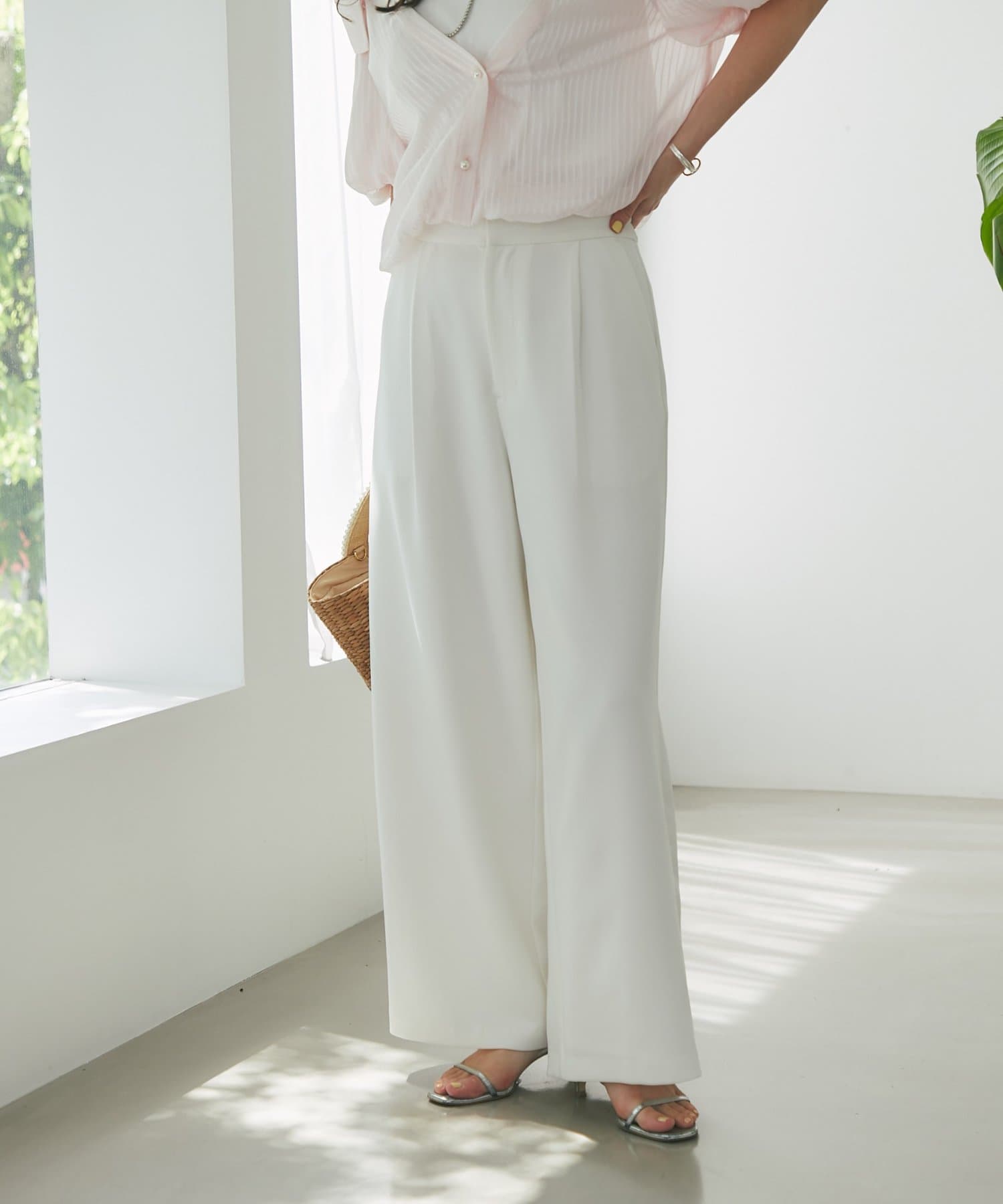 【美シルエット】ダブルクロス1タックワイドパンツ