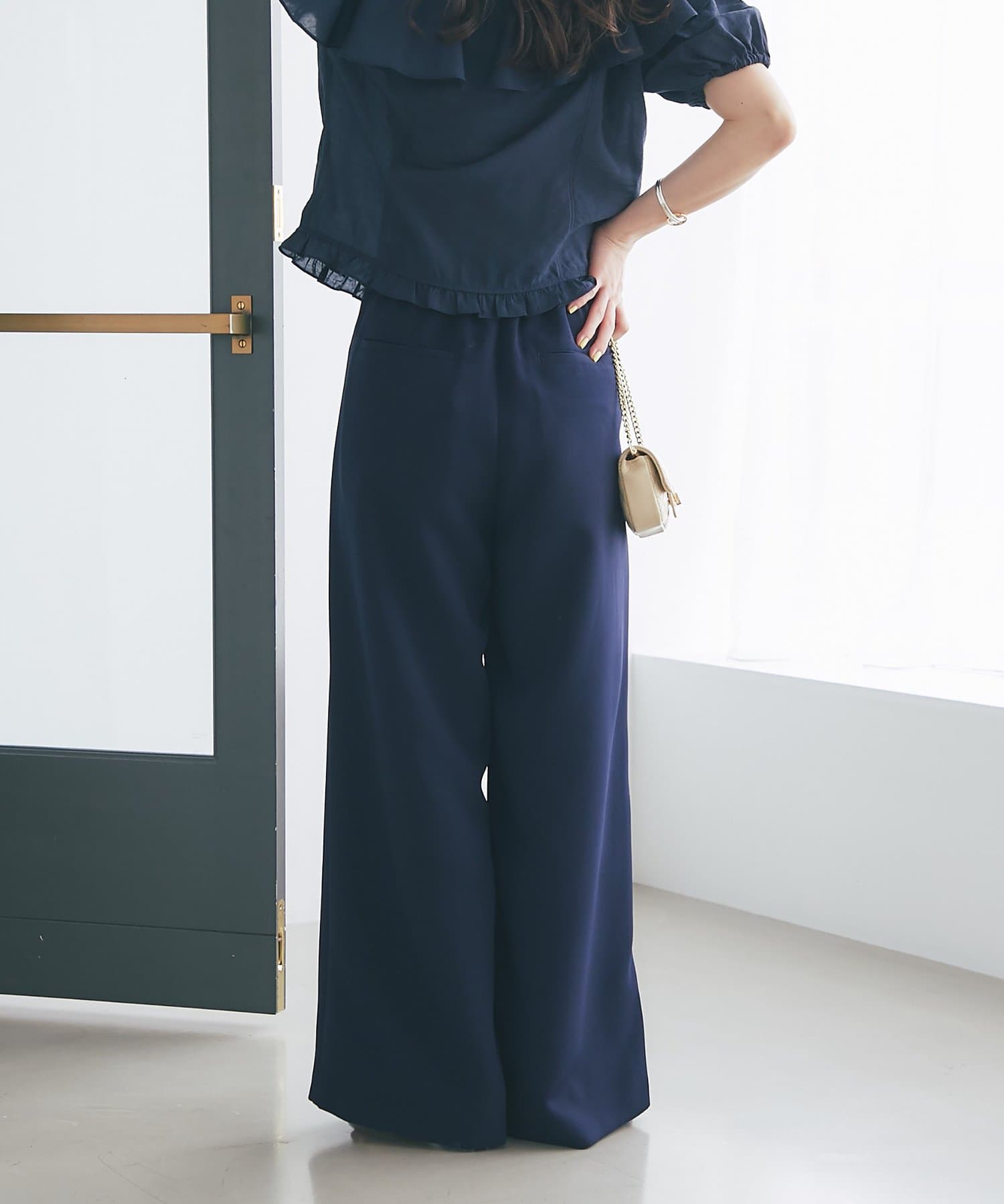 洗練された印象を与える、美しいシルエットのワイドパンツです。