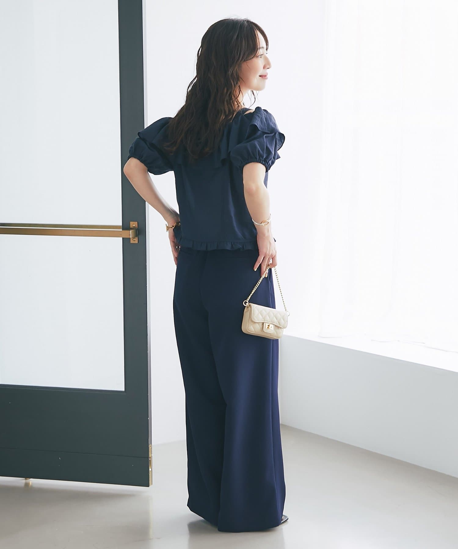 ハイウエストで足長効果もありつつ、