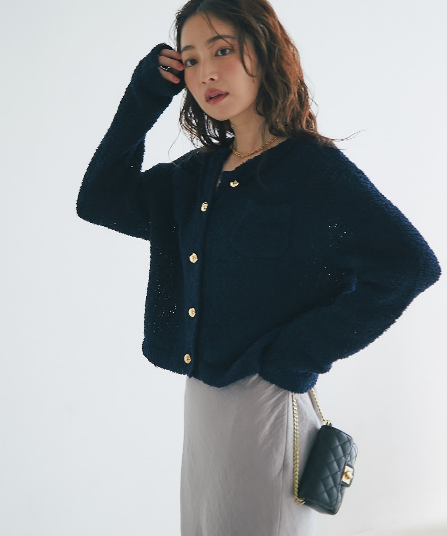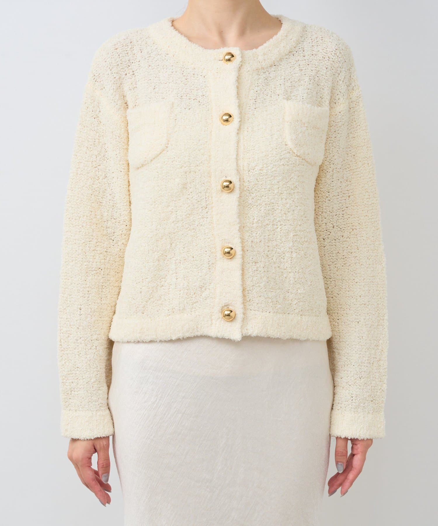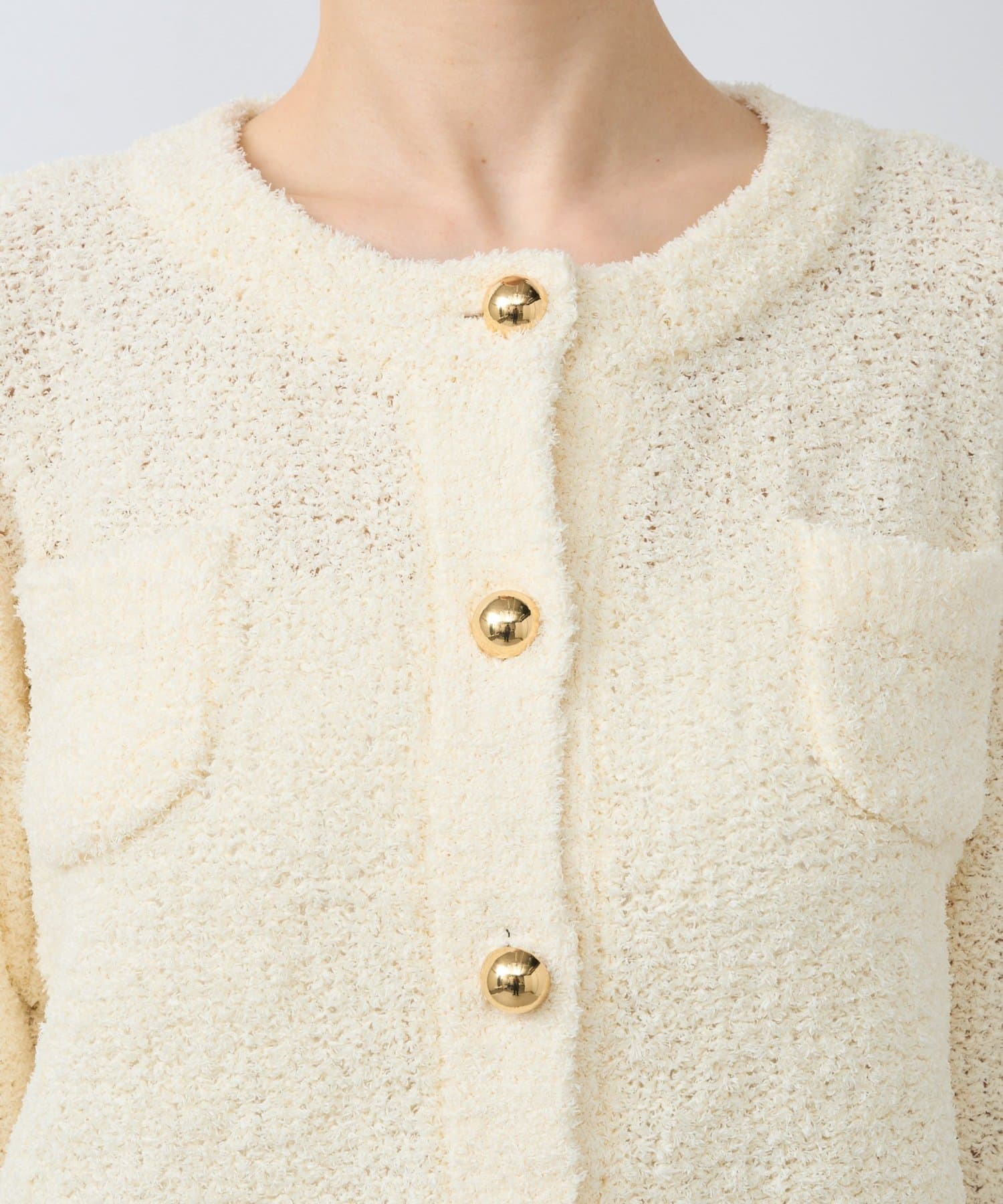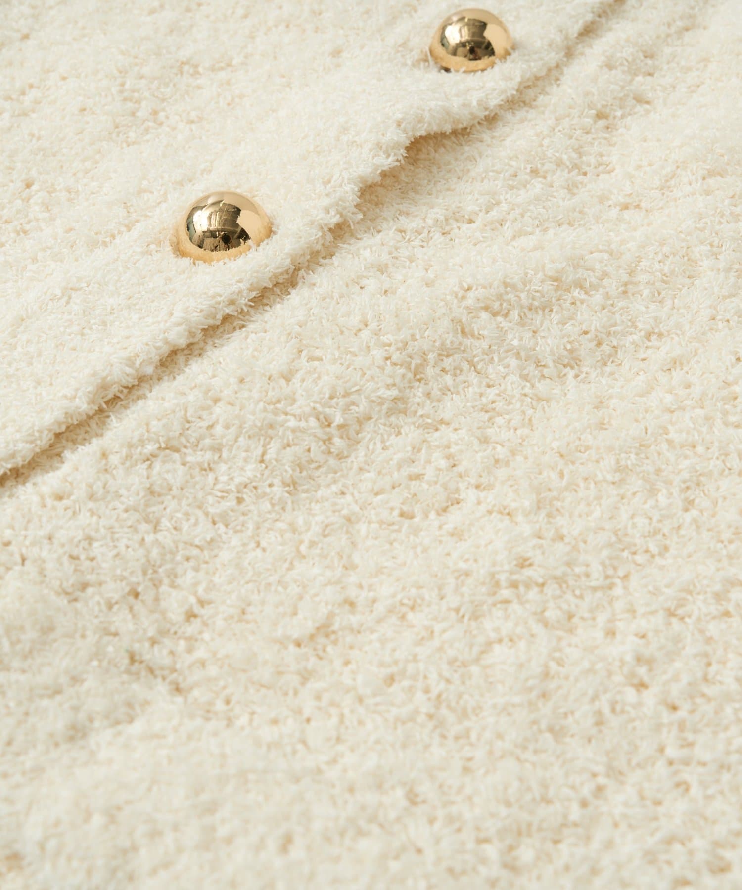 ふんわりとした素材感とコロコロとしたゴールドボタンの輝きが、