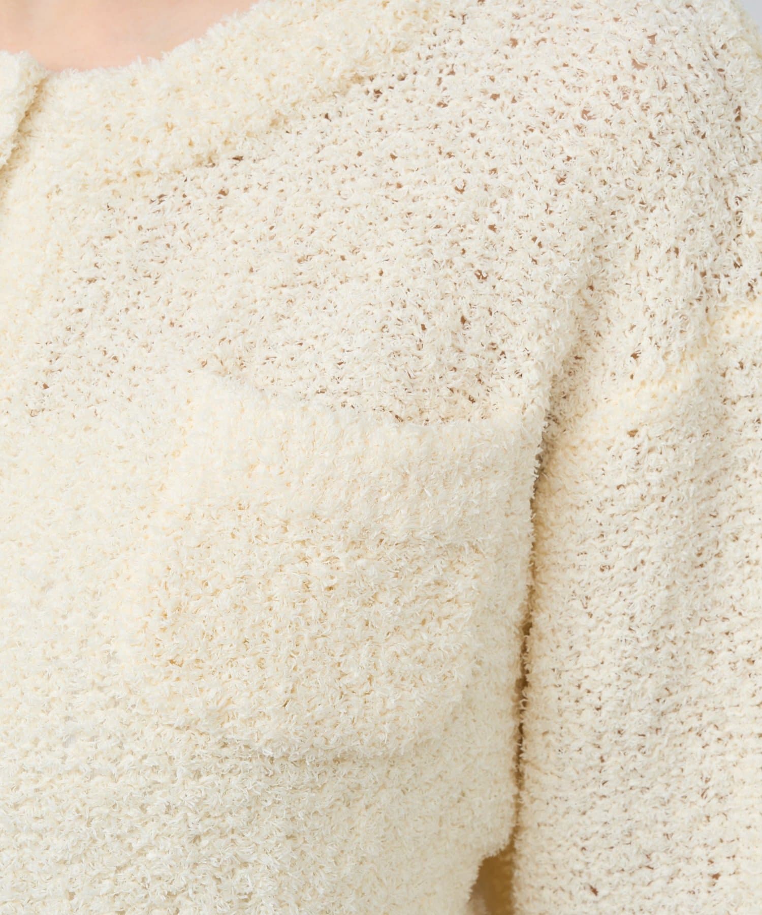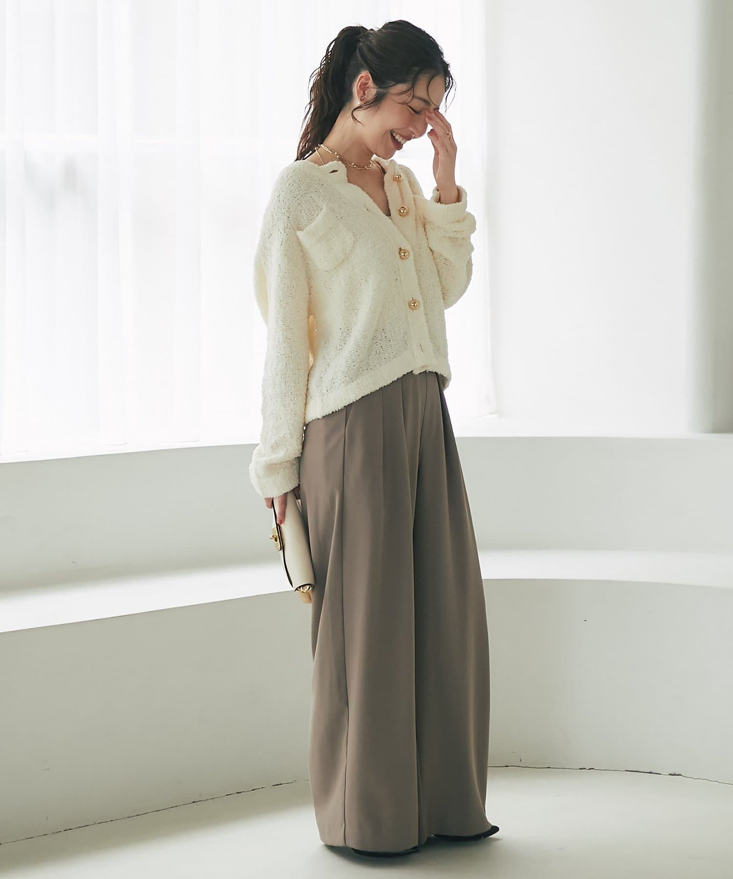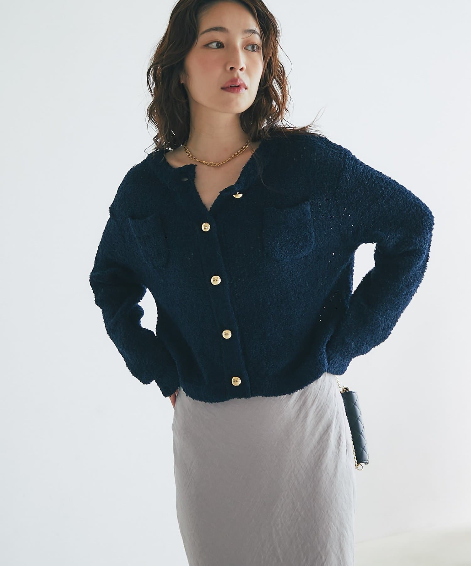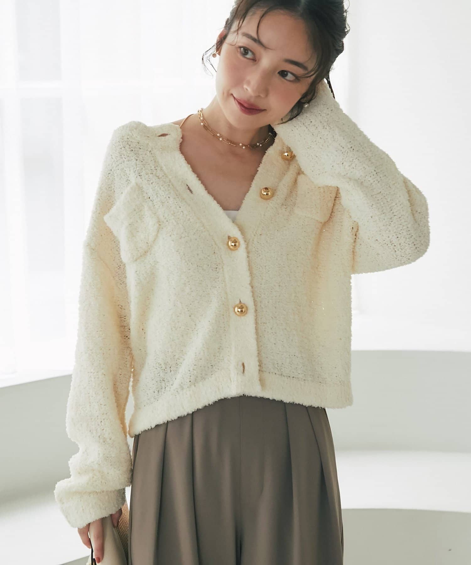 ふんわりとした素材感とコロコロとしたゴールドボタンの輝きが、