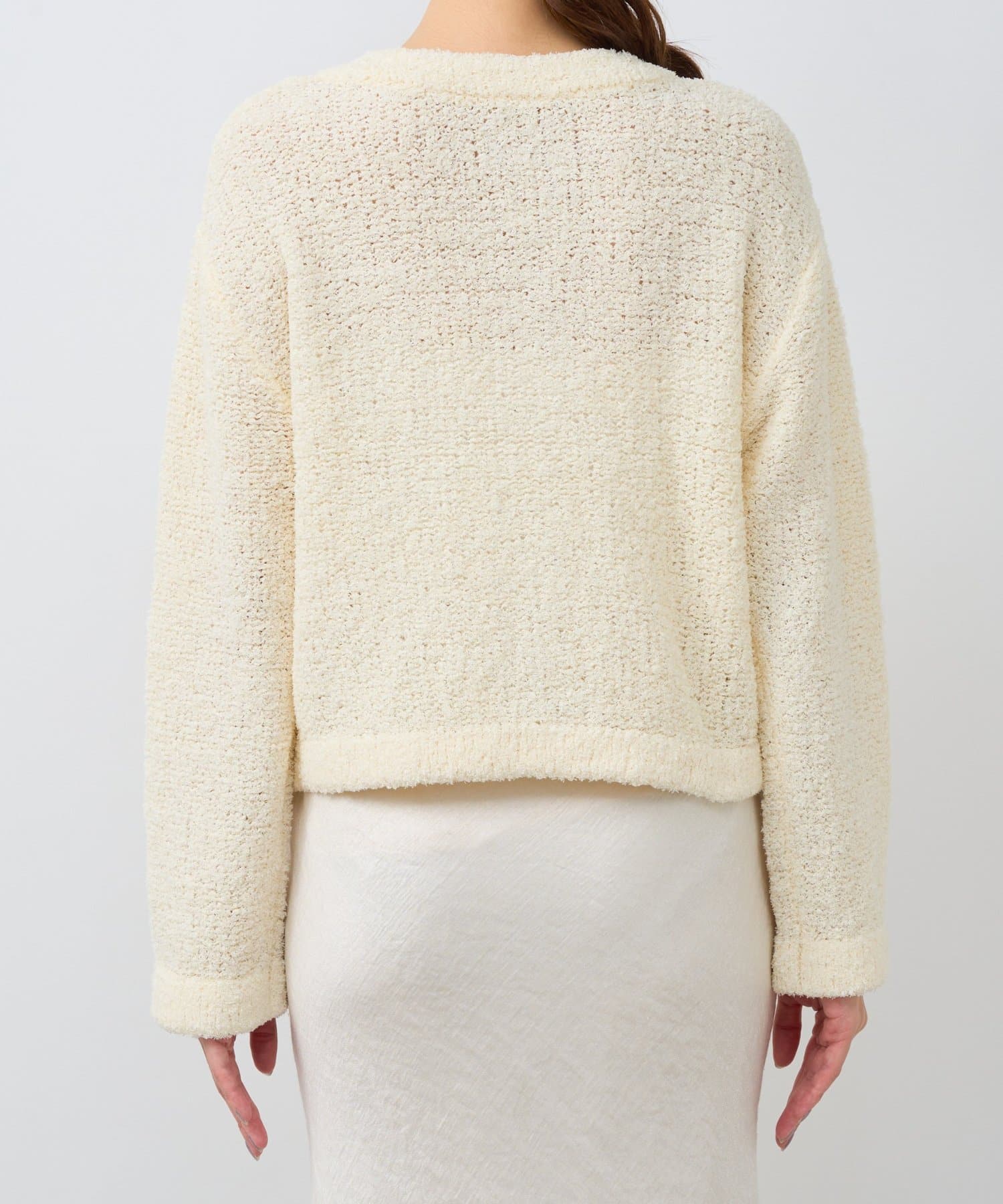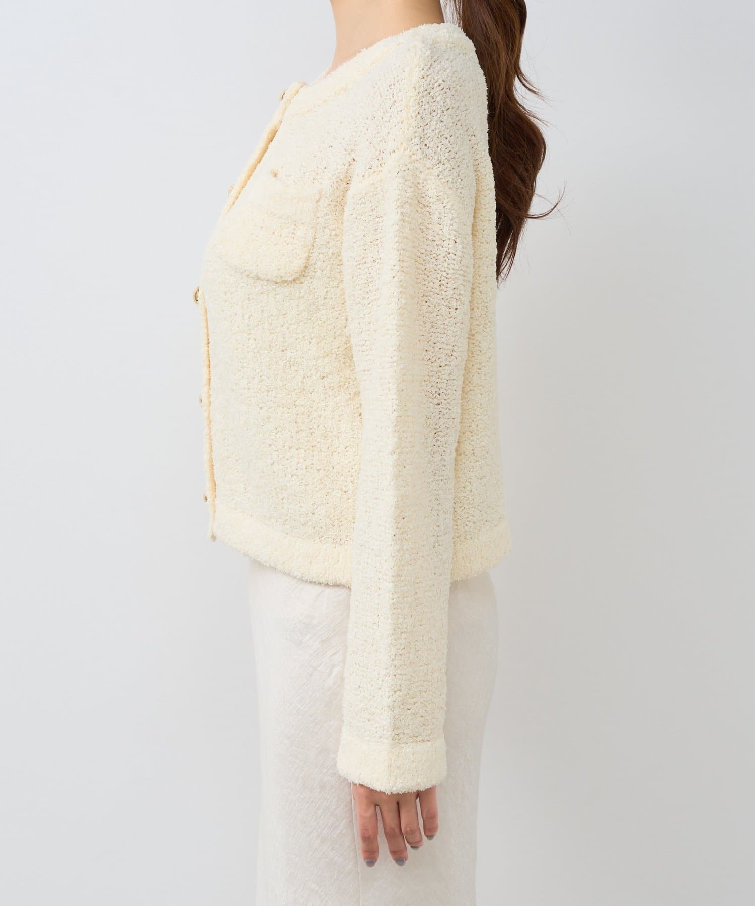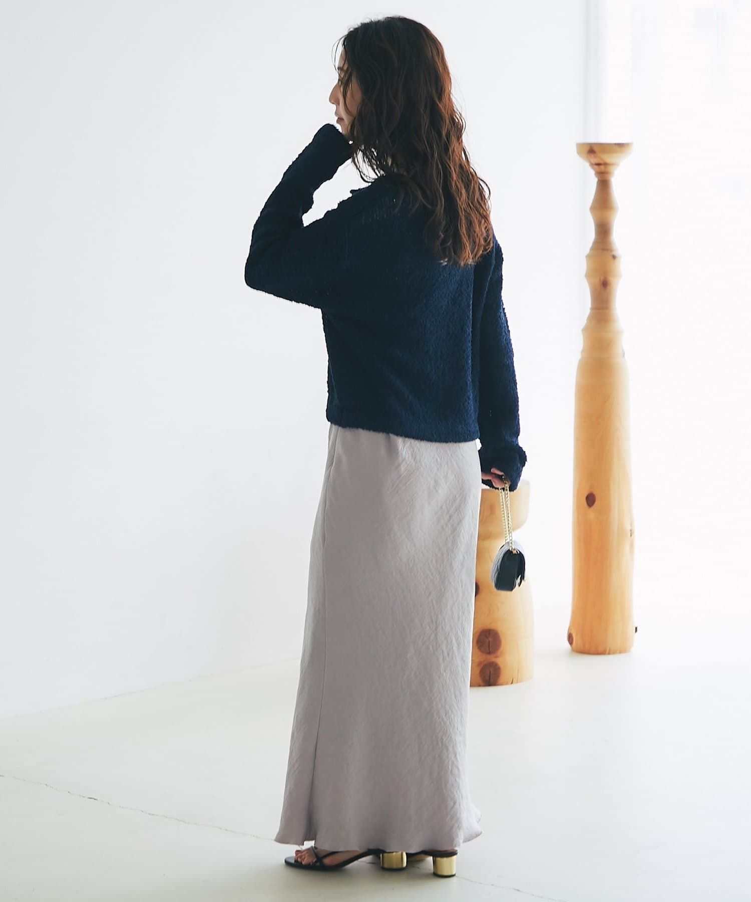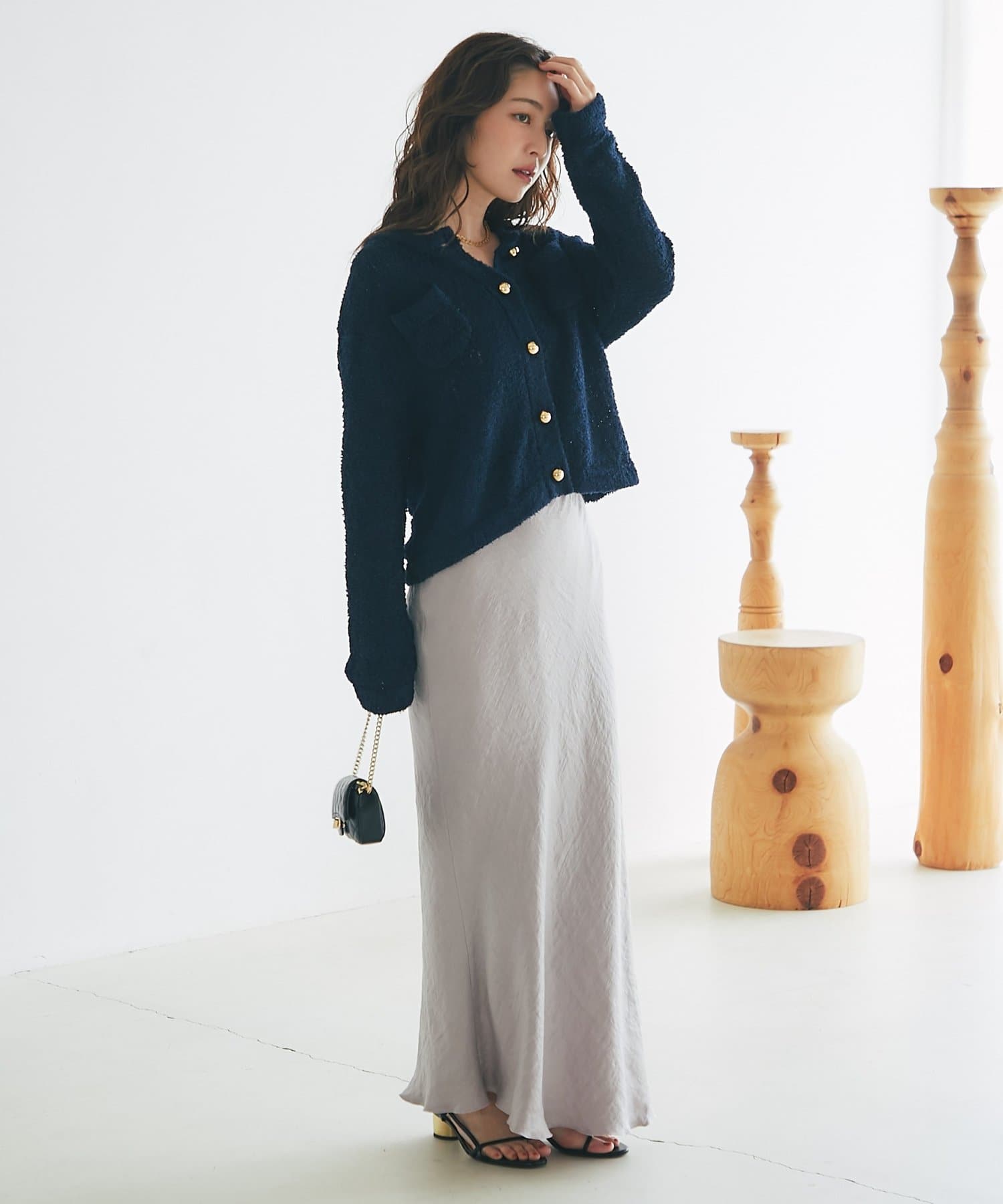 ワンピースやブラウスに羽織れば、エレガントな印象に。