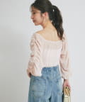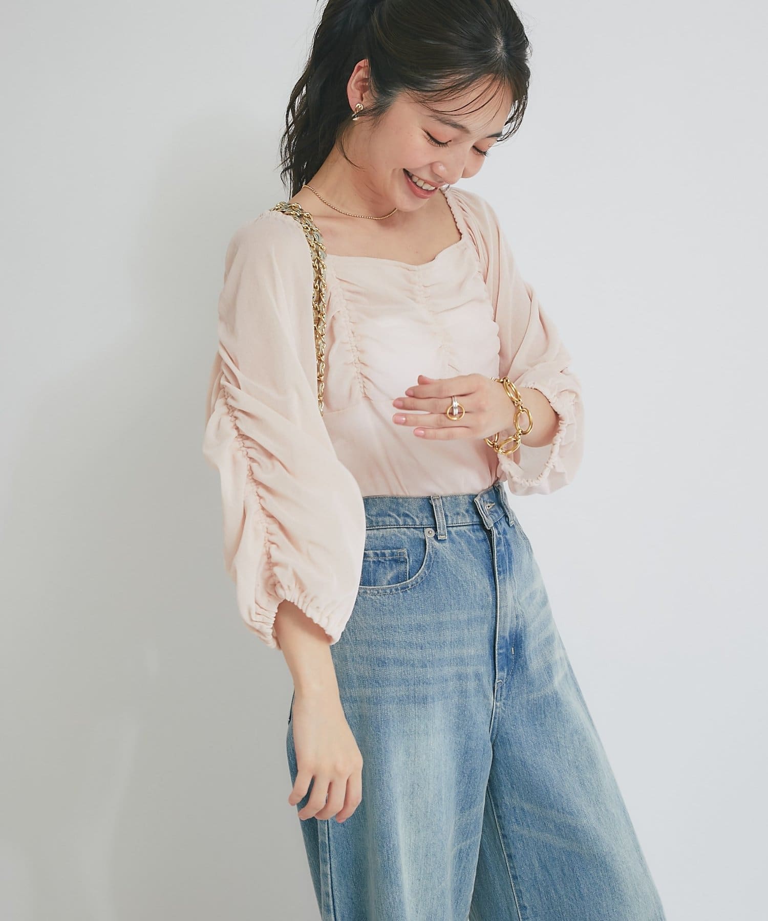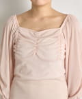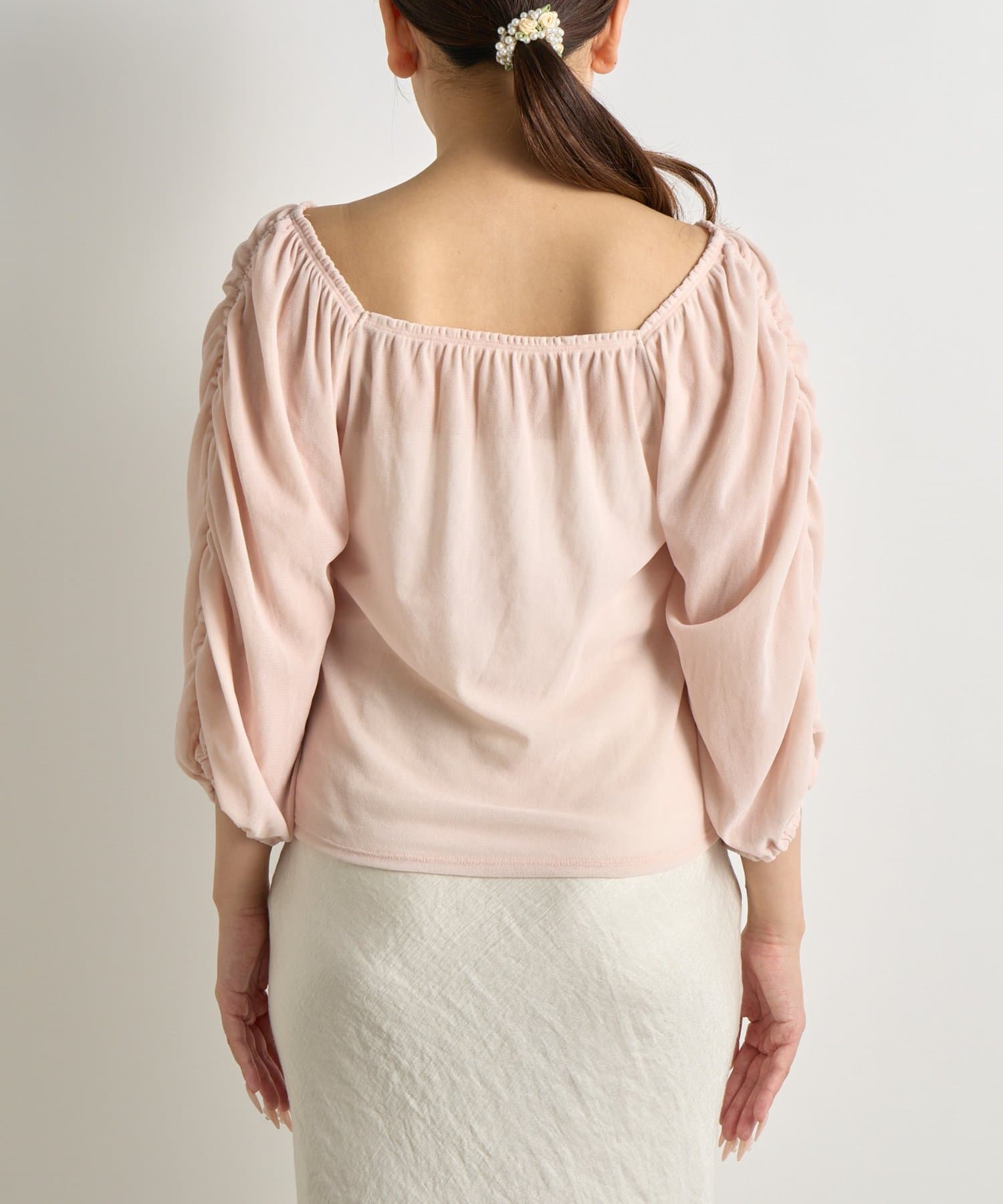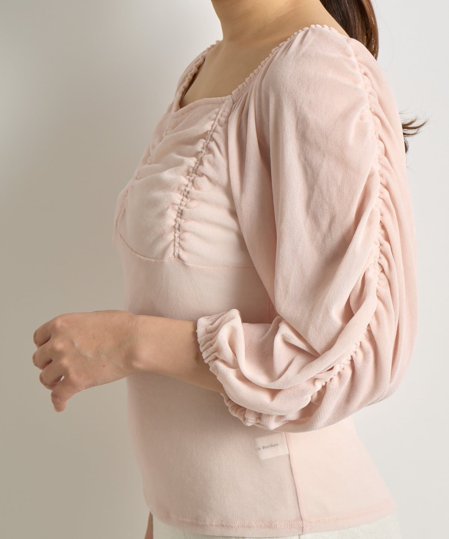 【KAZUMI監修カラーあり】フロッキーチュールギャザースリーブカットソー