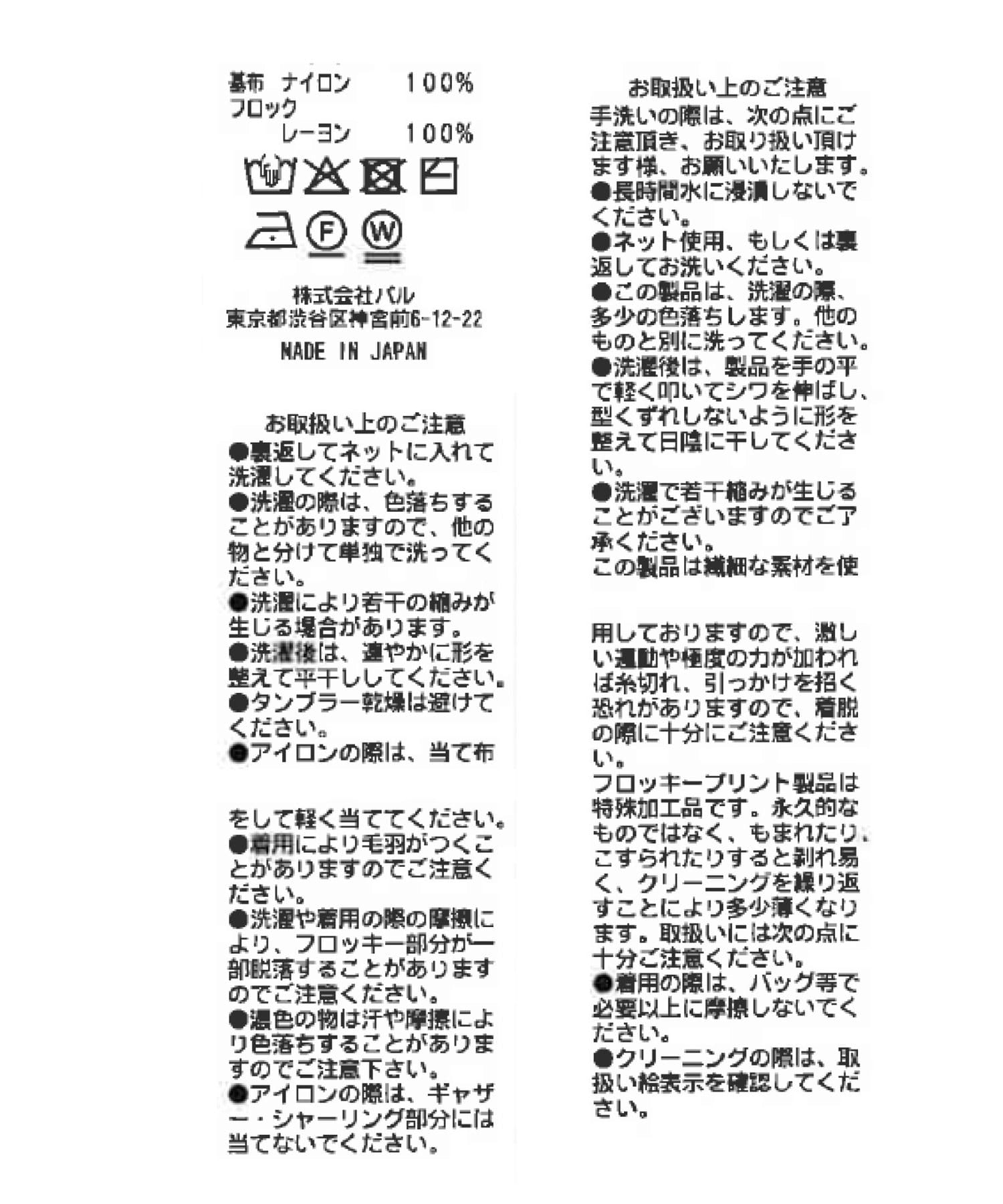 フロック レーヨン : 100%原産国 日本 サイズ F カテゴリ トップス > Tシャツ/カットソー タイプ レディース ギフト ラッピング 可 取り扱い 本体:手洗い可能 アイテムサイズ