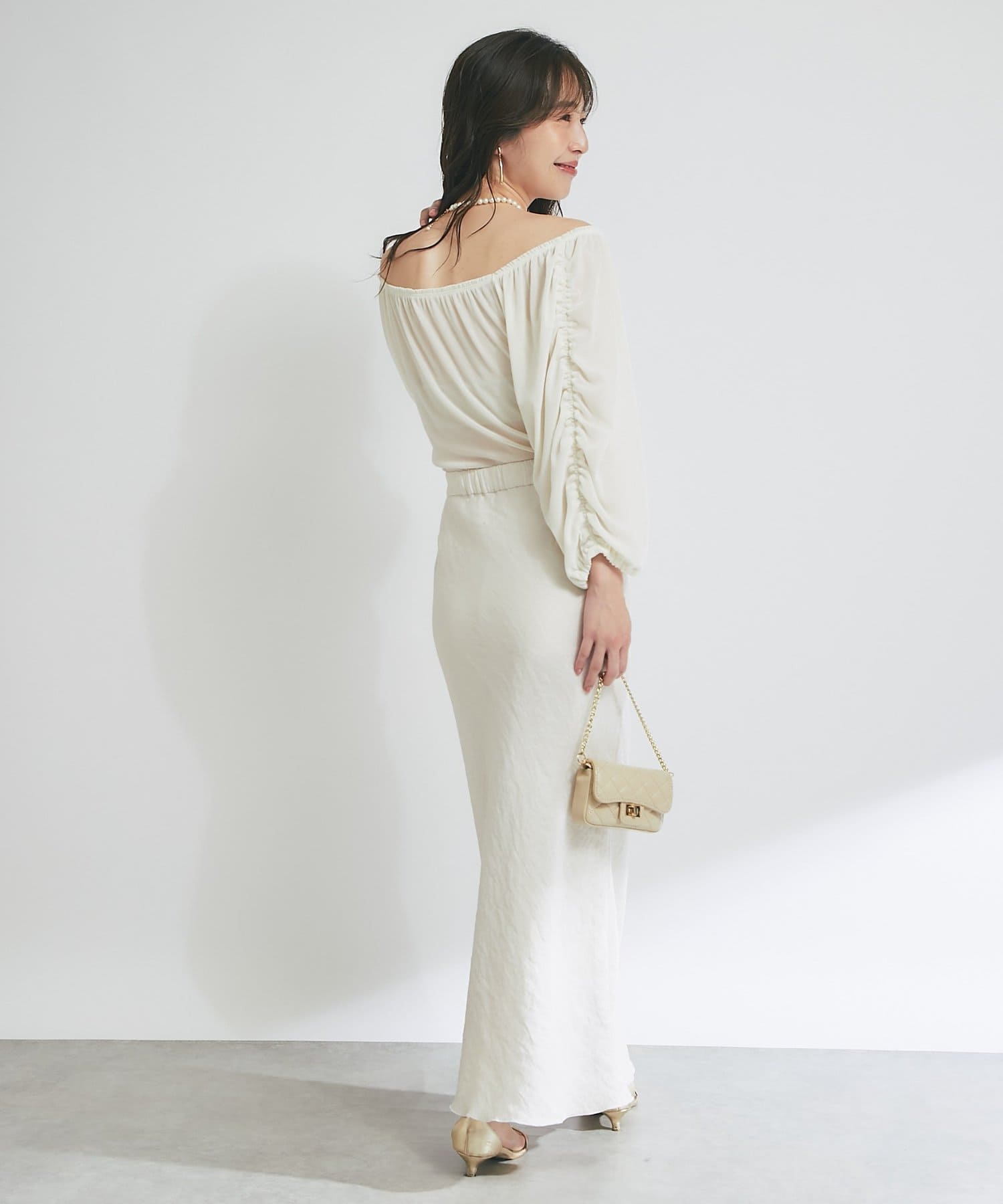 ふんわりとした袖が二の腕をカバーし、抜け感のある大人の女性らしさをプラスします。