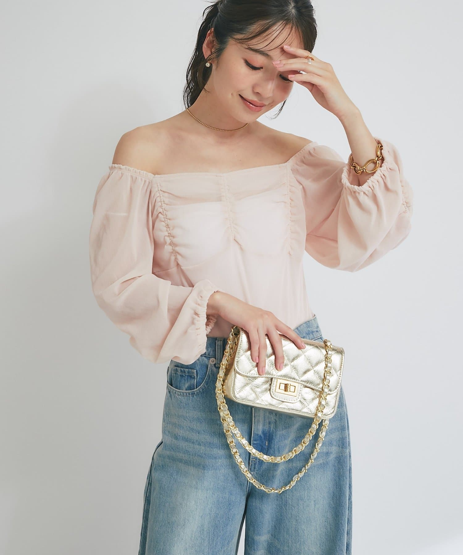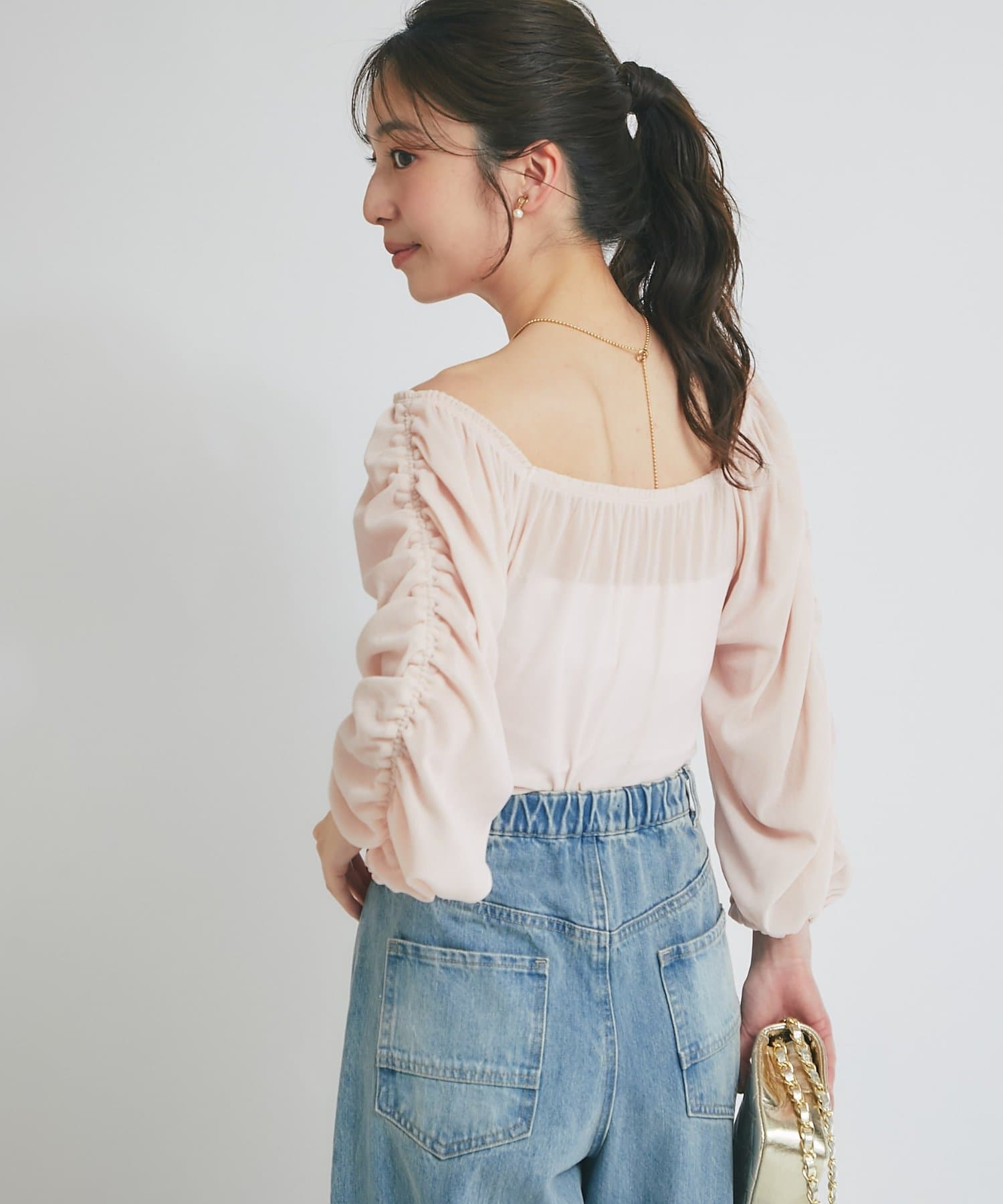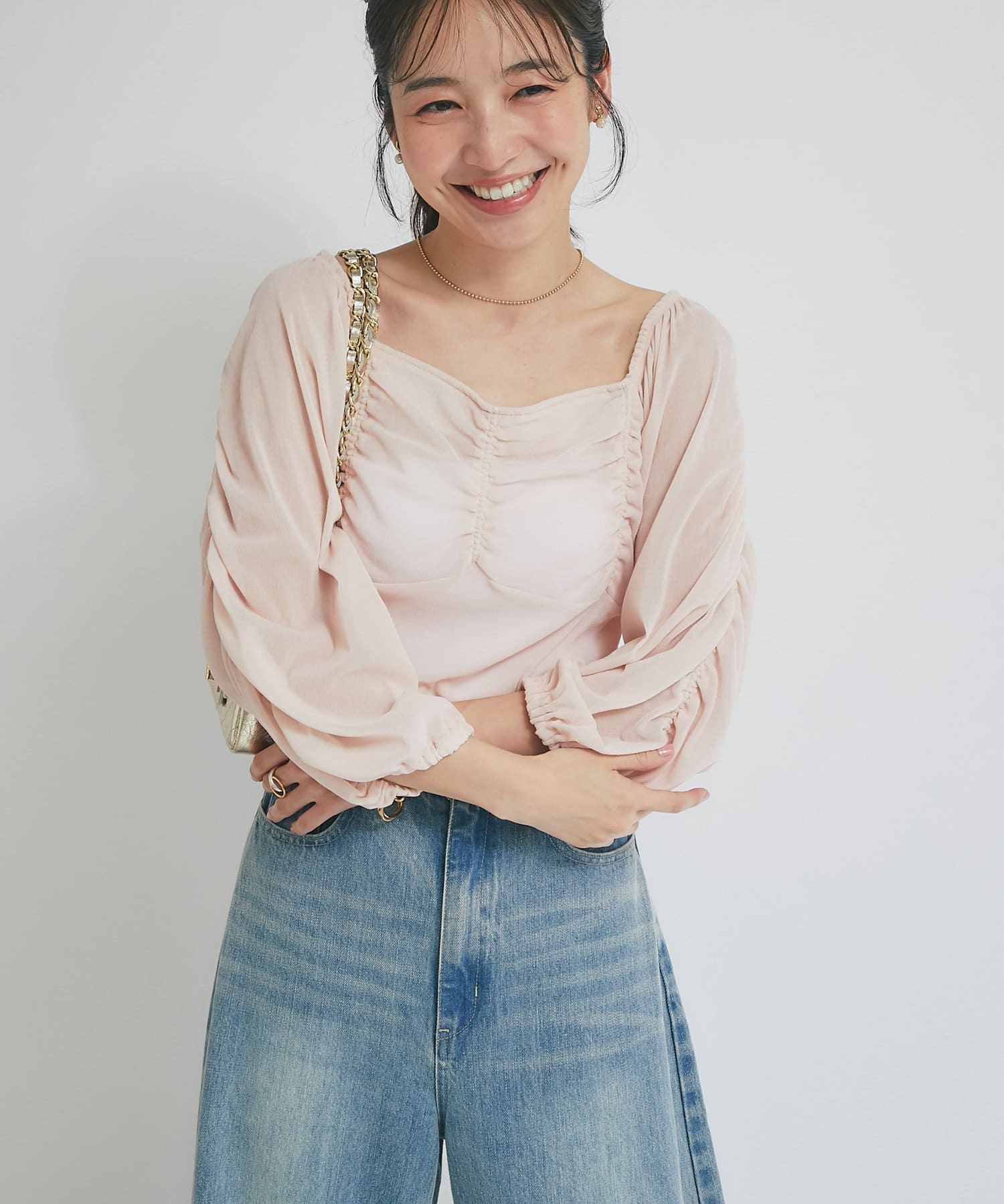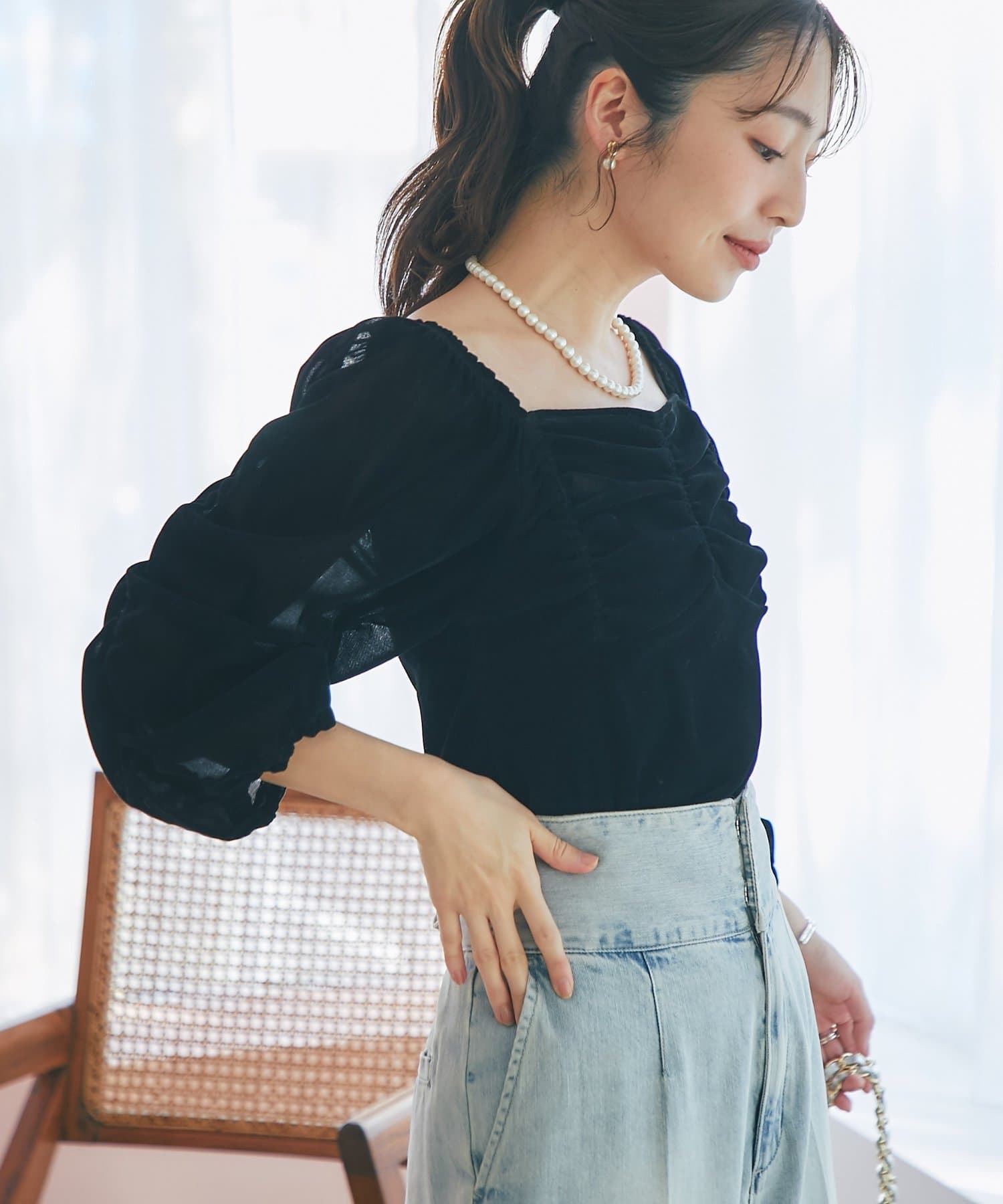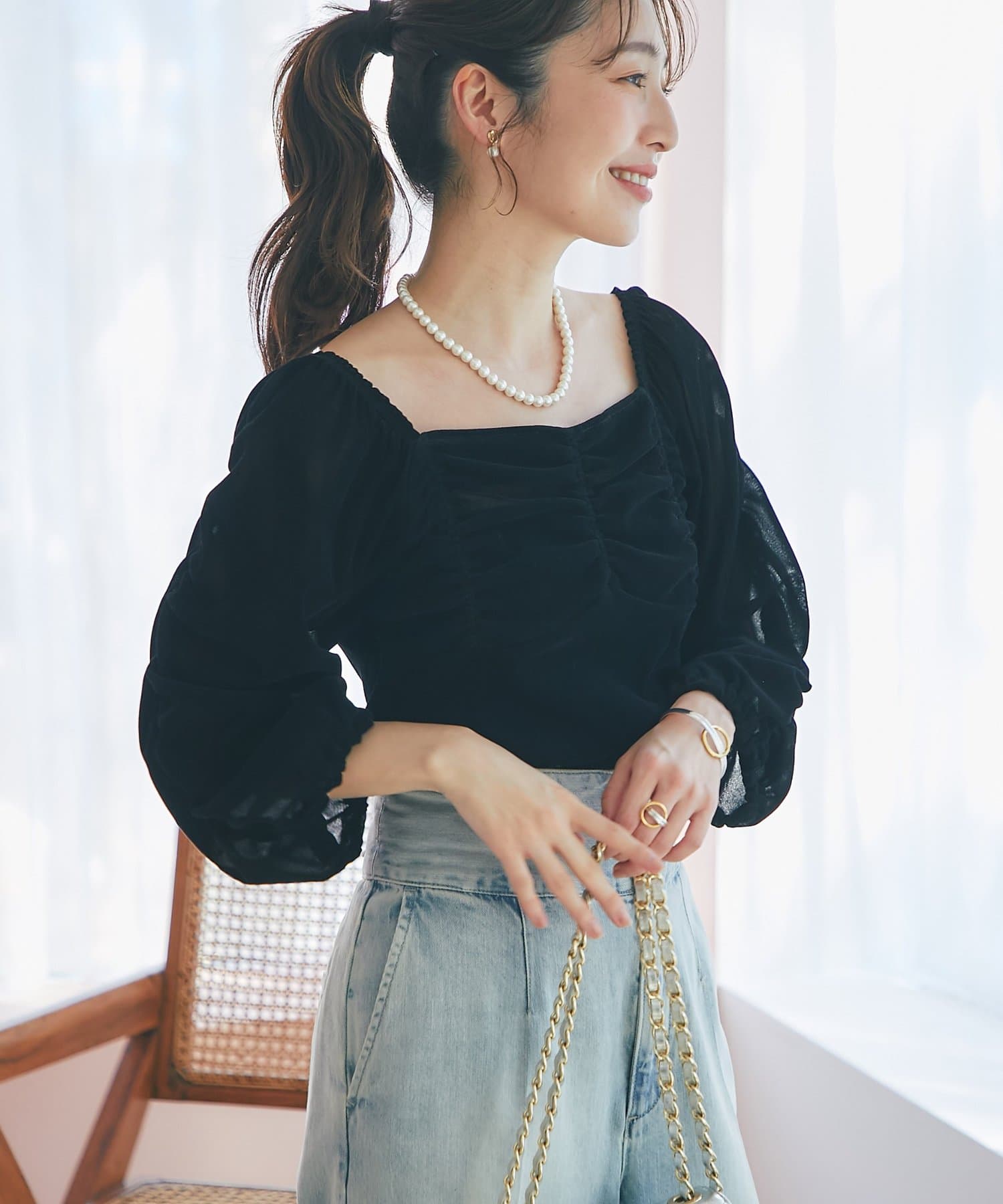 繊細なドレープと上品な透け感が魅力のチュールブラウス。