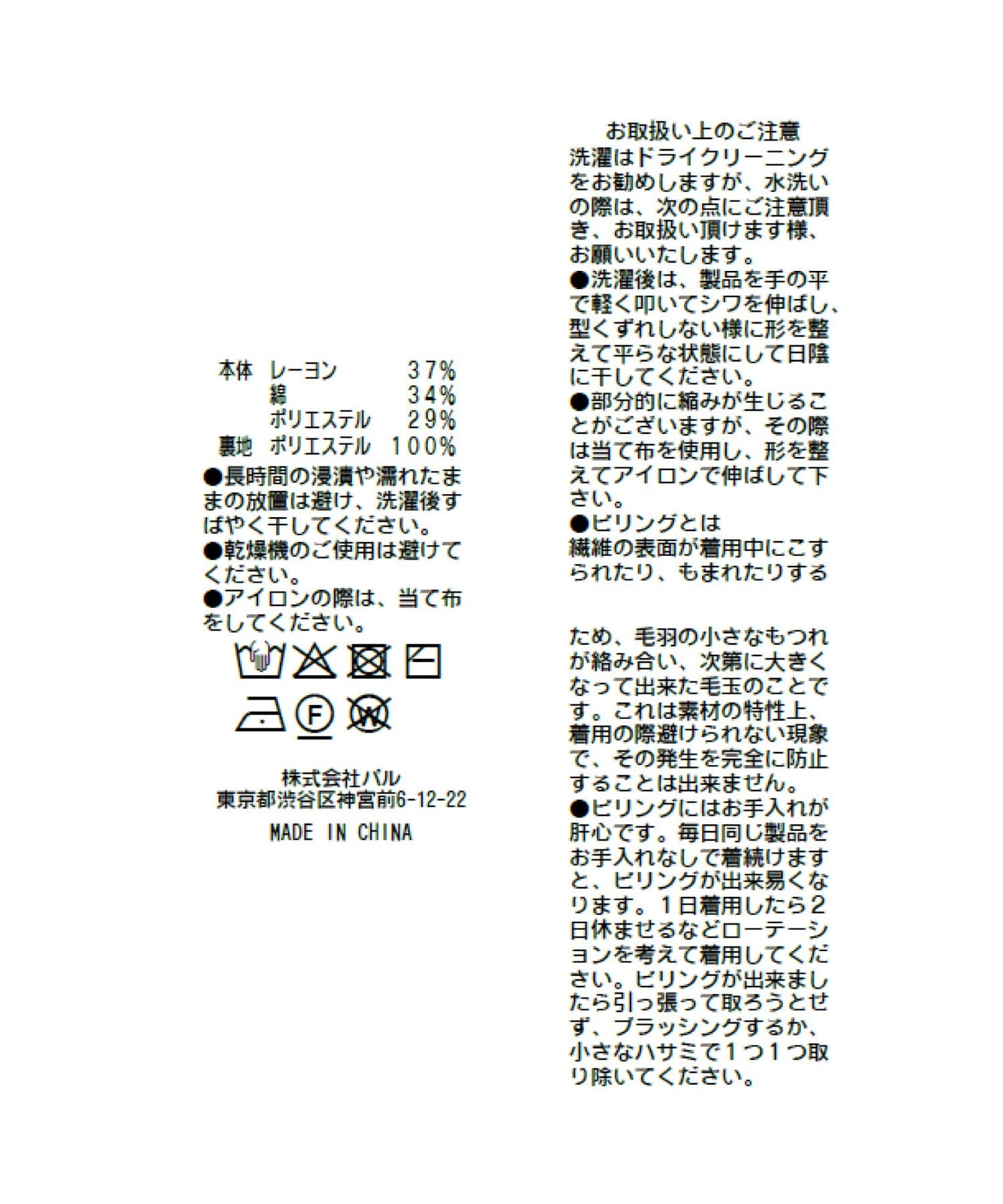 品番 LBZ1052201A0001 素材 本体 レーヨン 37%