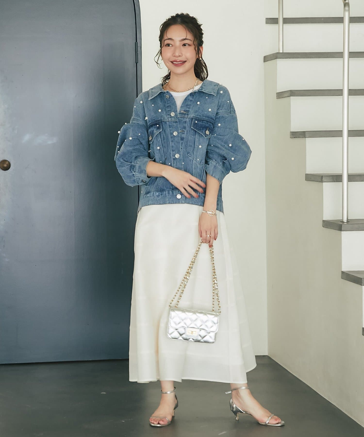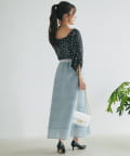 タイトなトップスと合わせて、スカートのふんわり感を引き立てる着こなしがおすすめ◎