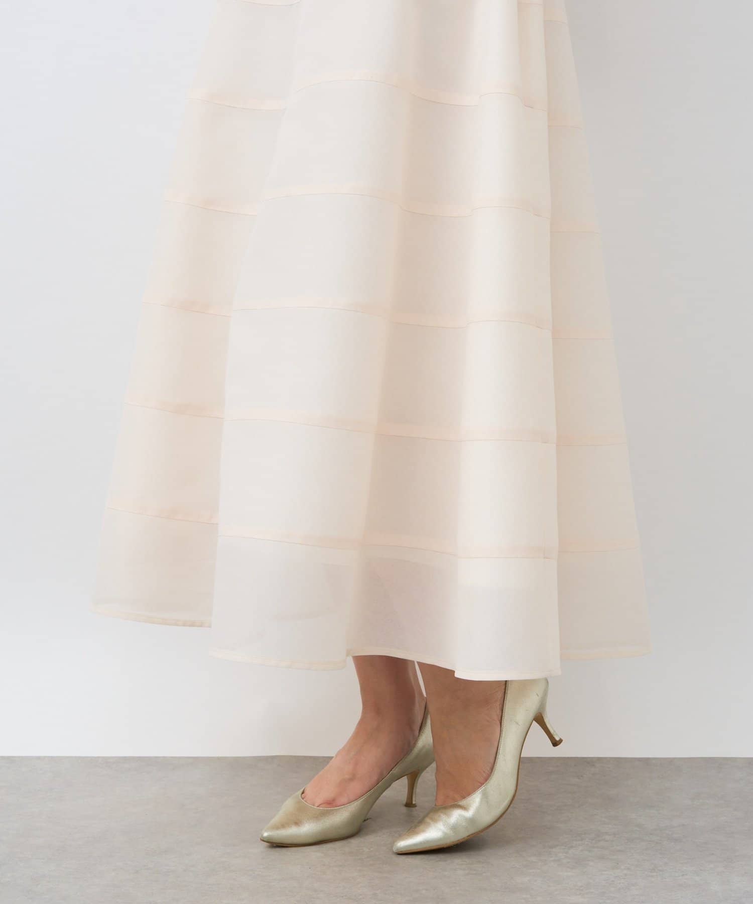 ティアードのような横切り替えの入ったデザインが立体感をプラスし、華やかに仕上げます。