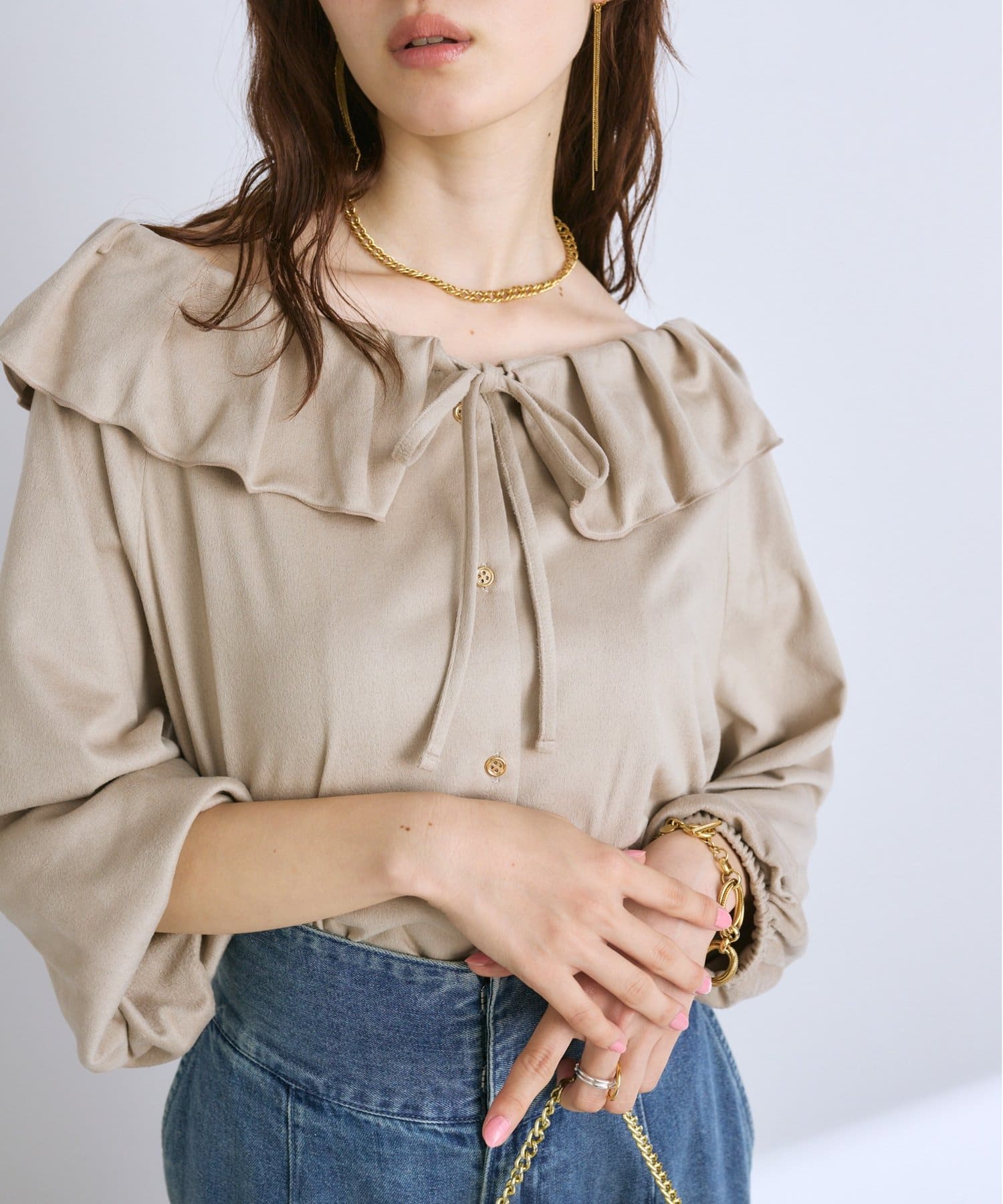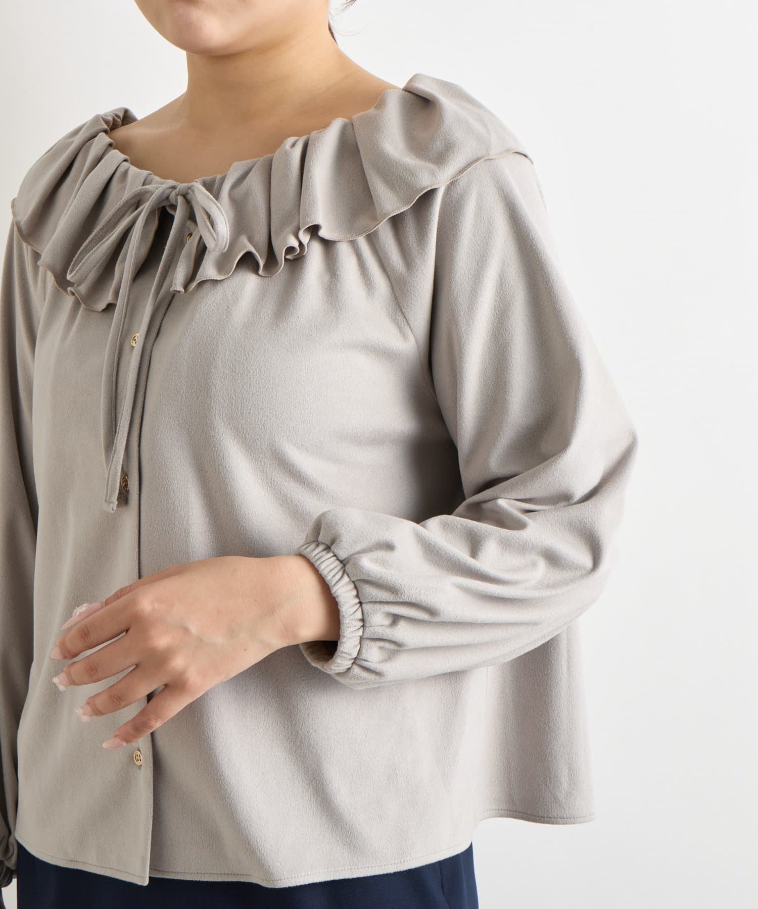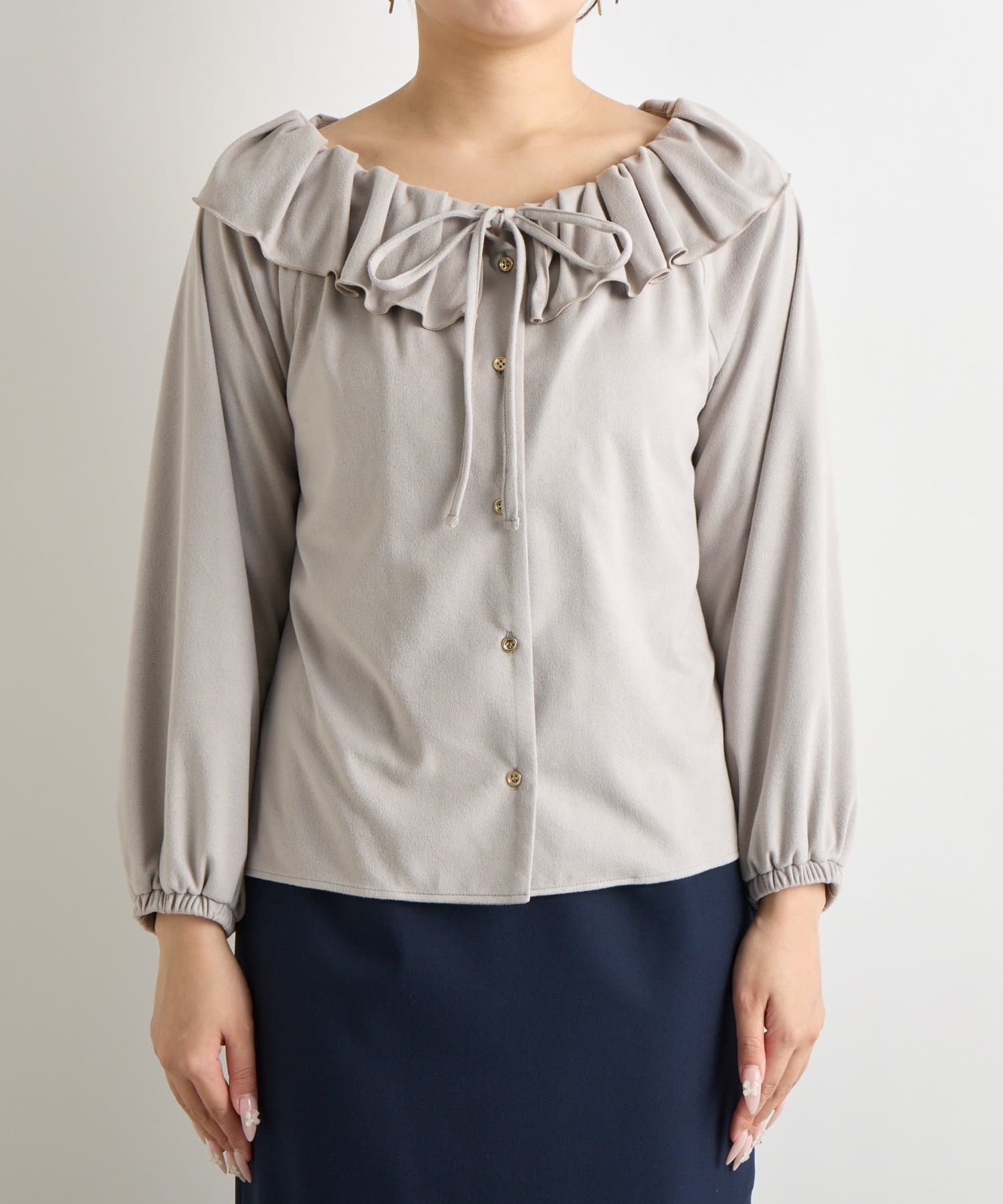 トレンド感のある2枚フリルのふんわり衿が大人可愛いブラウス。