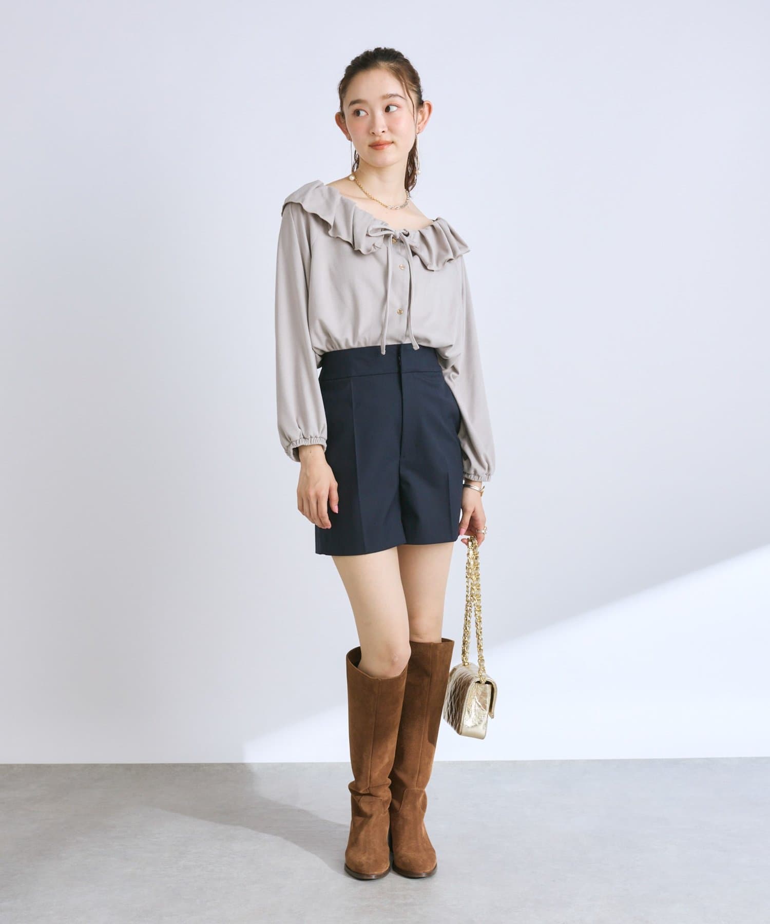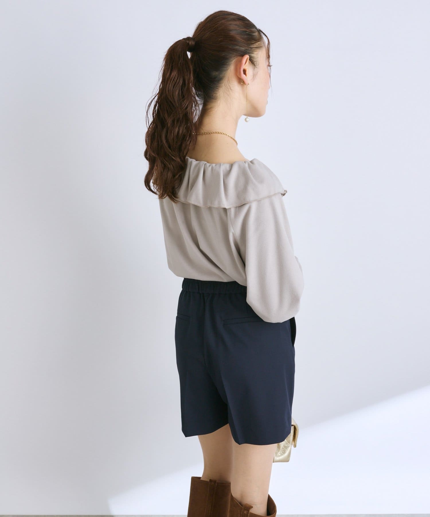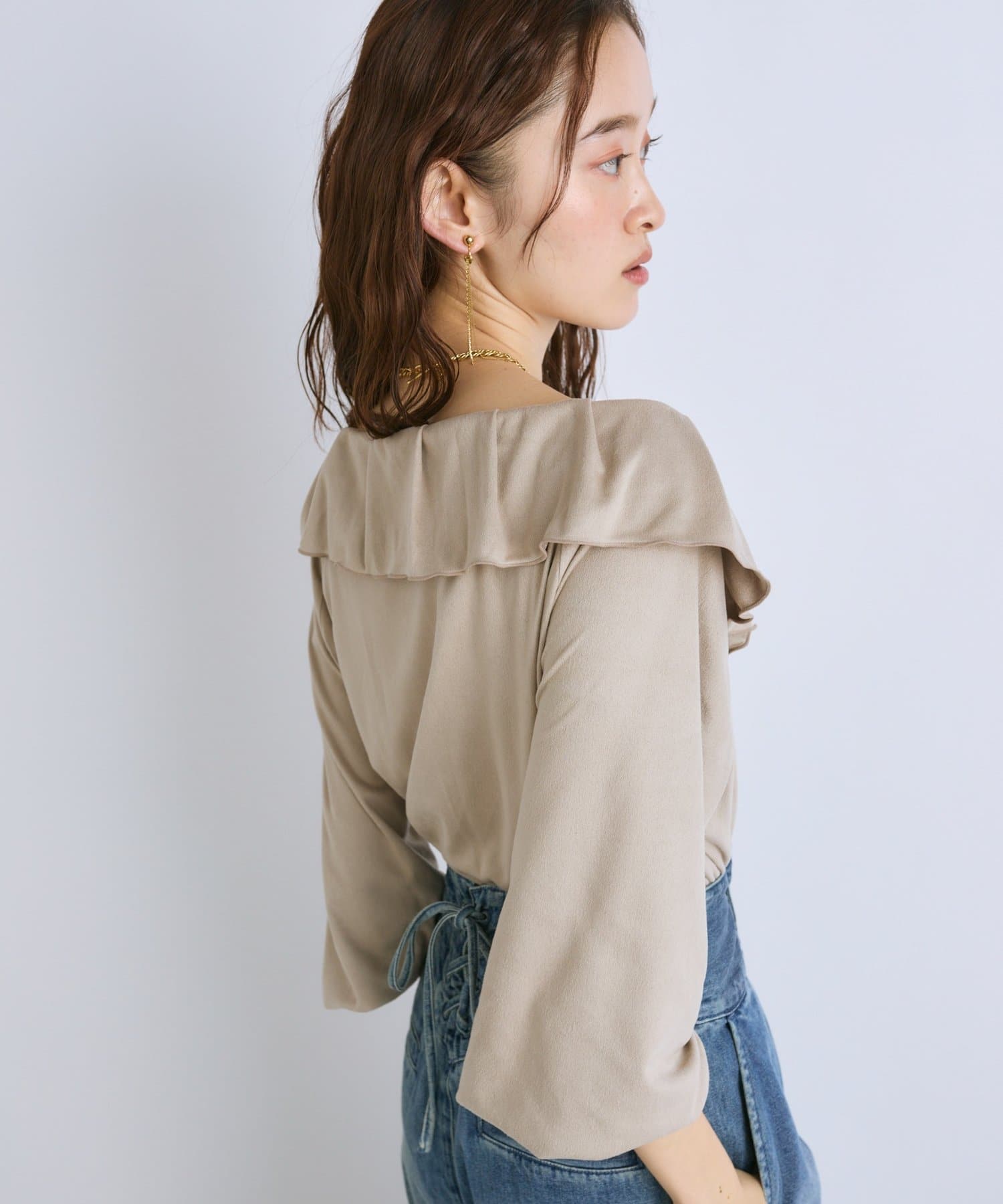 トレンド感のある2枚フリルのふんわり衿が大人可愛いブラウス。
