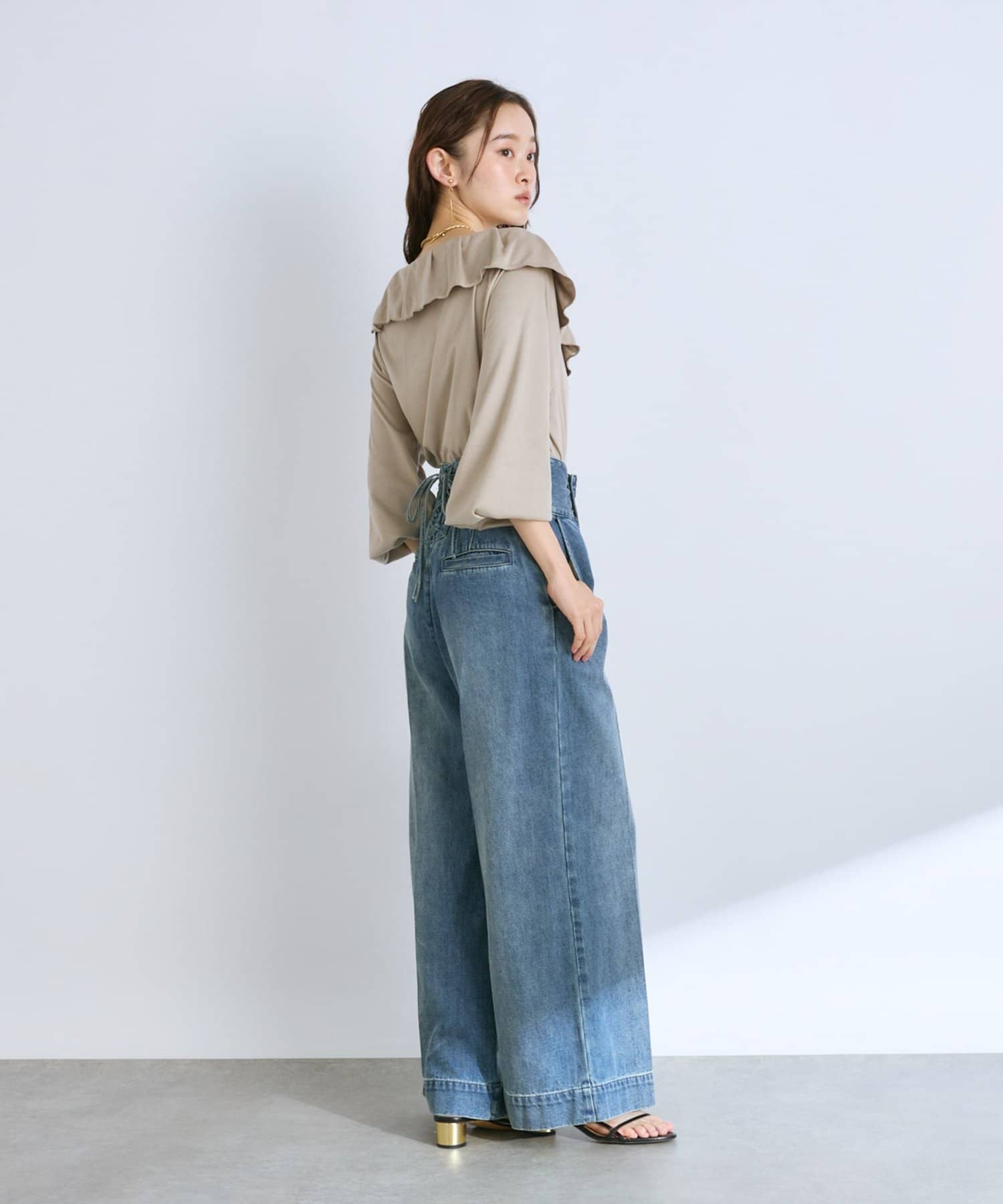 パンツを合わせて甘×辛コーデもオトナな雰囲気でおすすめです。