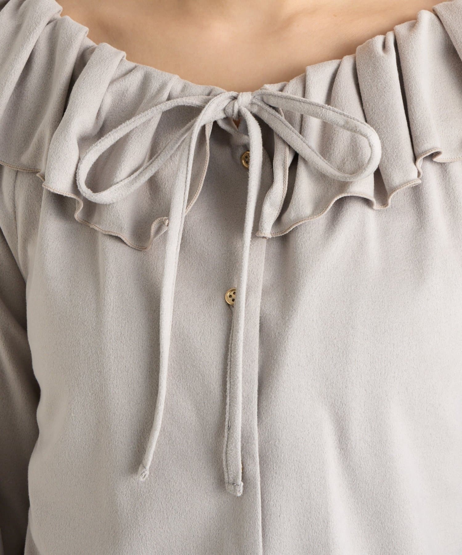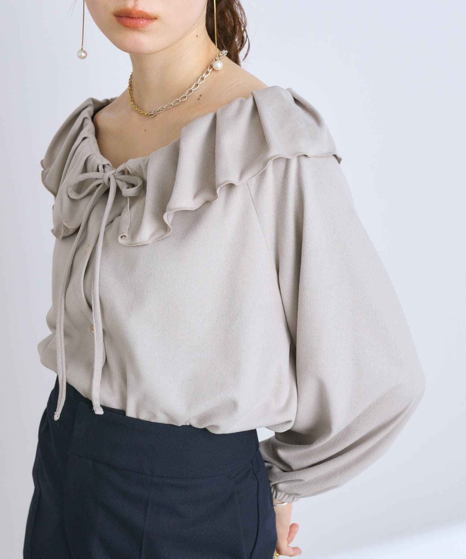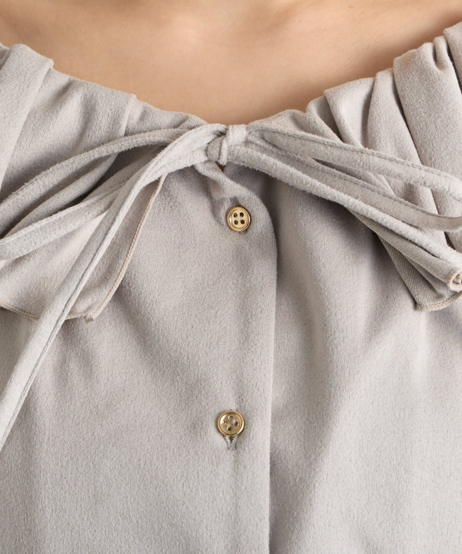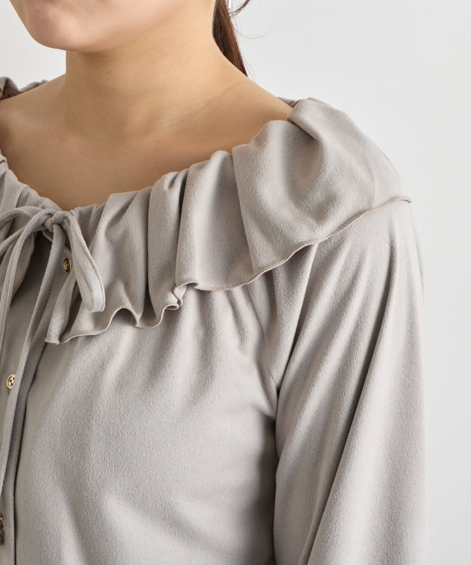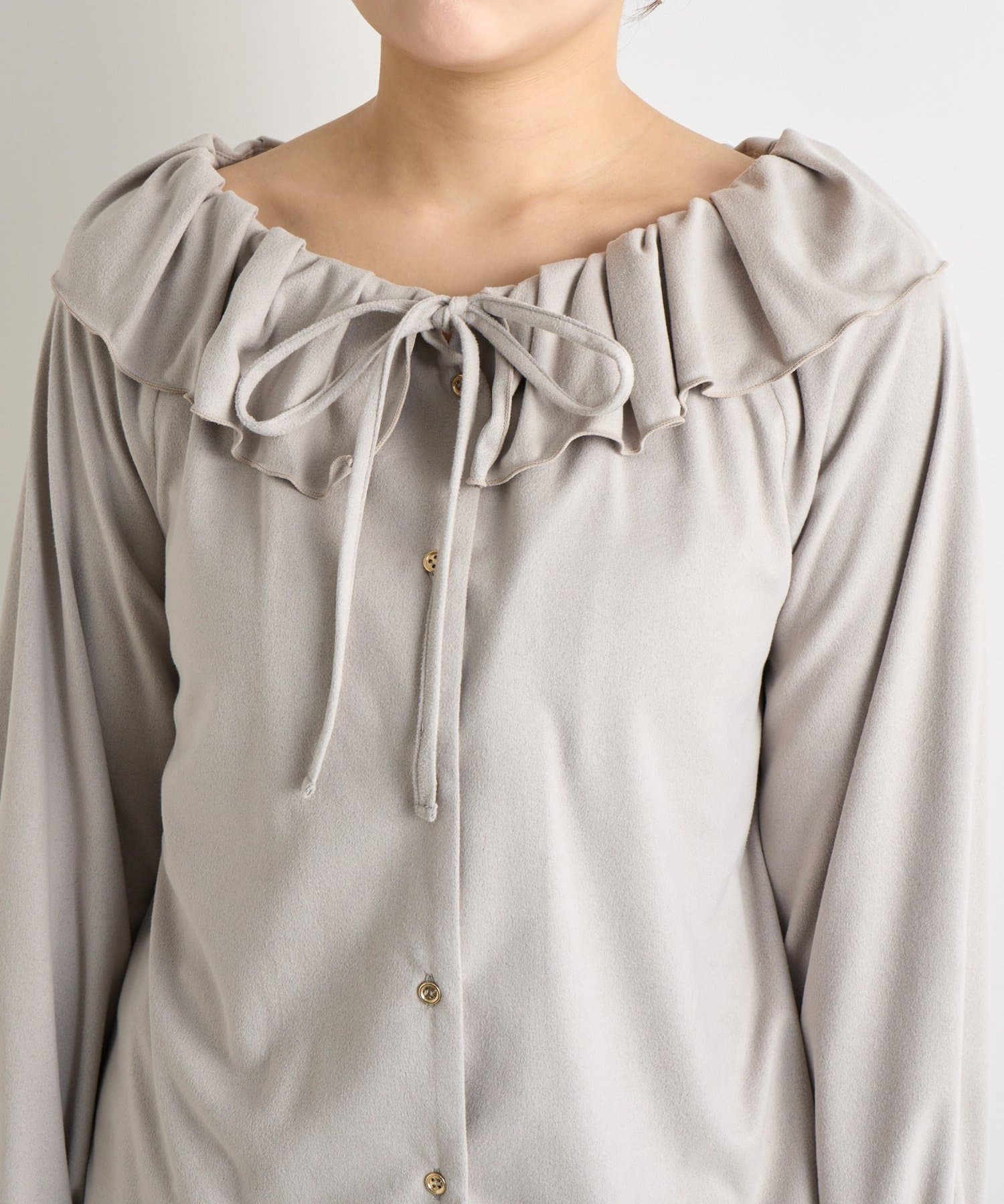 【トレンド先取り】微起毛ギャザーフリルリボンブラウス