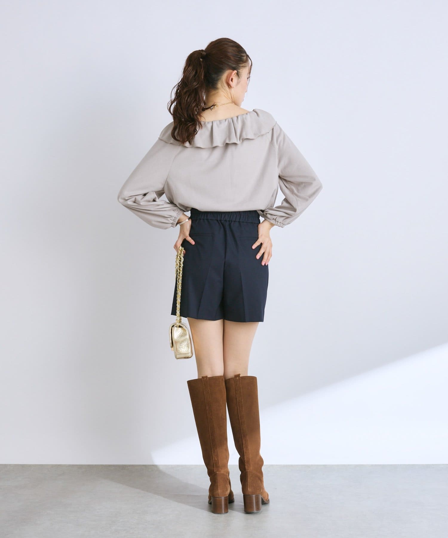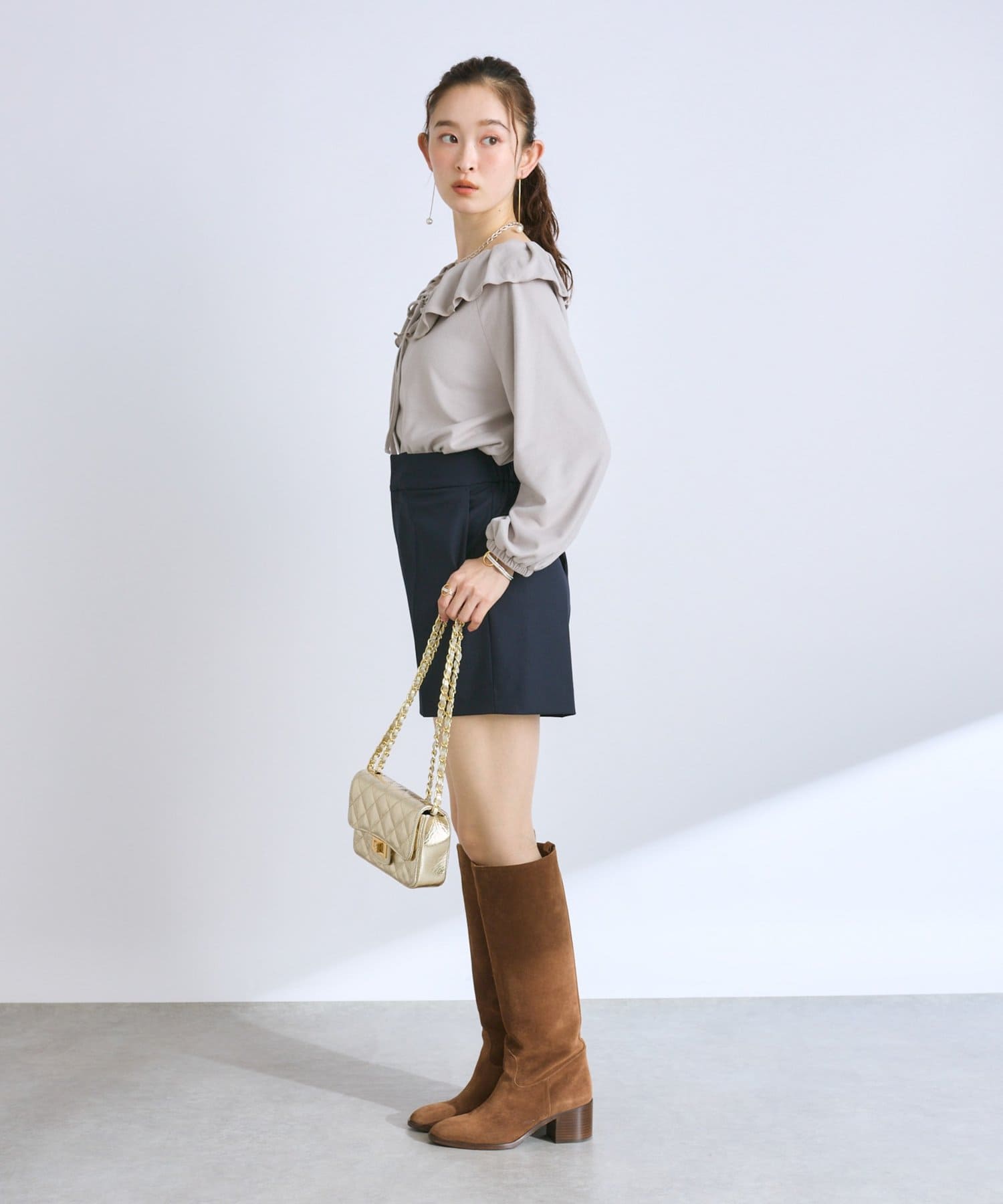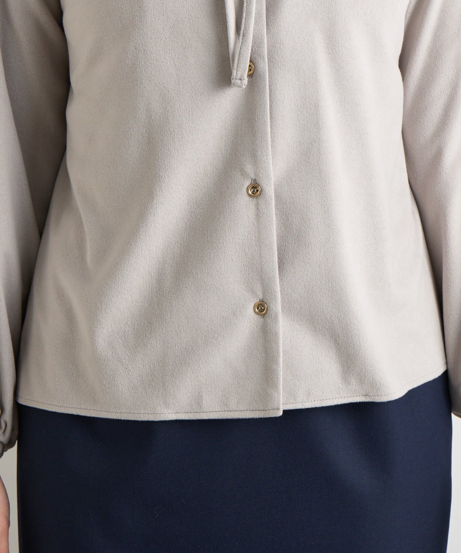 秋らしさを感じさせるスエードライクな起毛素材が上品な印象に。