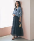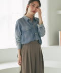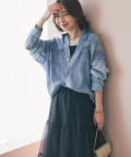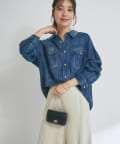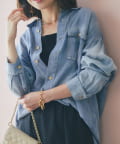 • La boutique BonBon(ラブティックボンボン) 【3シーズン着れる】シアーデニム金釦2WAYシャツ