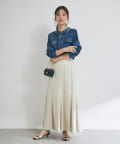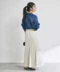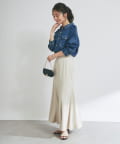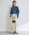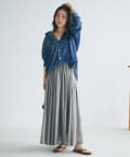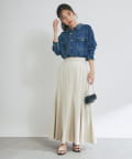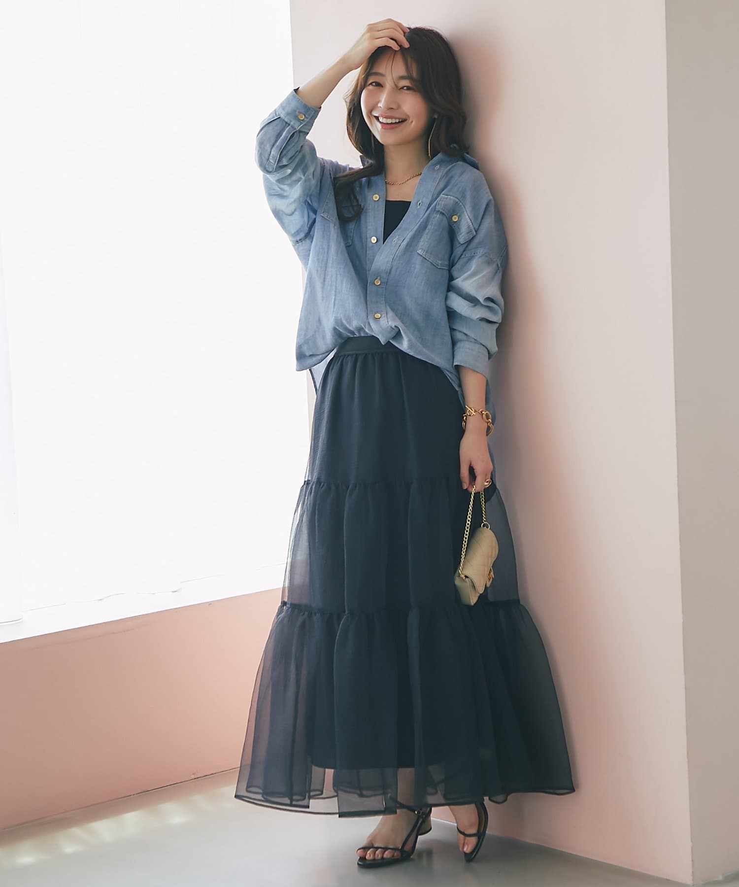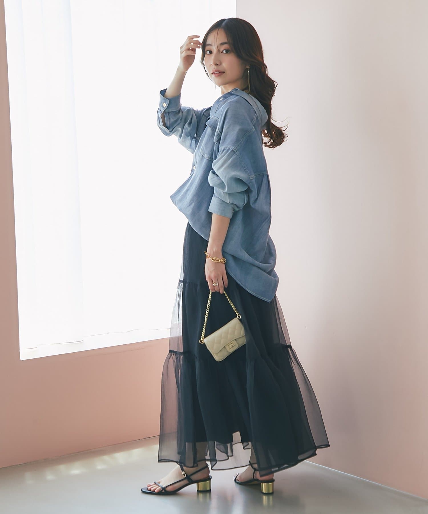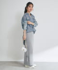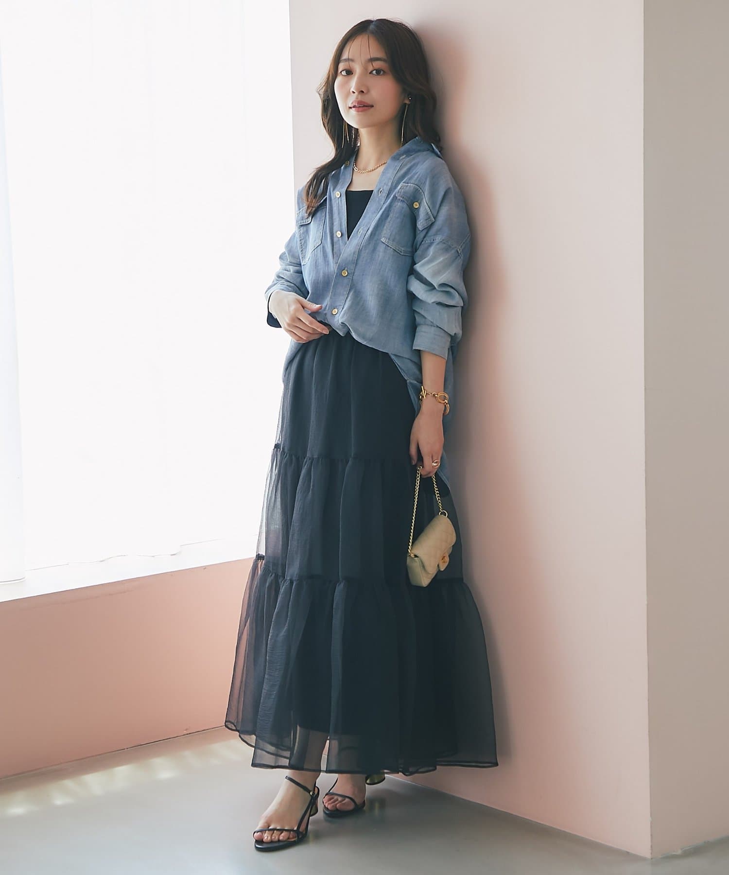 スカートやワンピースに羽織れば、カジュアルミックススタイルが完成。