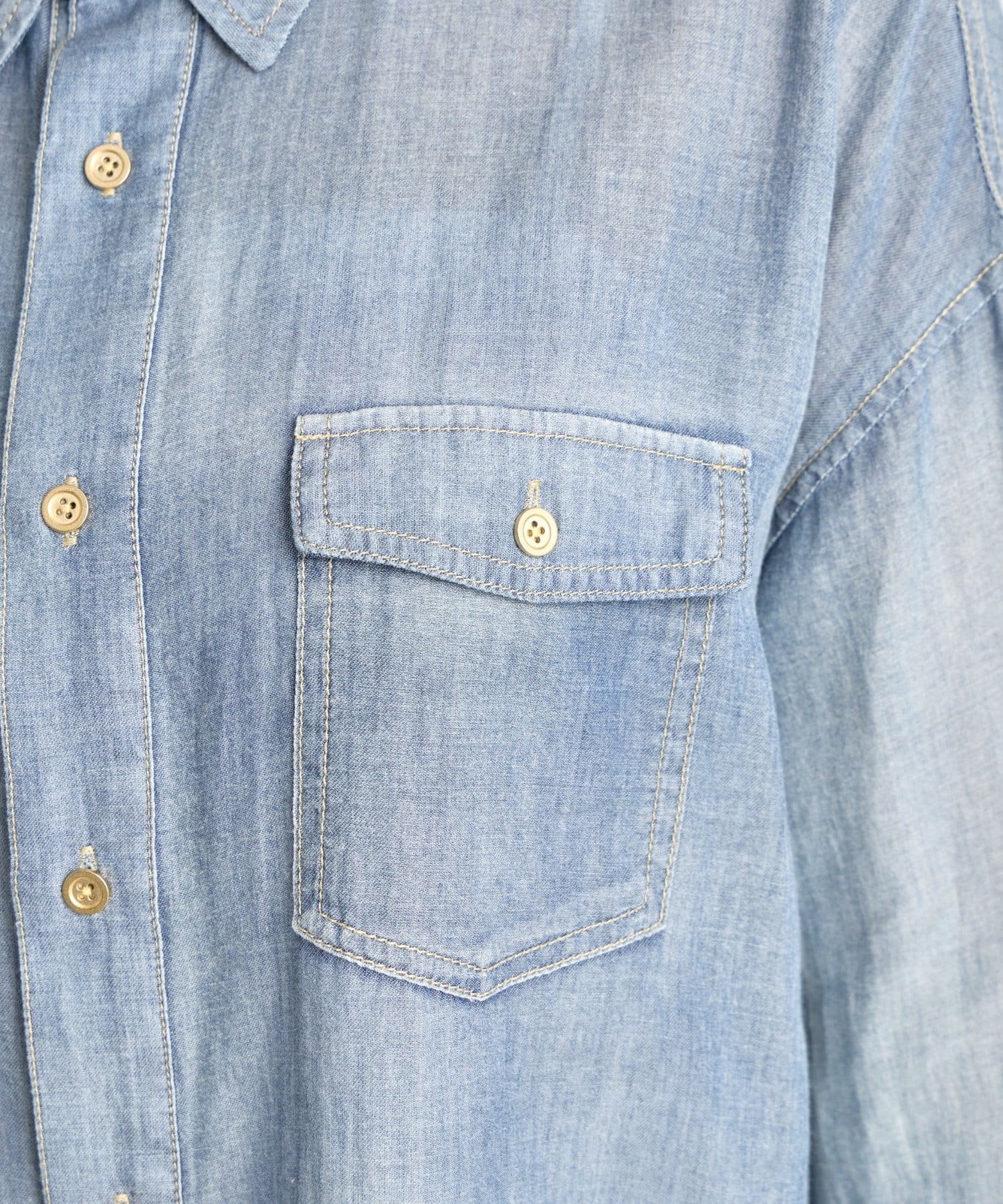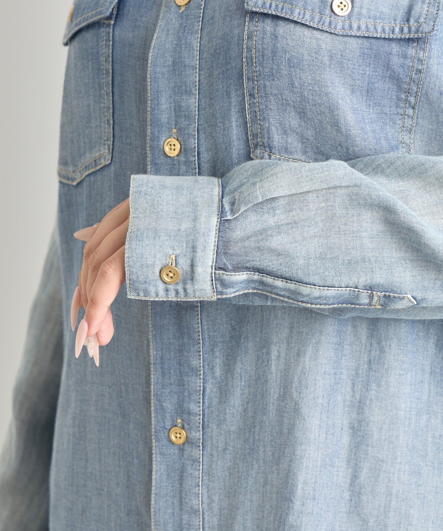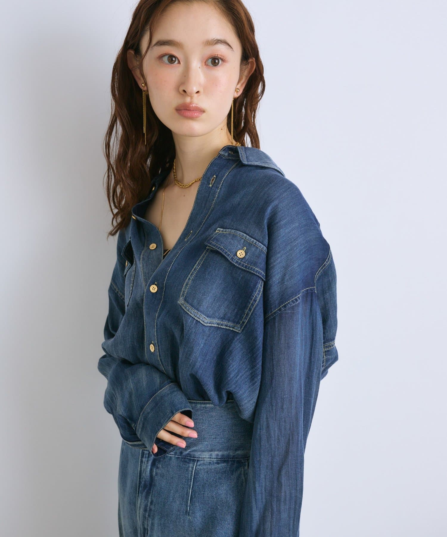 【3シーズン着れる】シアーデニム金釦2WAYシャツ