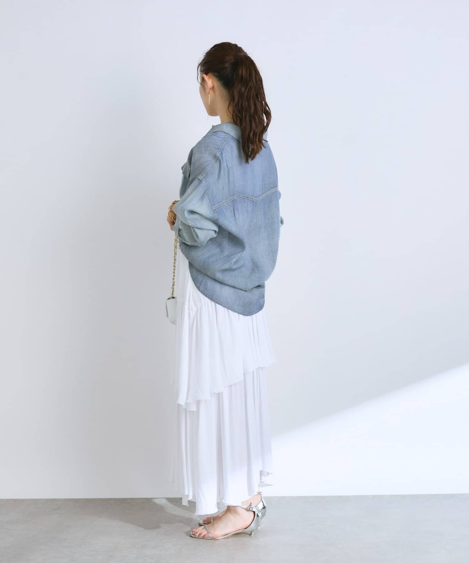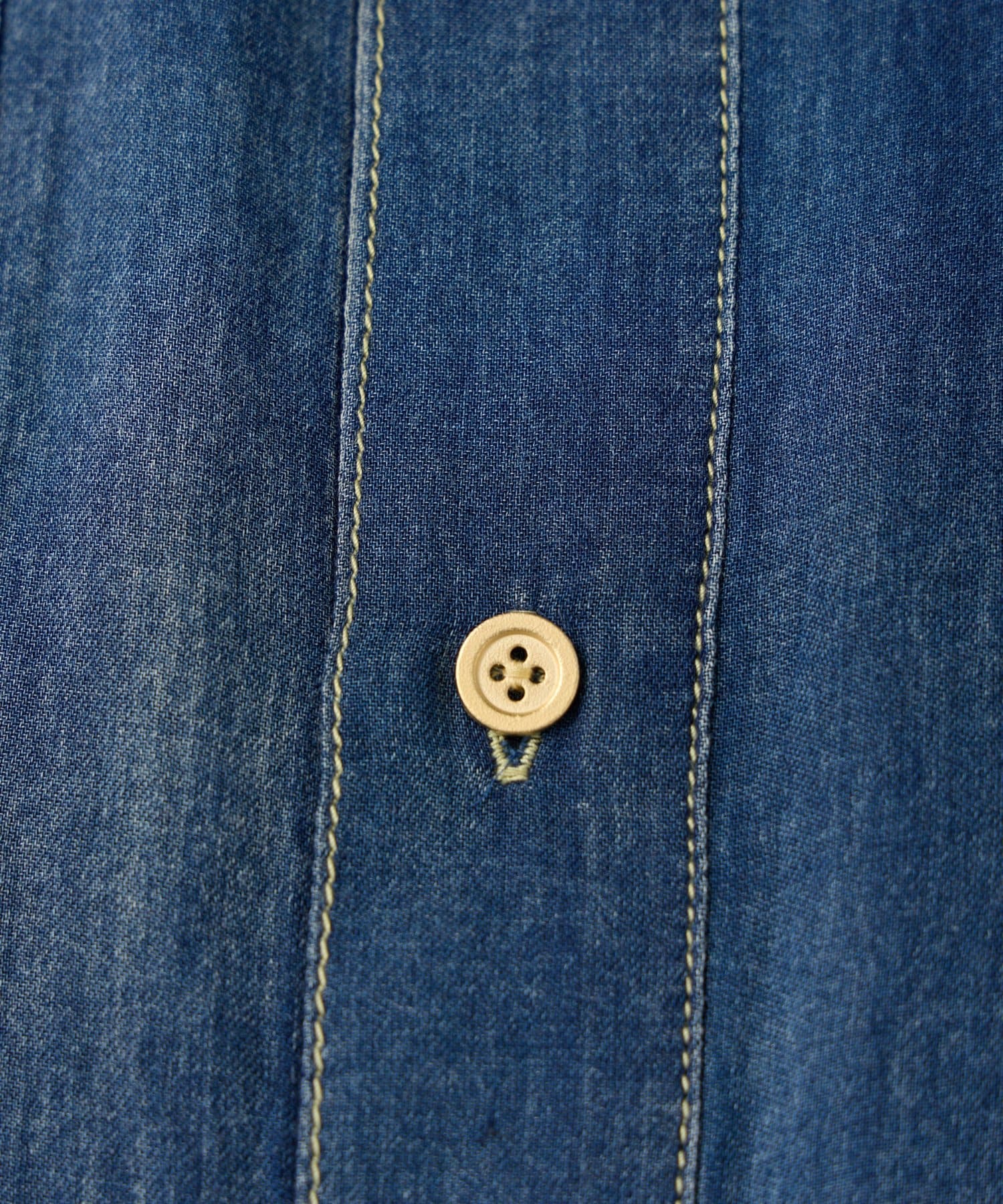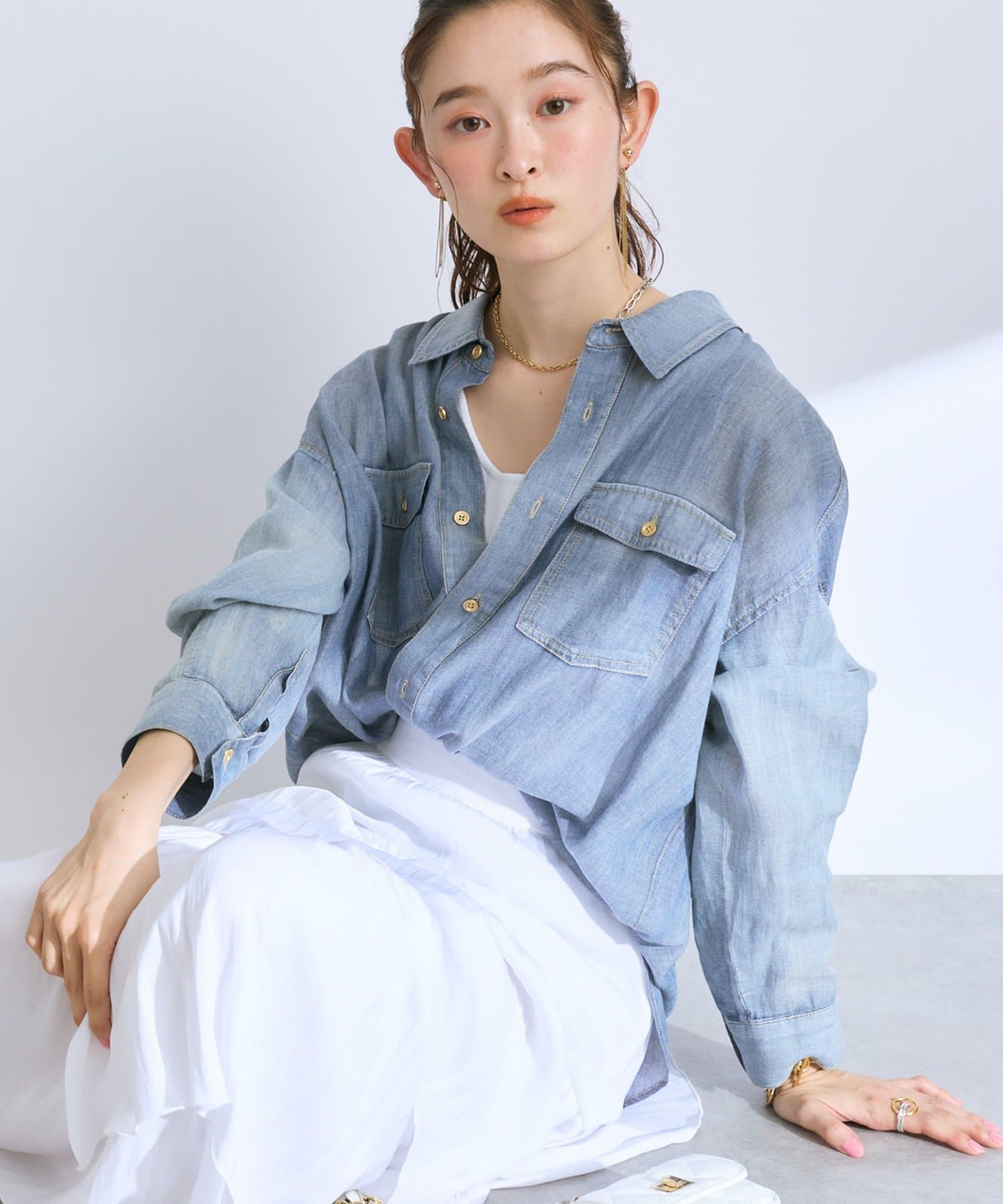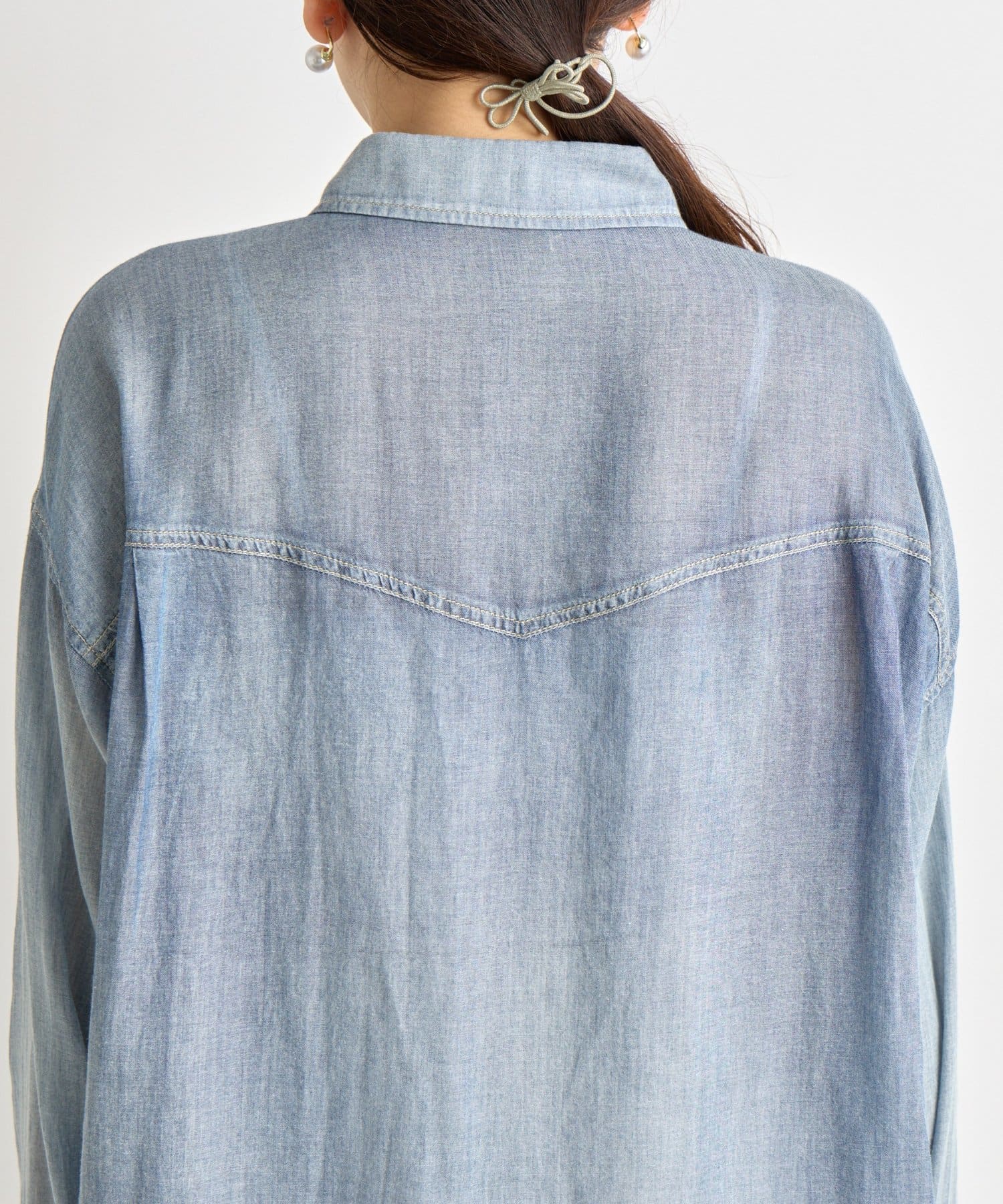 【3シーズン着れる】シアーデニム金釦2WAYシャツ