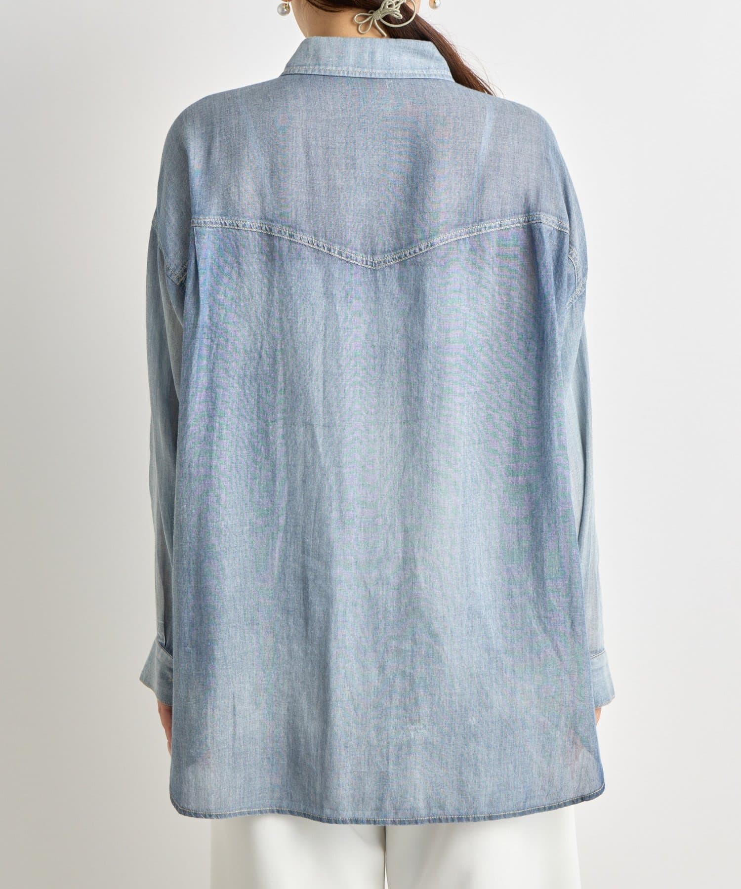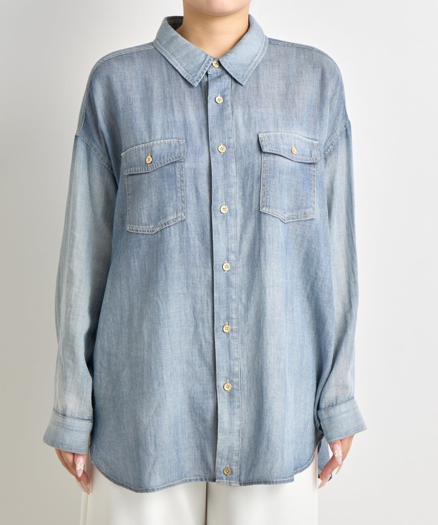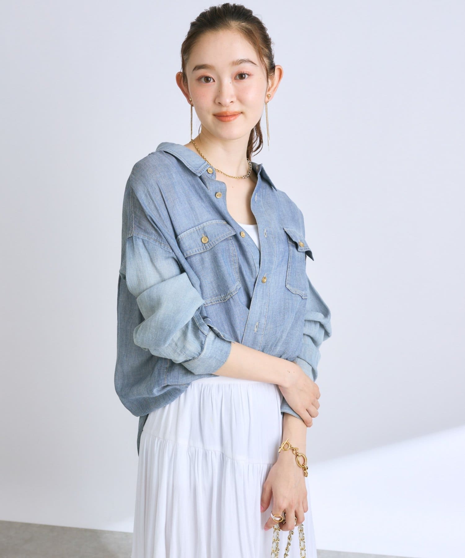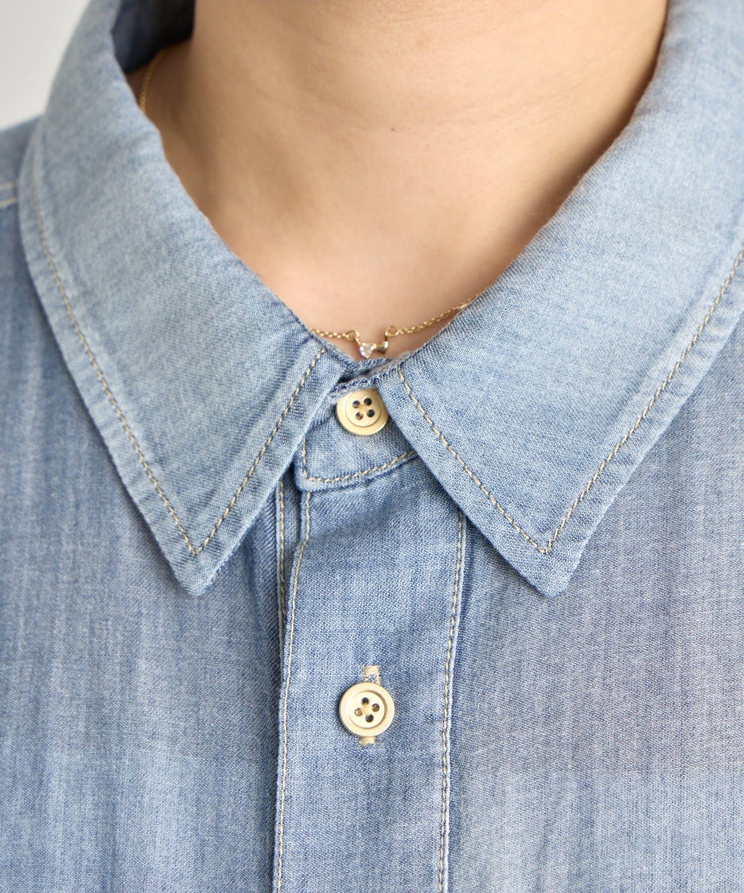 TOP > La boutique BonBon > レディース > トップス > シャツ/ブラウス(ボタン) > 【3シーズン着れる】シアーデニム金釦2WAYシャツ