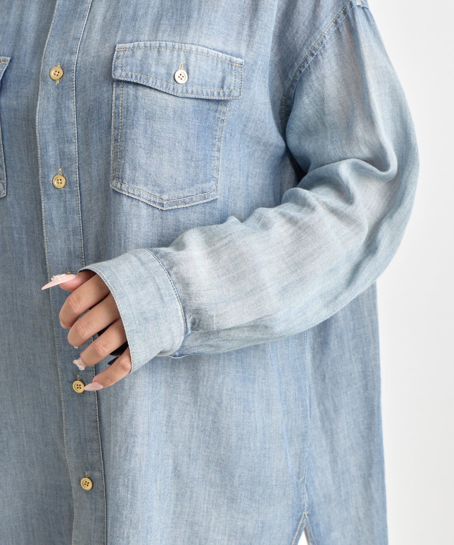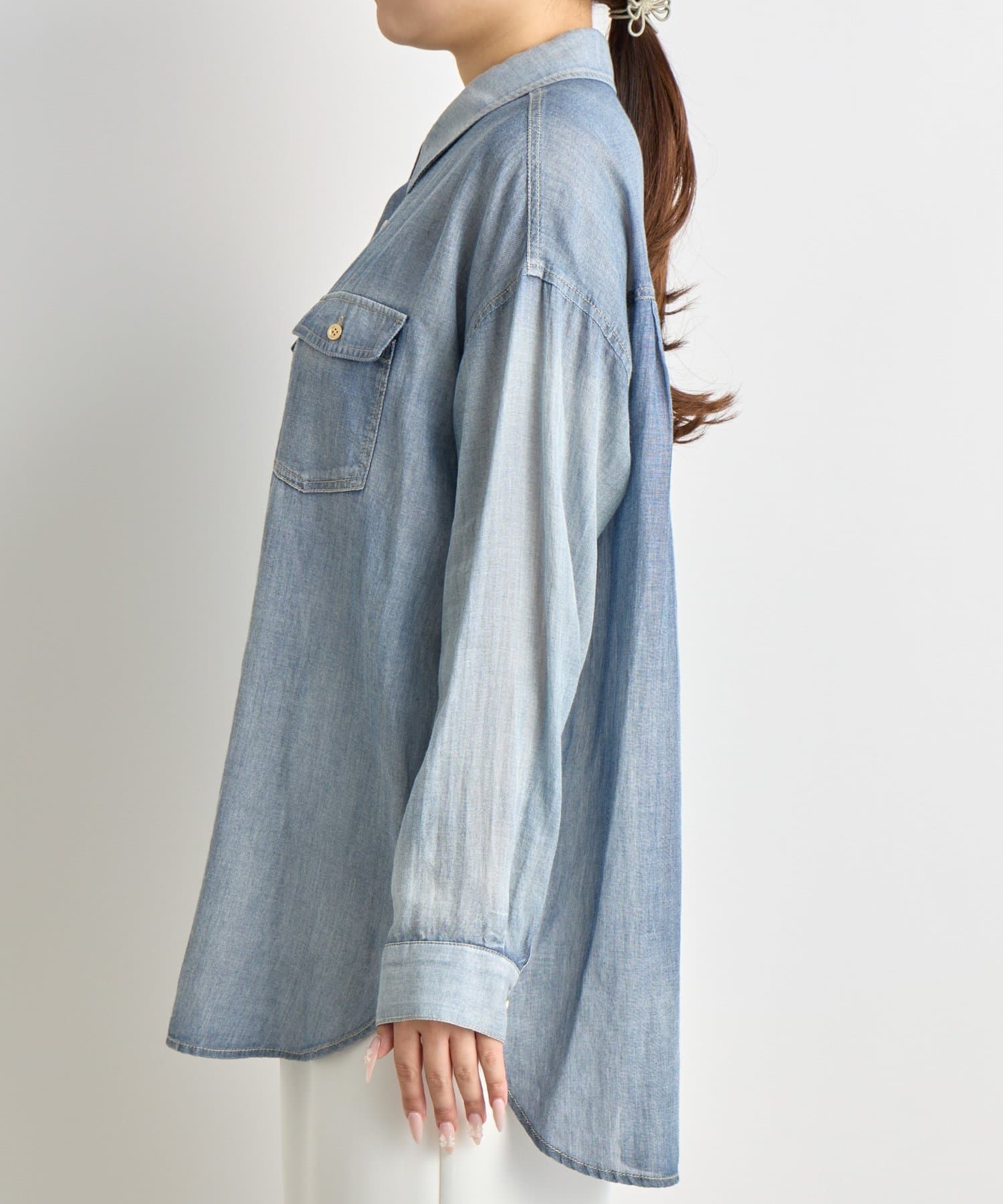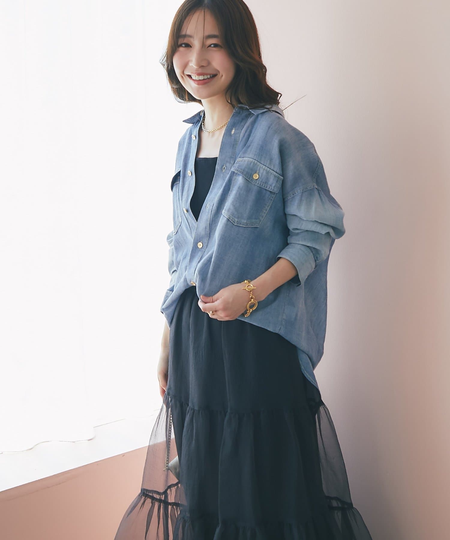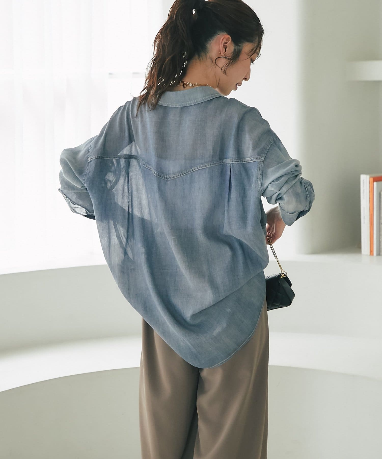 TOP > La boutique BonBon > レディース > トップス > シャツ/ブラウス(ボタン) > 【3シーズン着れる】シアーデニム金釦2WAYシャツ