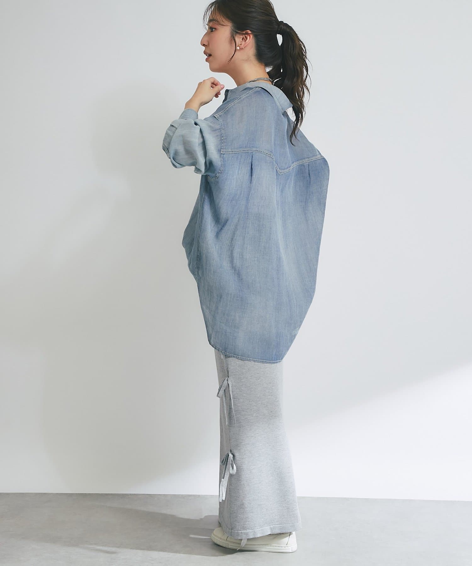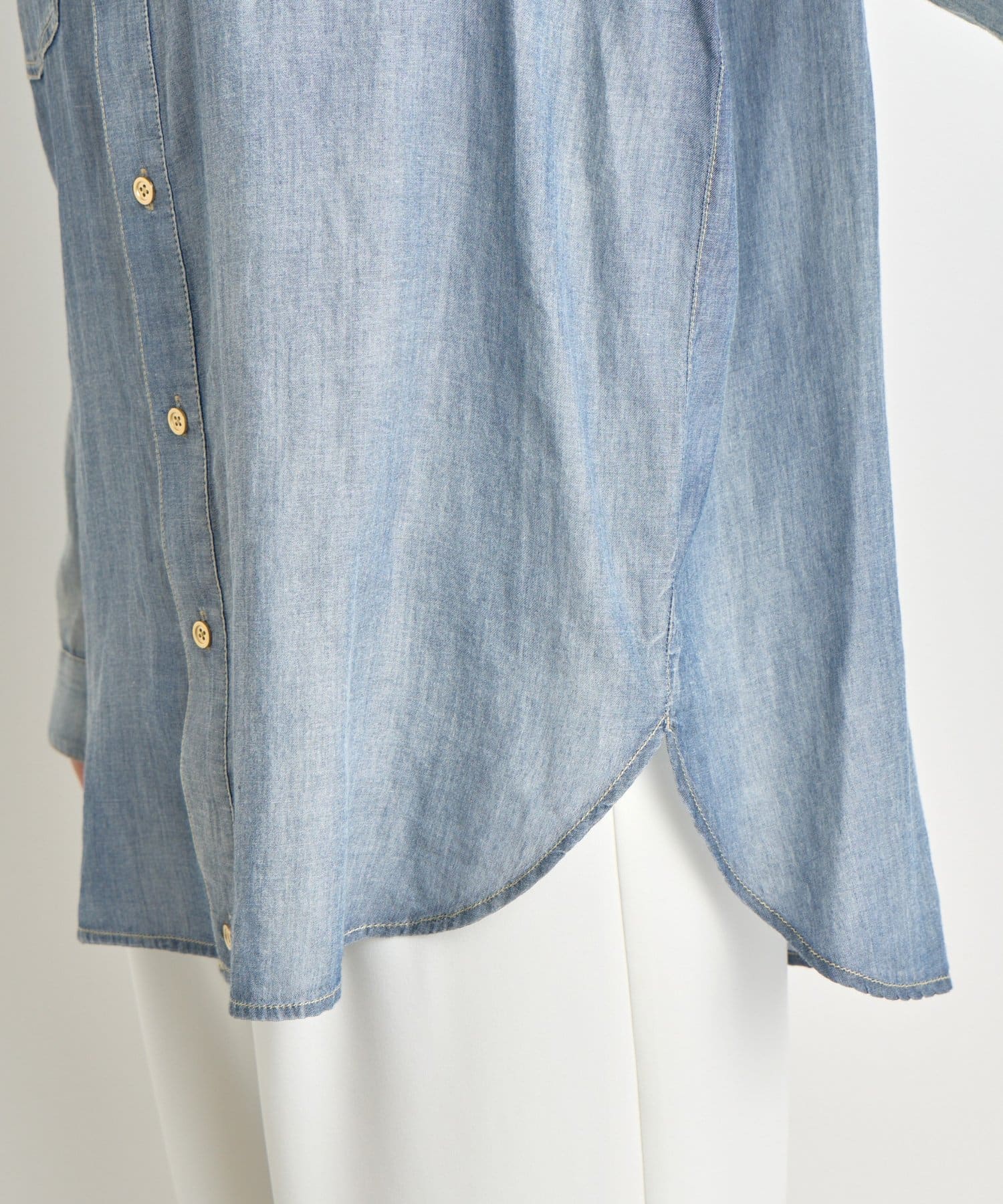 La boutique BonBon(ラブティックボンボン) 【3シーズン着れる】シアーデニム金釦2WAYシャツ