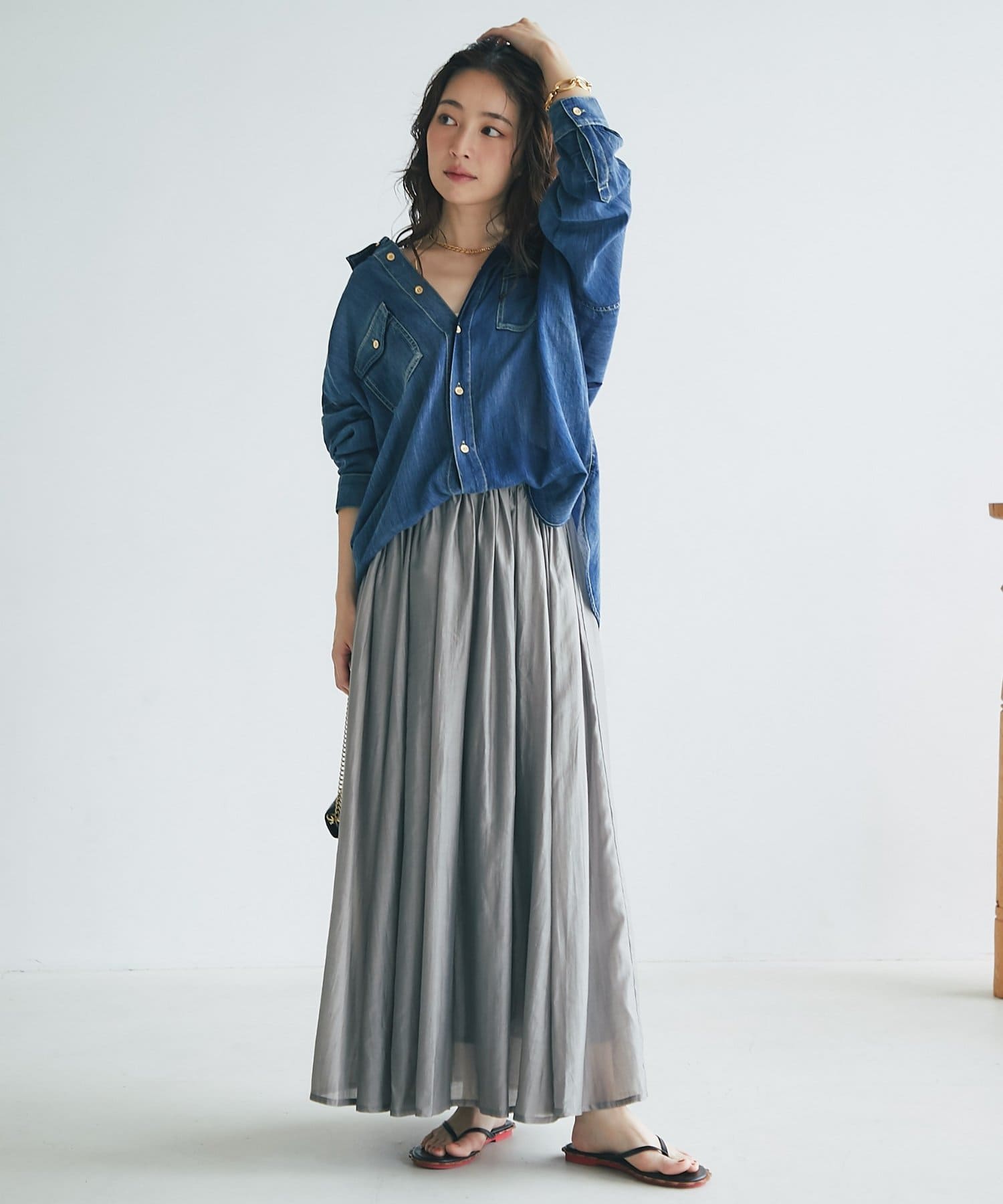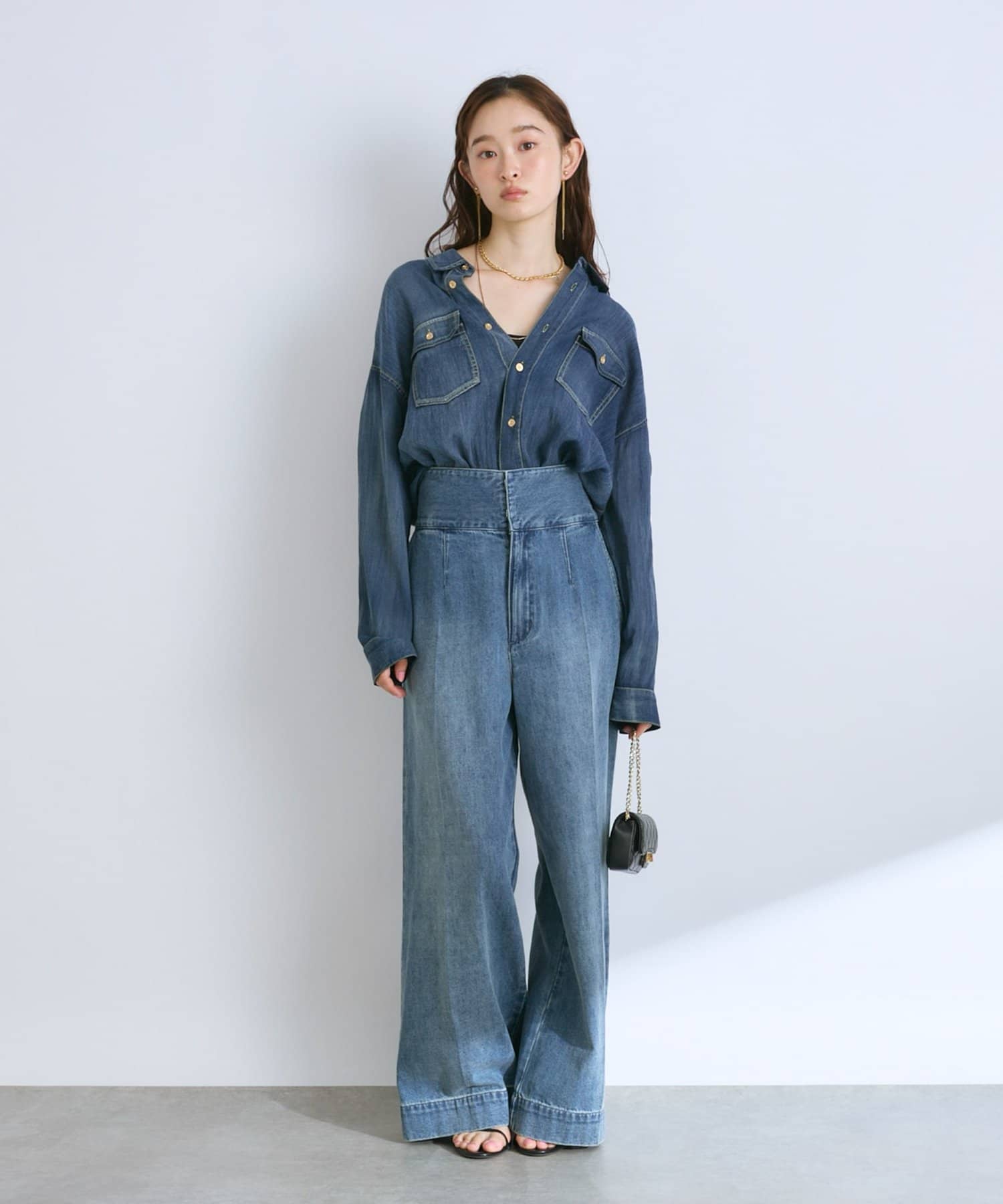 下着が透けすぎるシアーシャツが多数ありますが、デニムの色味がカバーしてくれるのか、暑すぎることなくサラッと着られて、汗をかいてもペタペタしない点も良かったです。