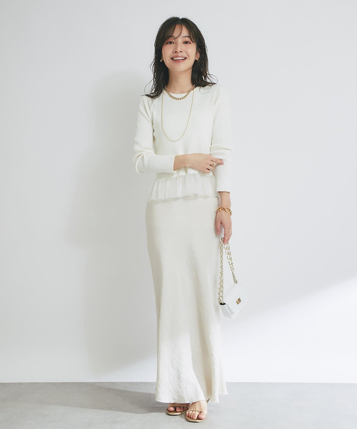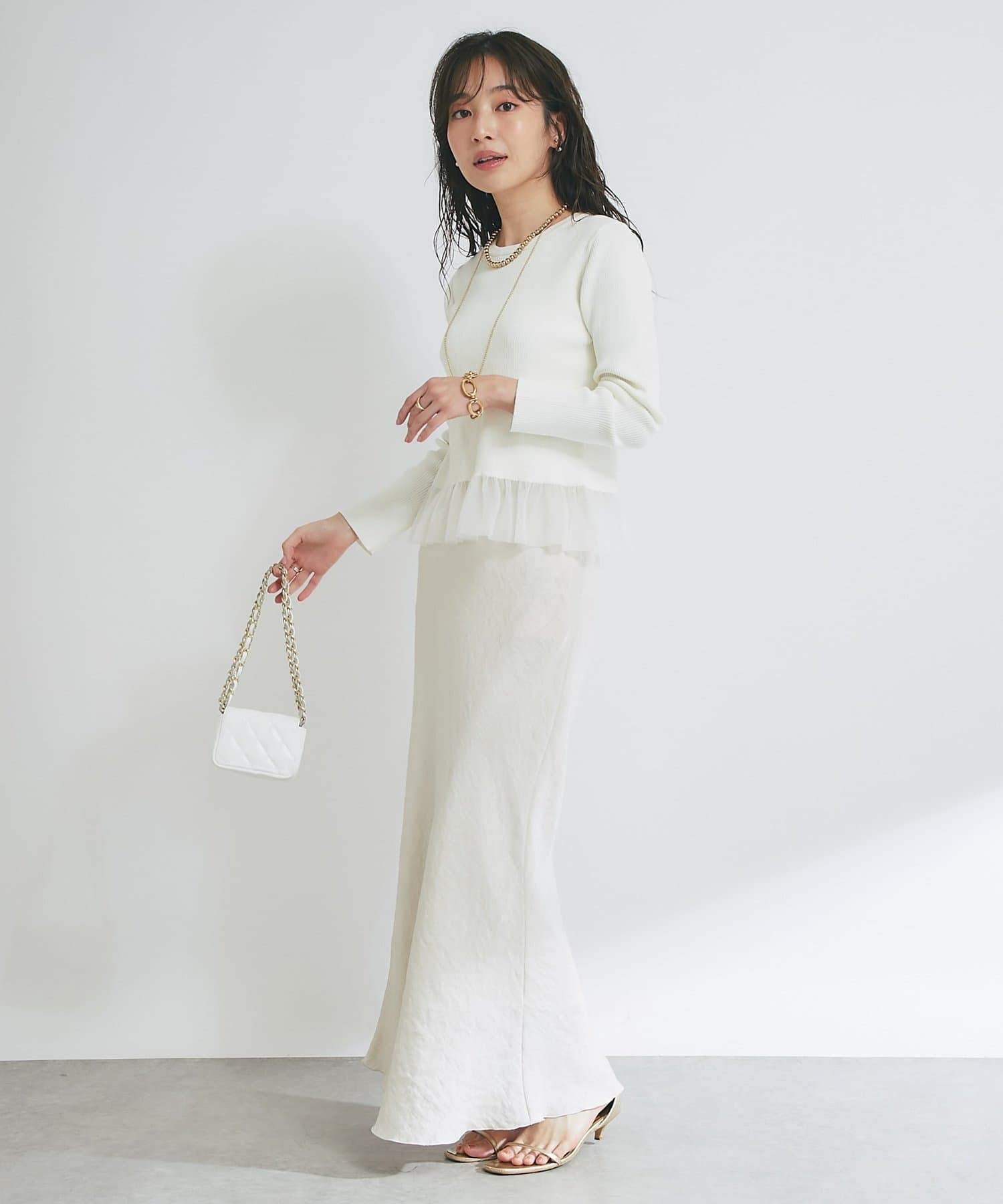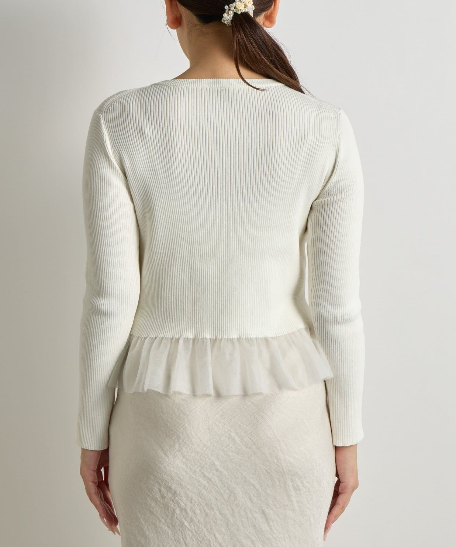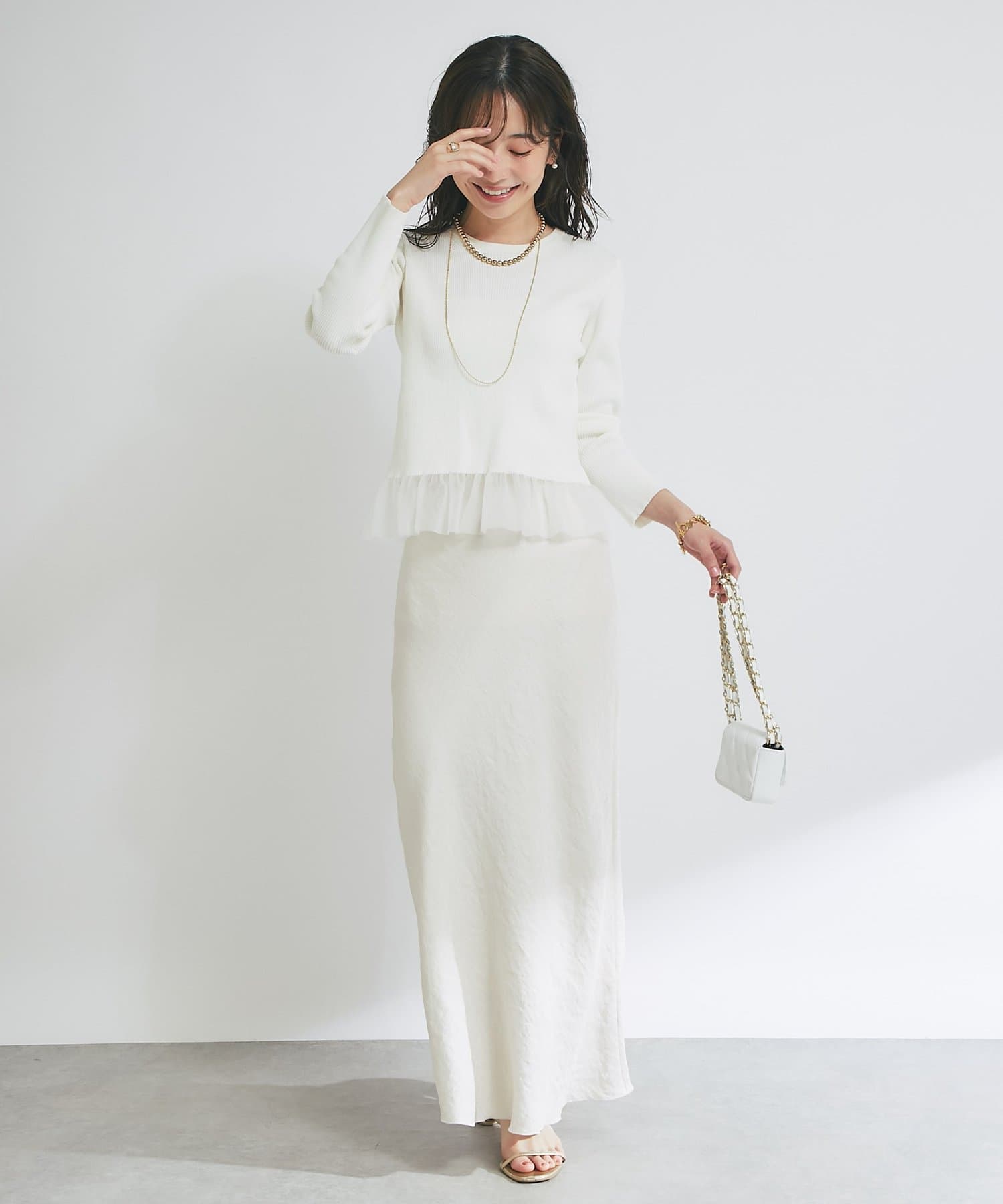 甘くなりすぎない繊細なフリルが、洗練された大人の可愛らしさを演出してくれます。