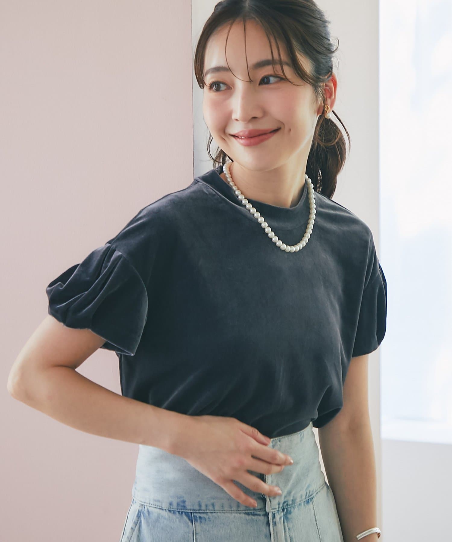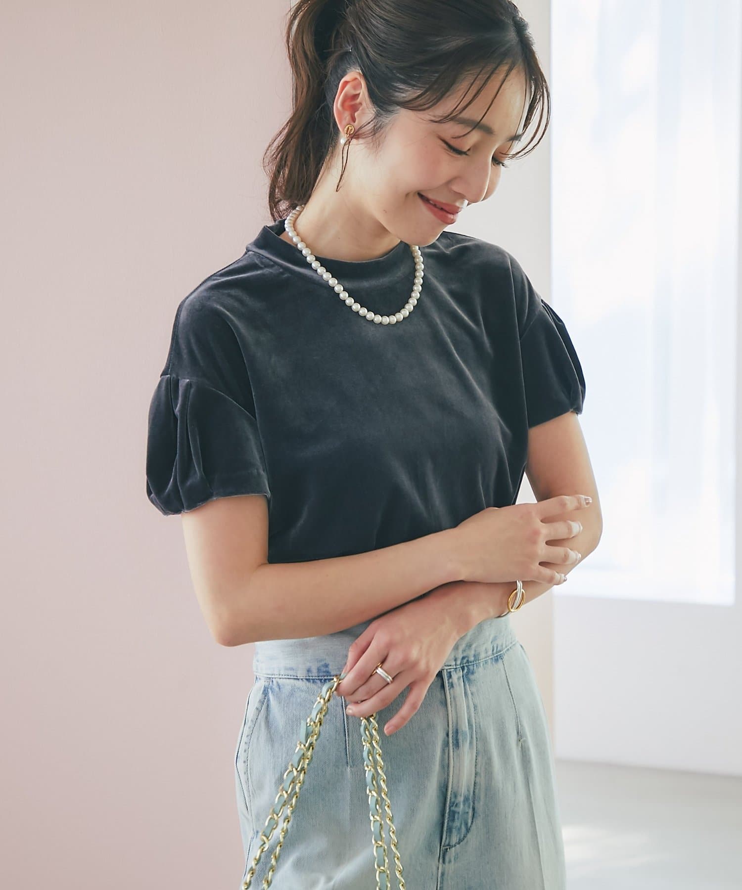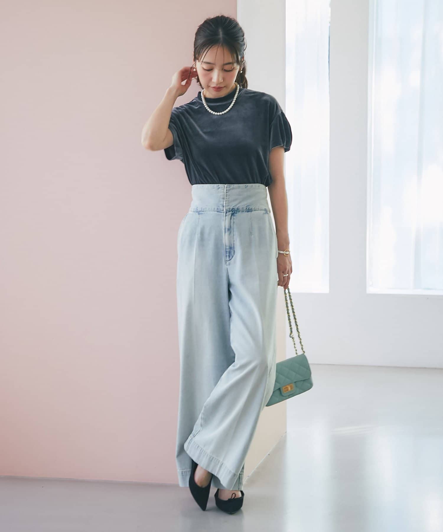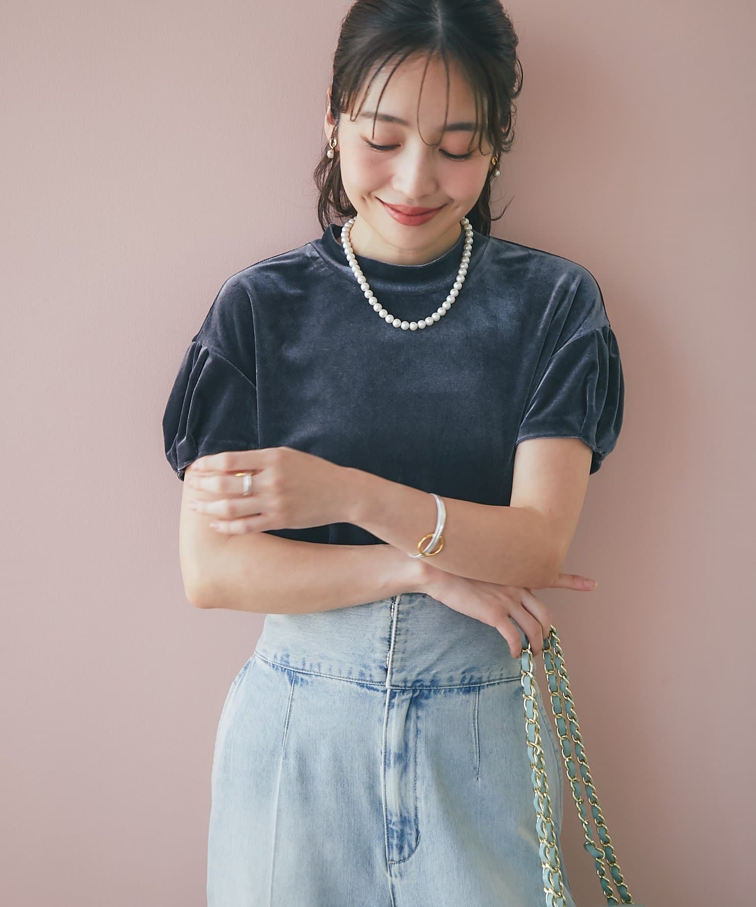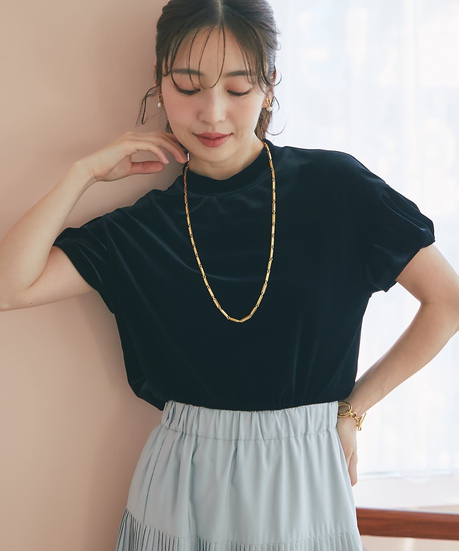 きれいめボトムに合わせてエレガントなスタイルにも、