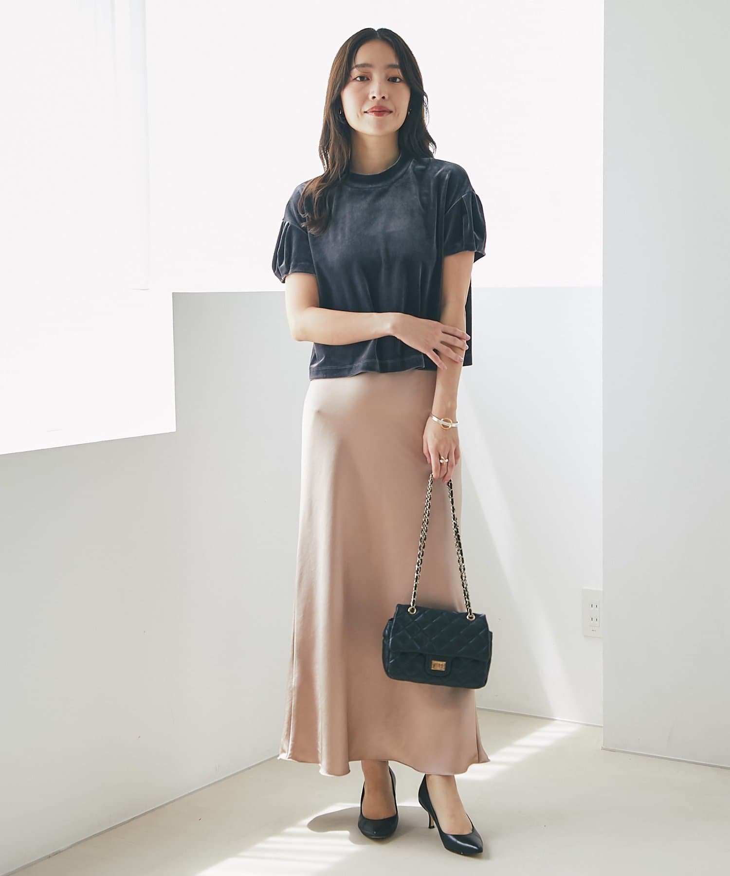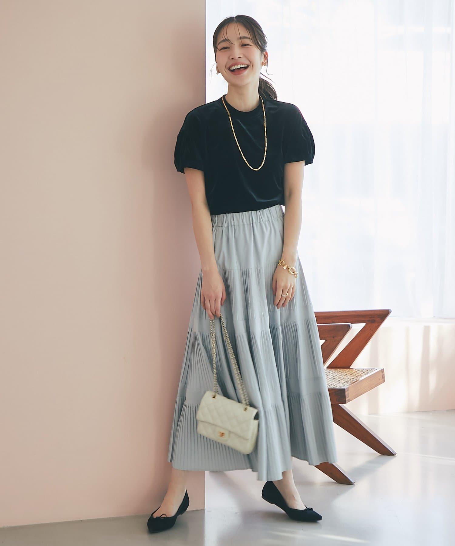 フェミニンなきれいめスカートとも相性抜群です。