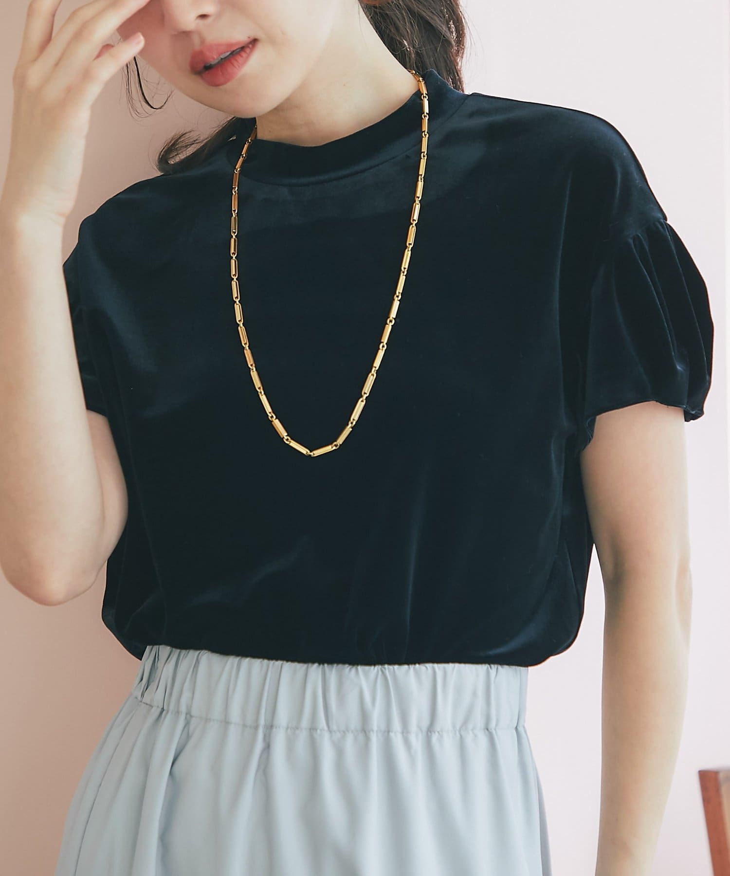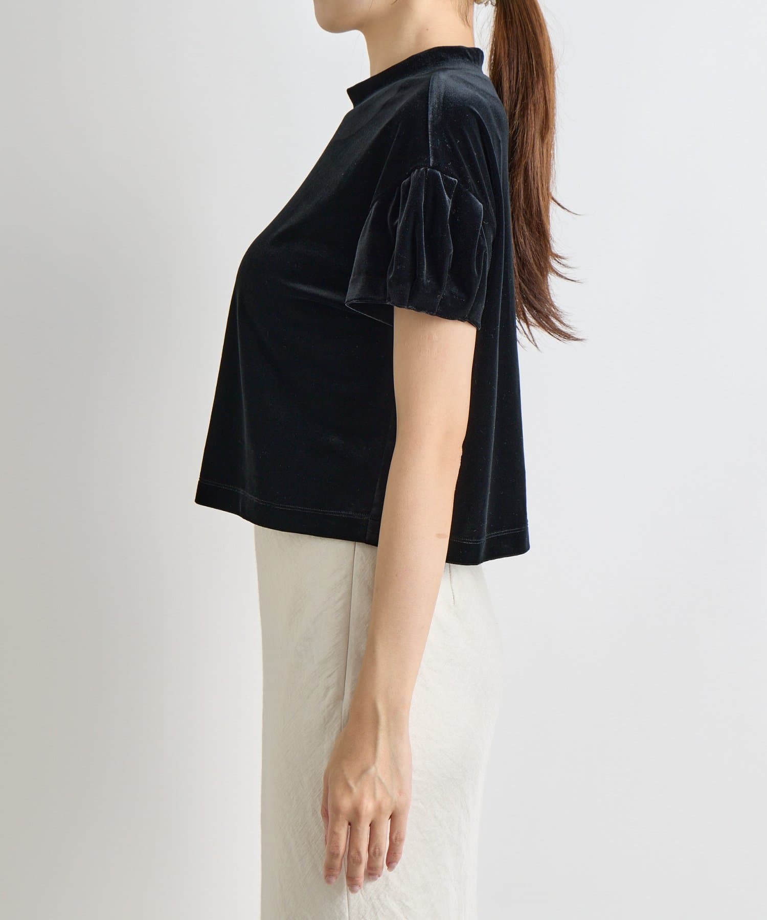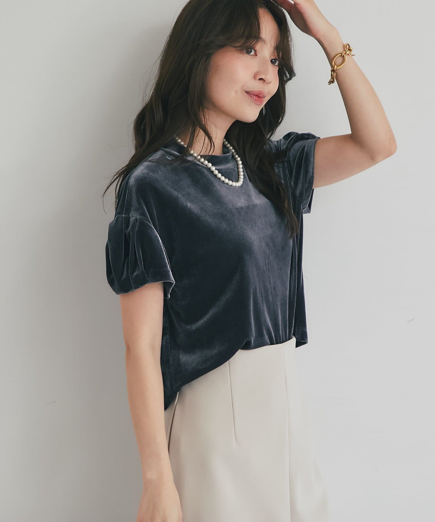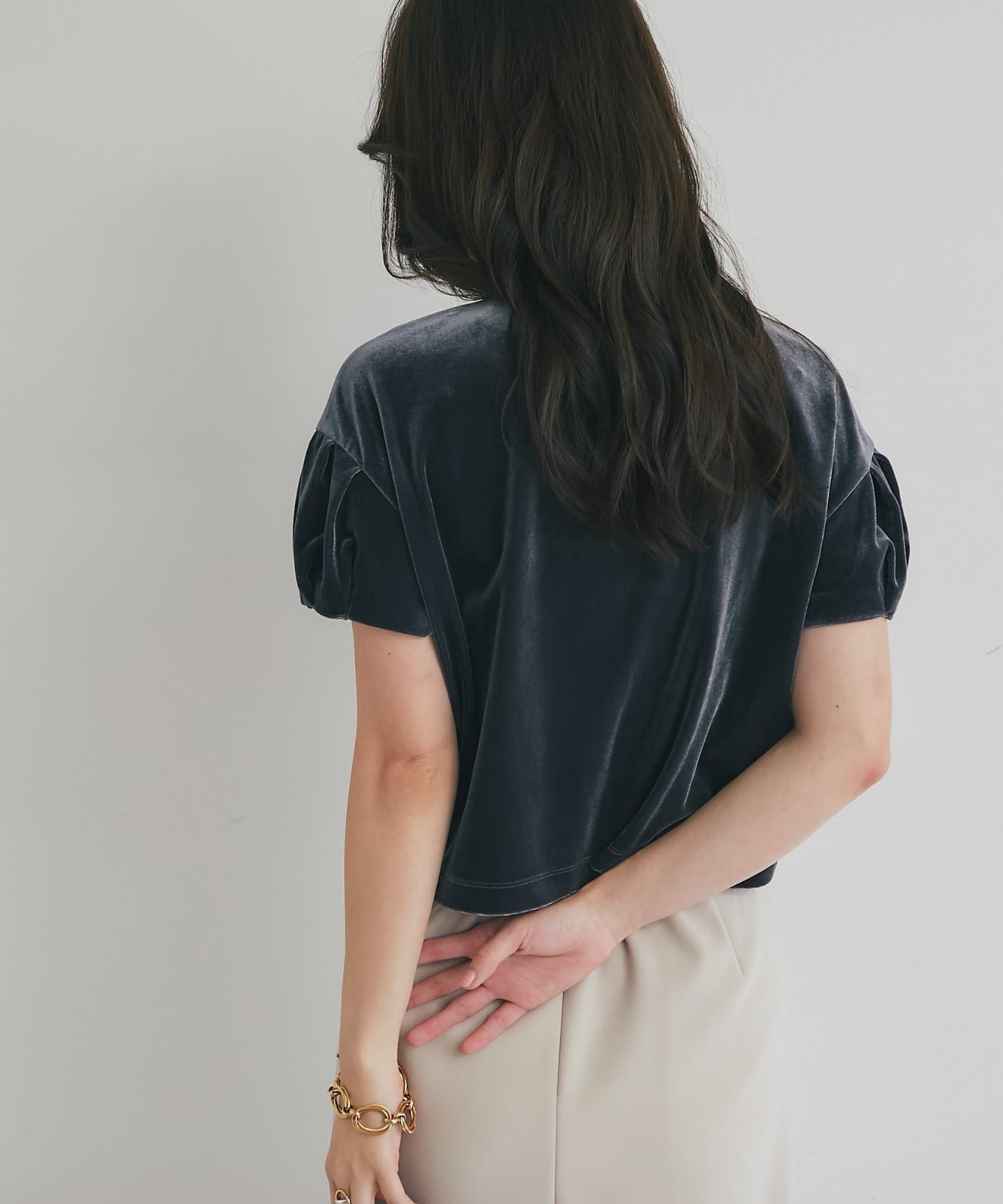 ベロア生地でエレガントな印象のトップス