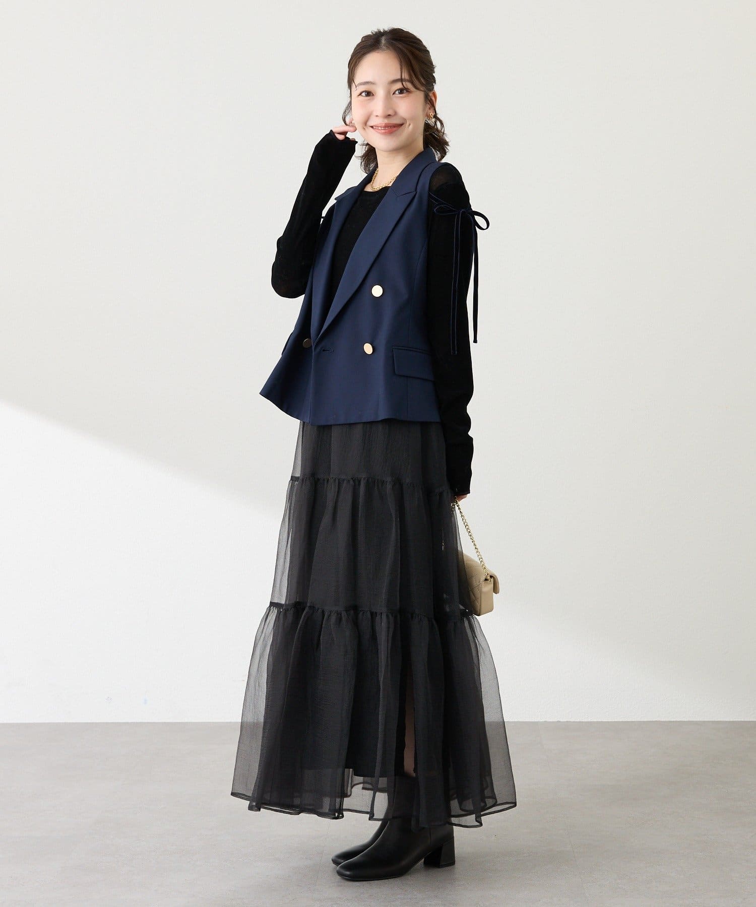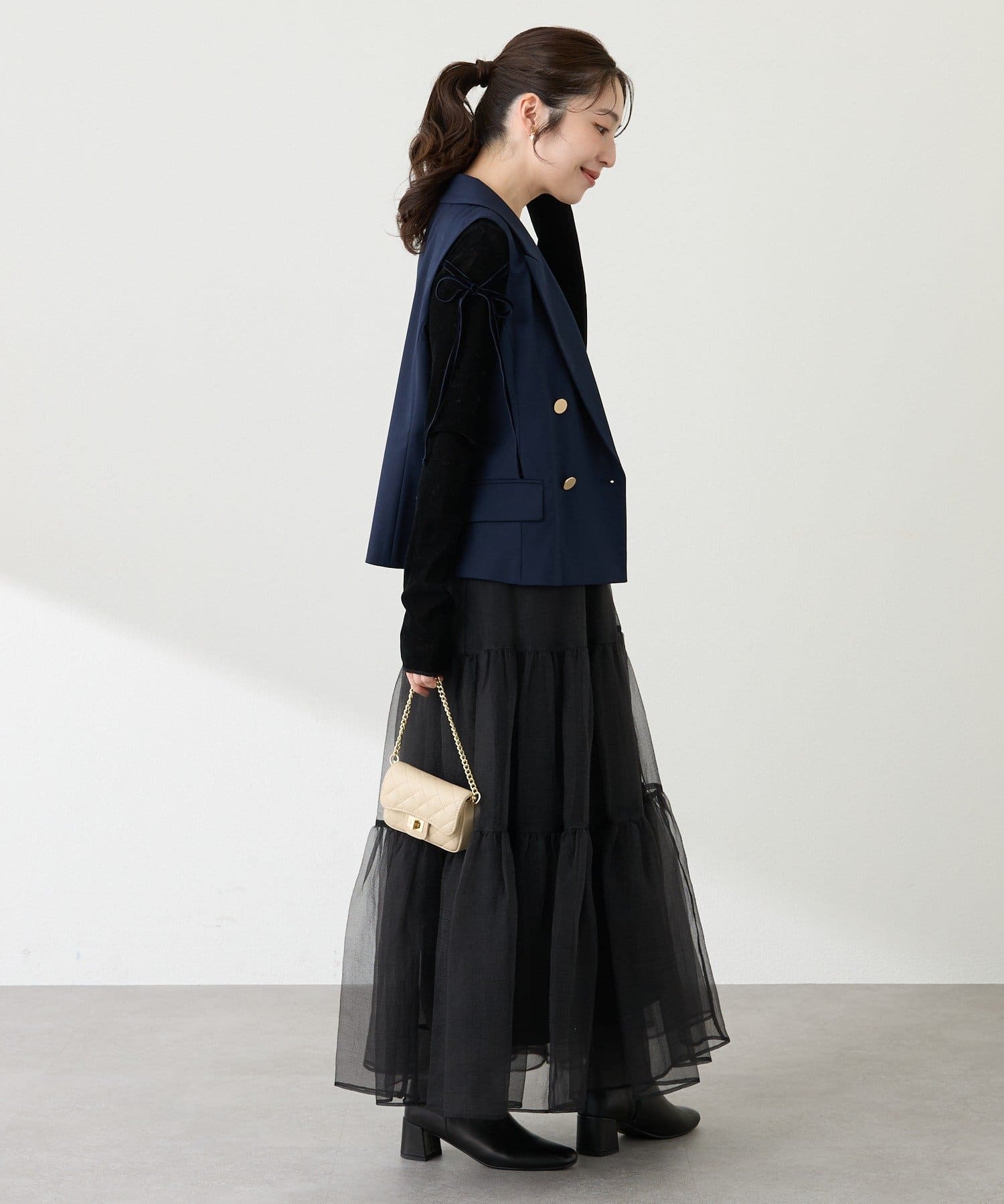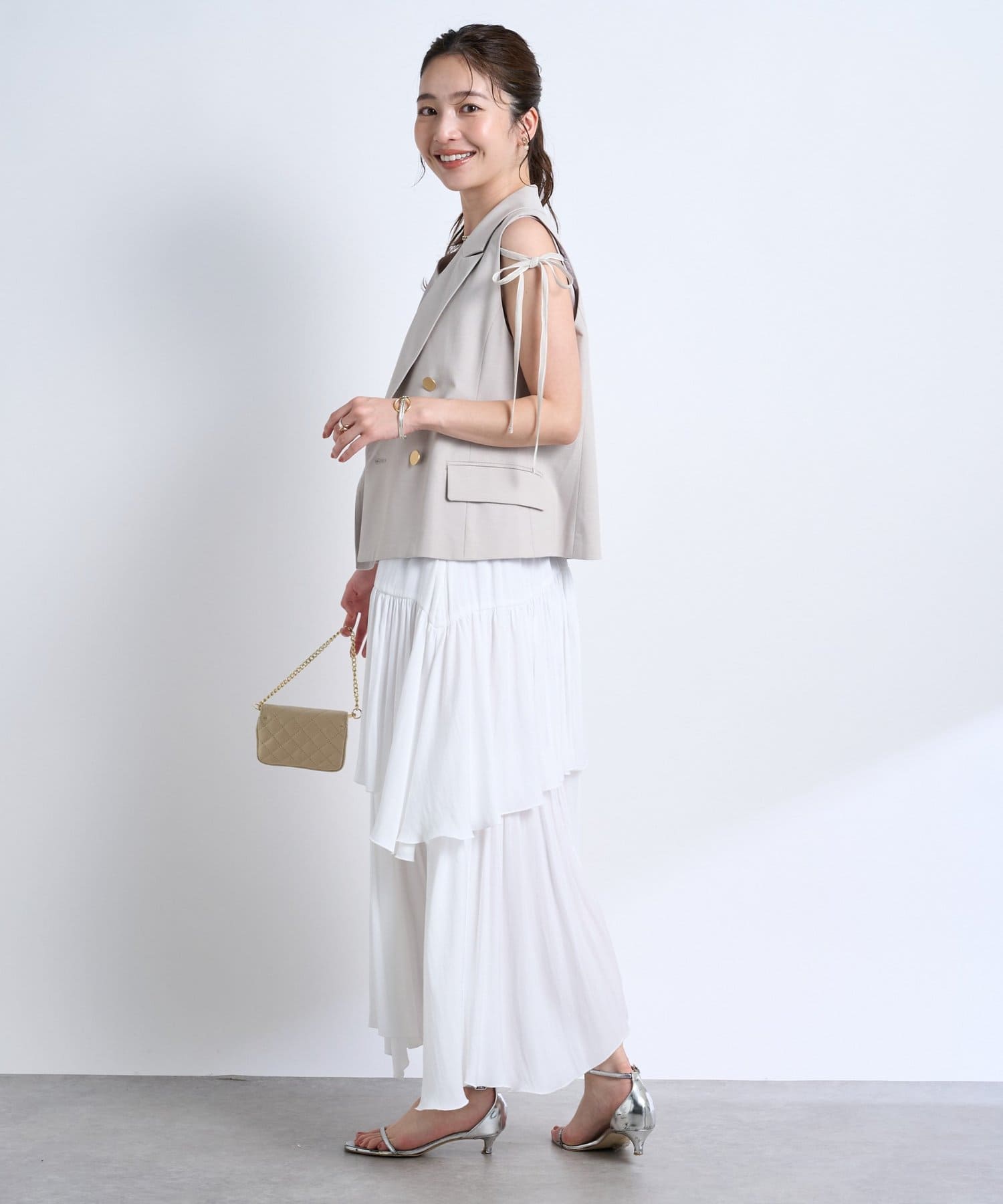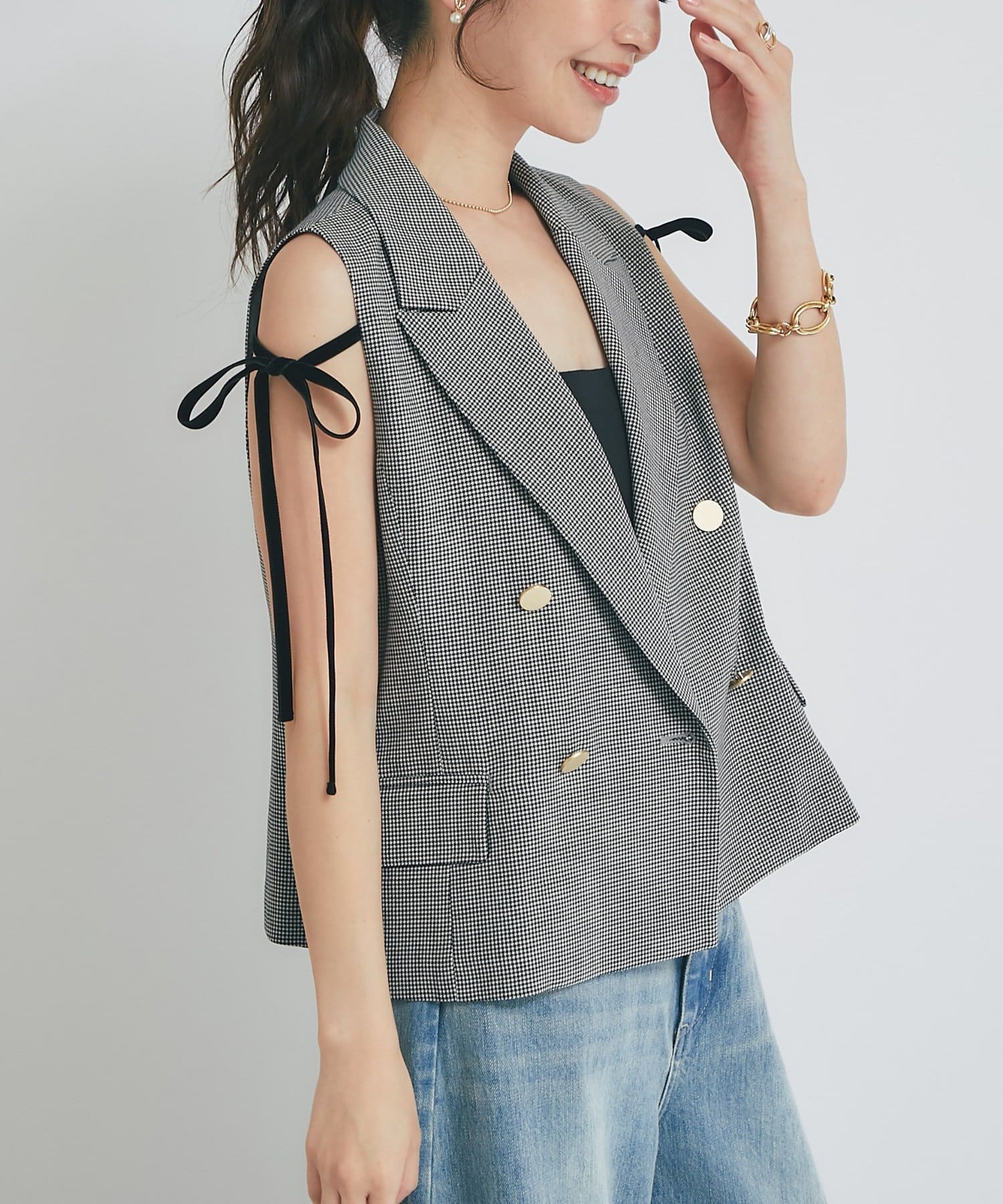 羽織るだけで旬顔、大人可愛いショートジレ。