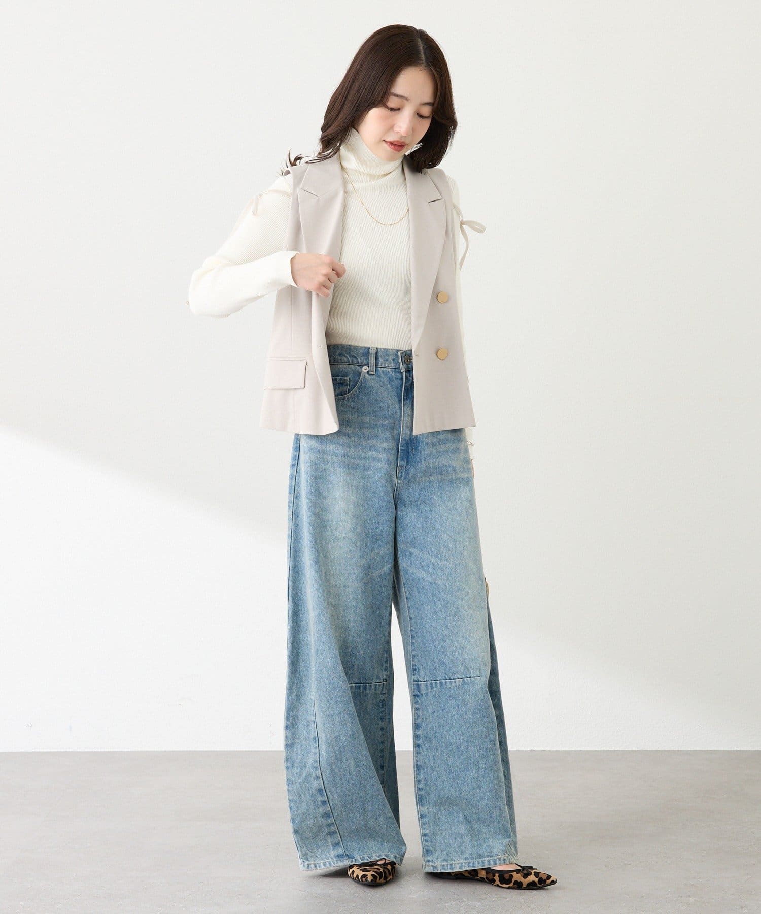 ワイドパンツを合わせたカジュアルダウンな着こなしも◎