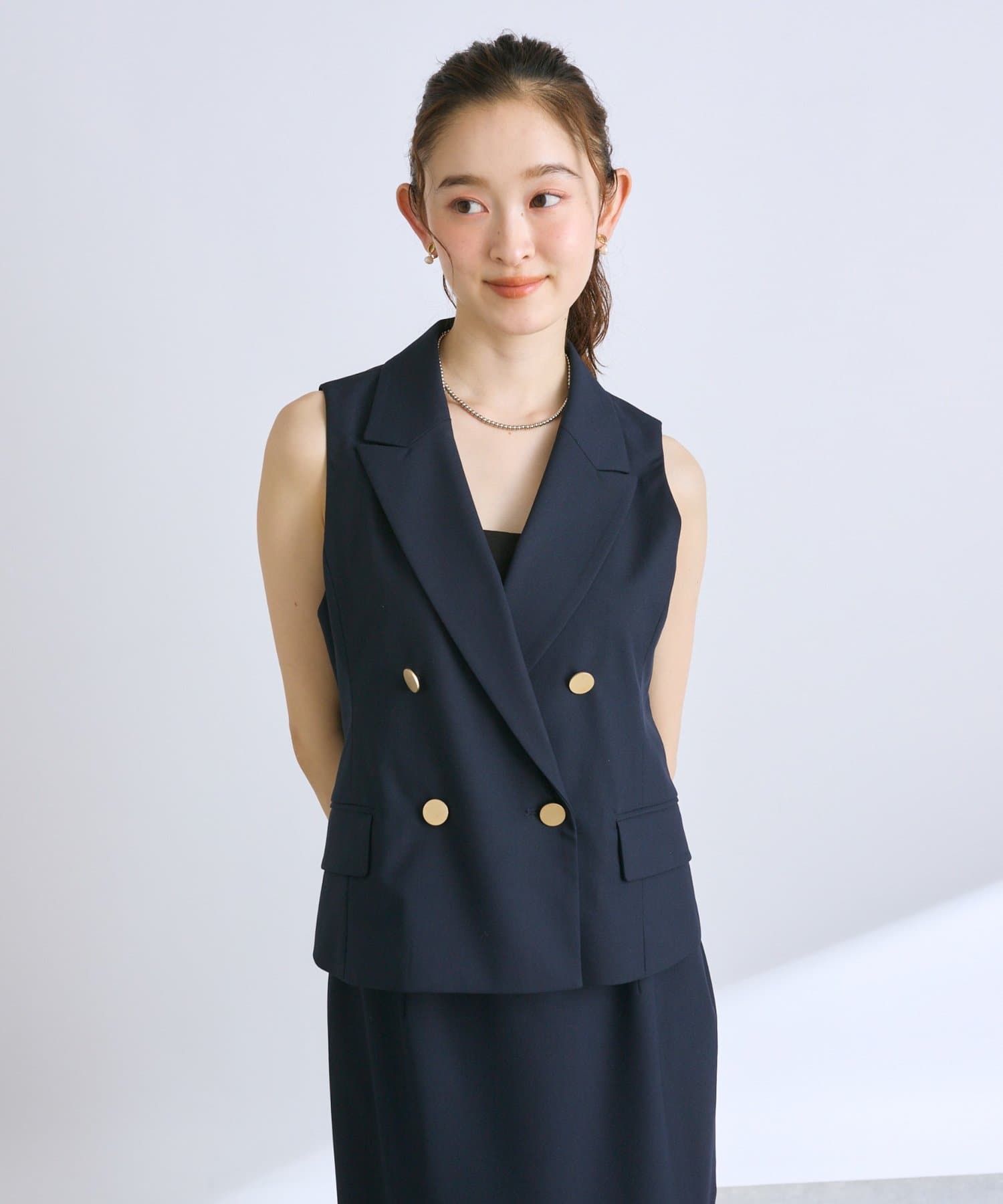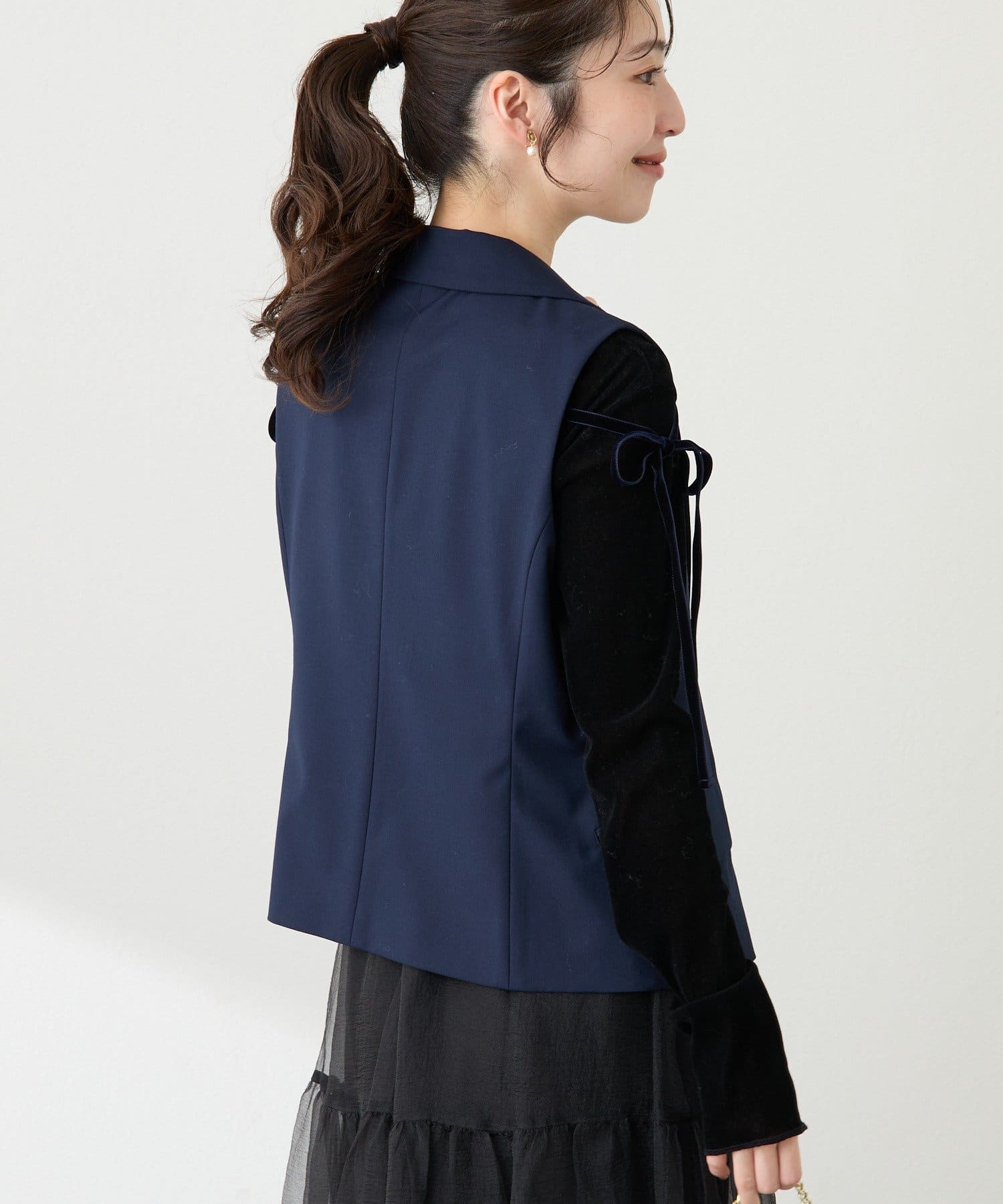 柔らかな風合いで、程よくハリのあるきれいめなショート丈ジレ。