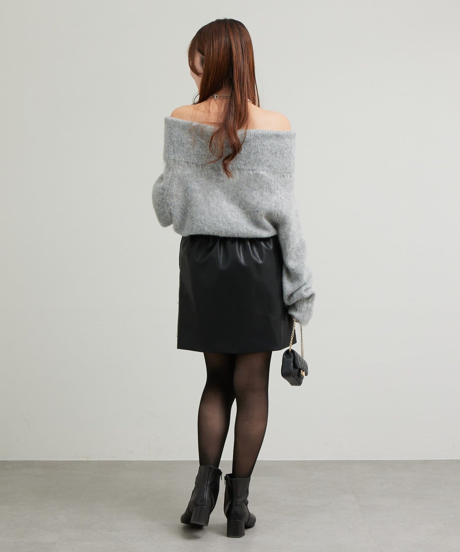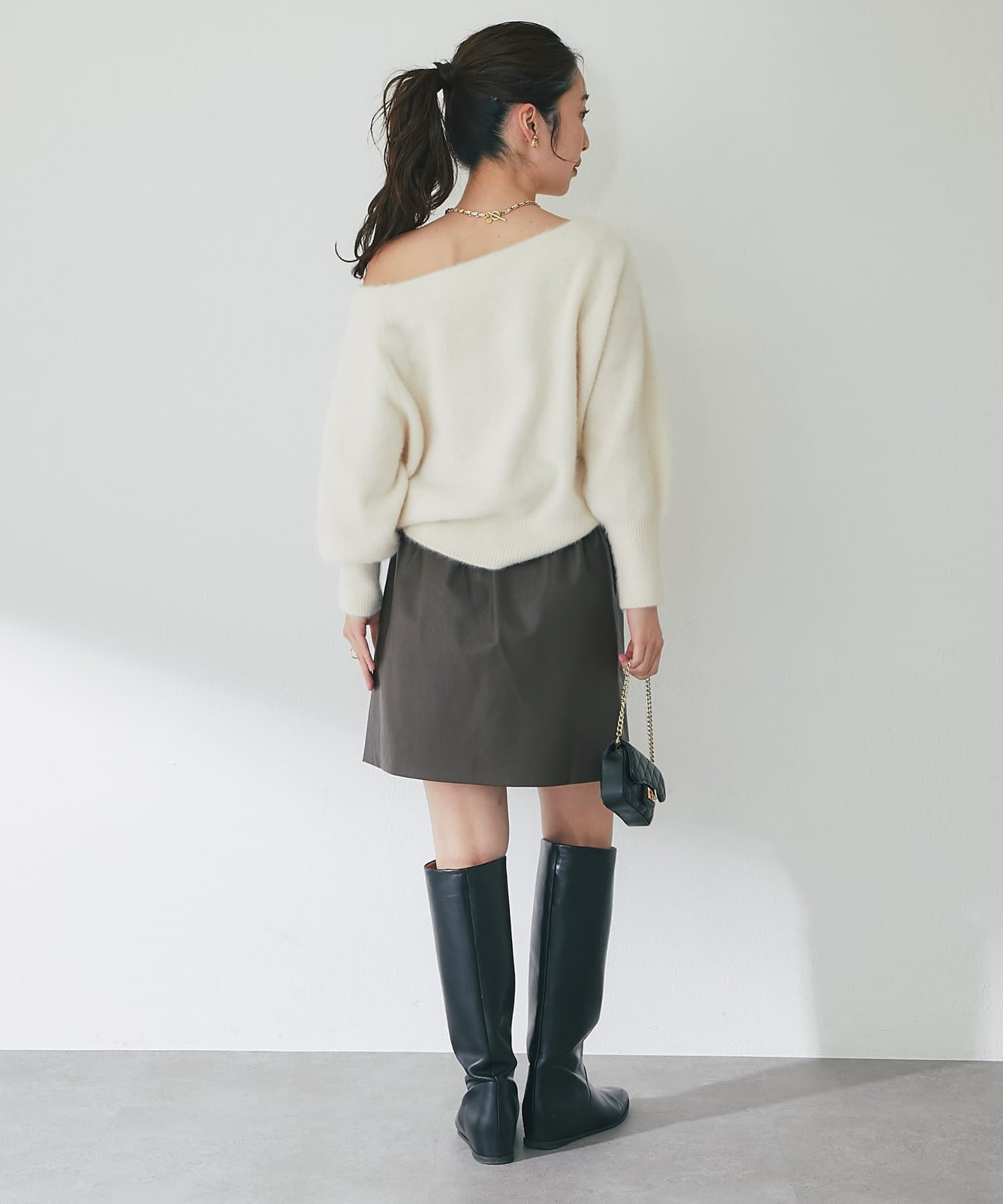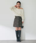 ふわふわのニットと合わせた女性らしさの際立つコーデがオススメ。