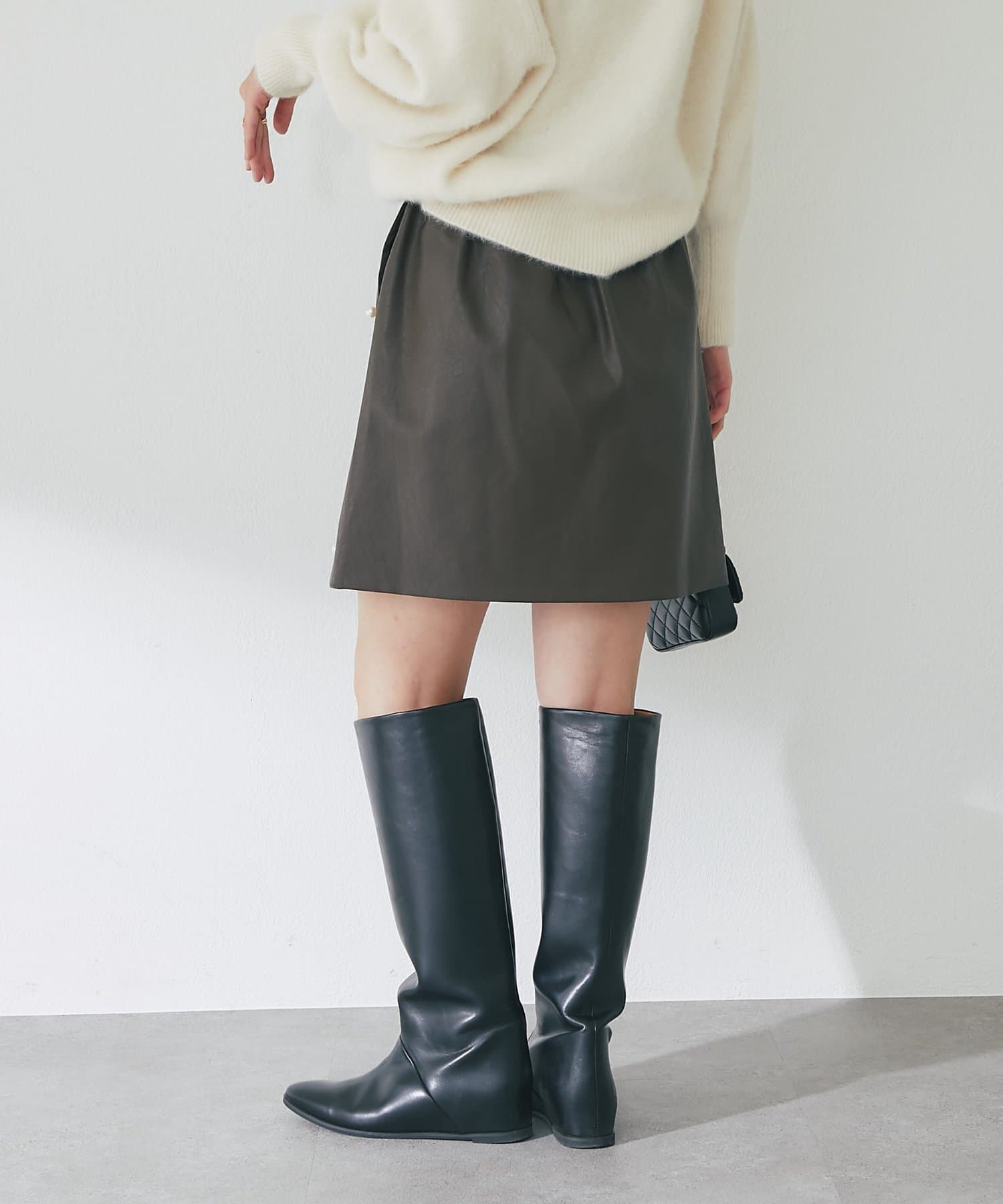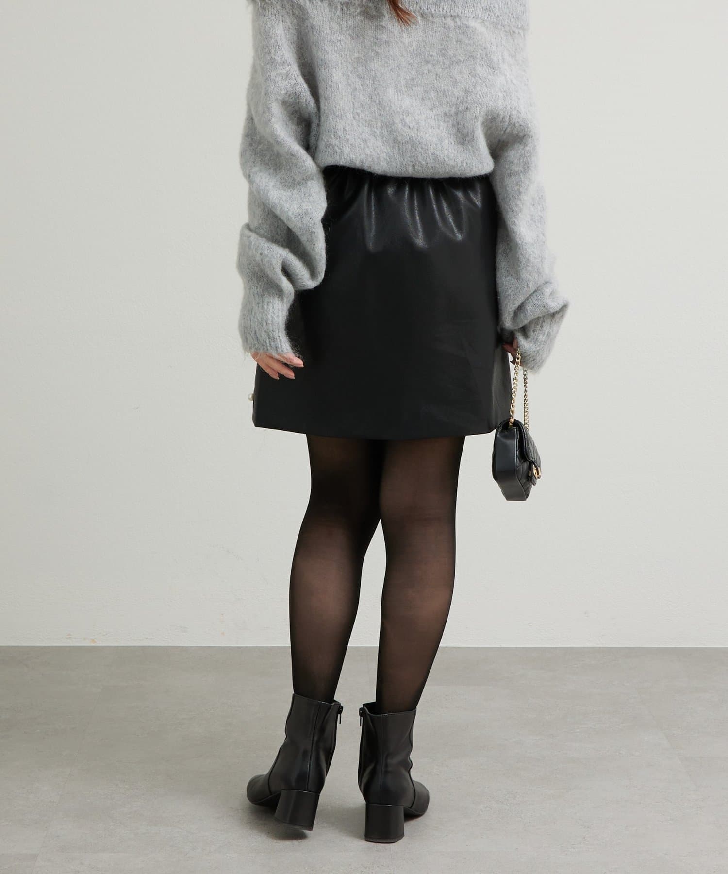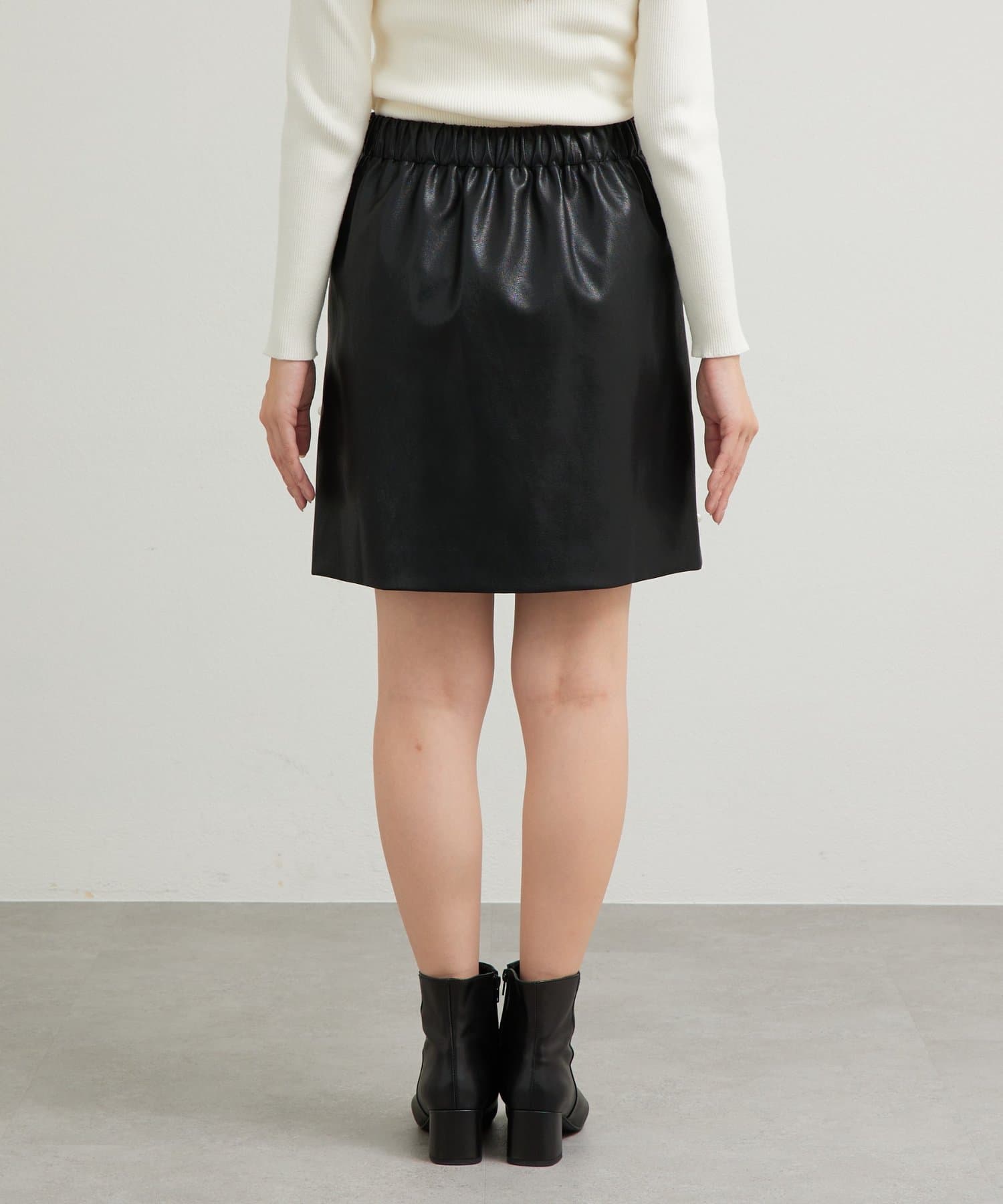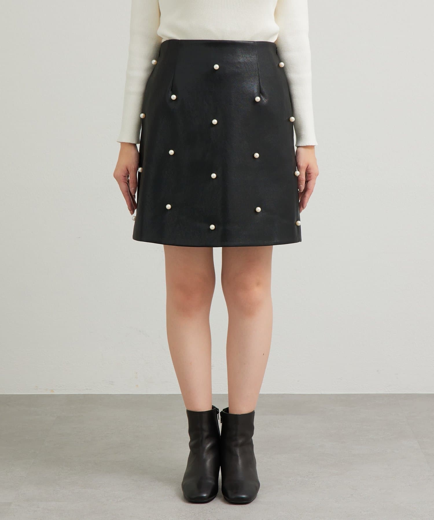 上品な光沢を放つフェイクレザーに繊細なパールを散りばめた、大人可愛いレザースカート。