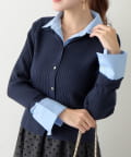 【取り外し可・着回し力抜群】布帛ドッキングアンゴラタッチリブニットカーディガン