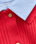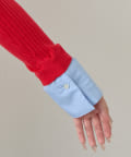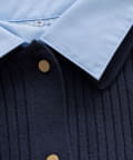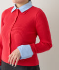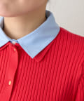 襟と袖口のバイカラーが目を引くリブニットカーディガン。
