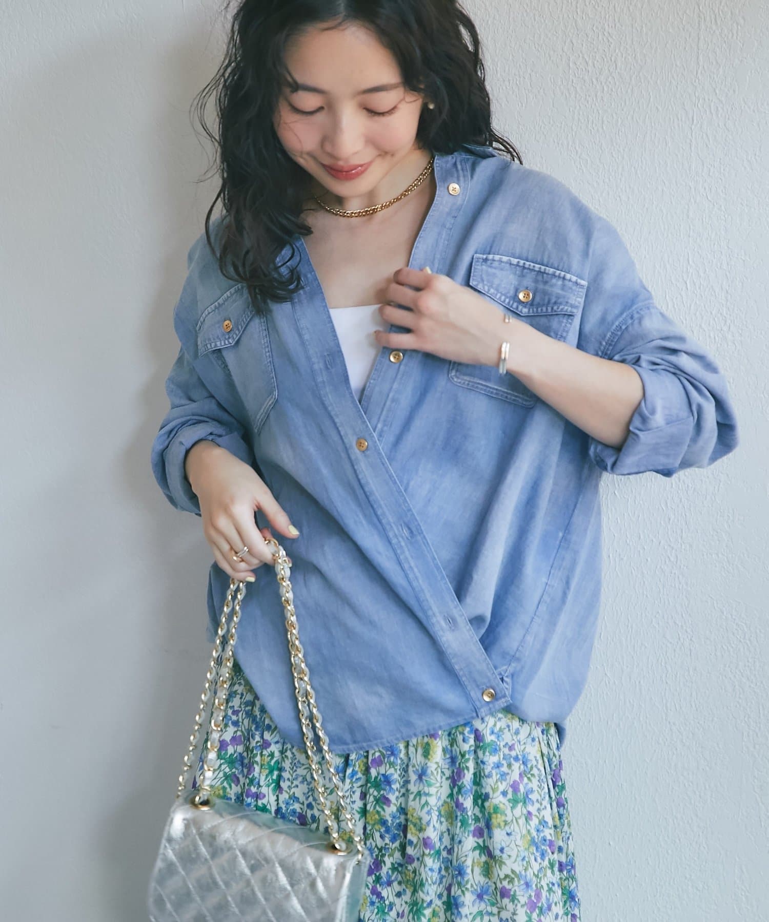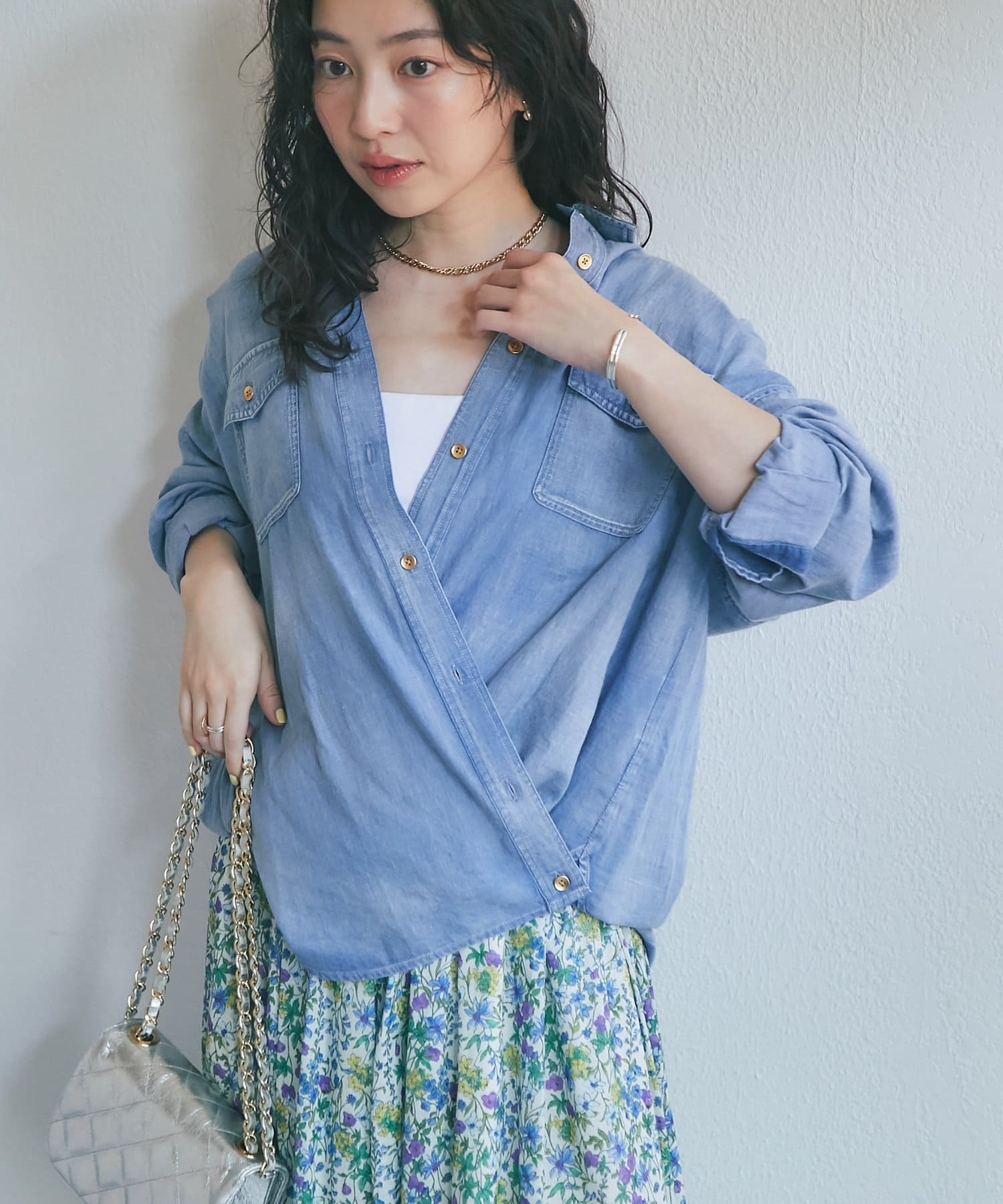 TOP > La boutique BonBon > レディース > トップス > シャツ/ブラウス(ボタン) > 【RISA監修】シアーデニム3WAYシャツ
