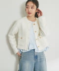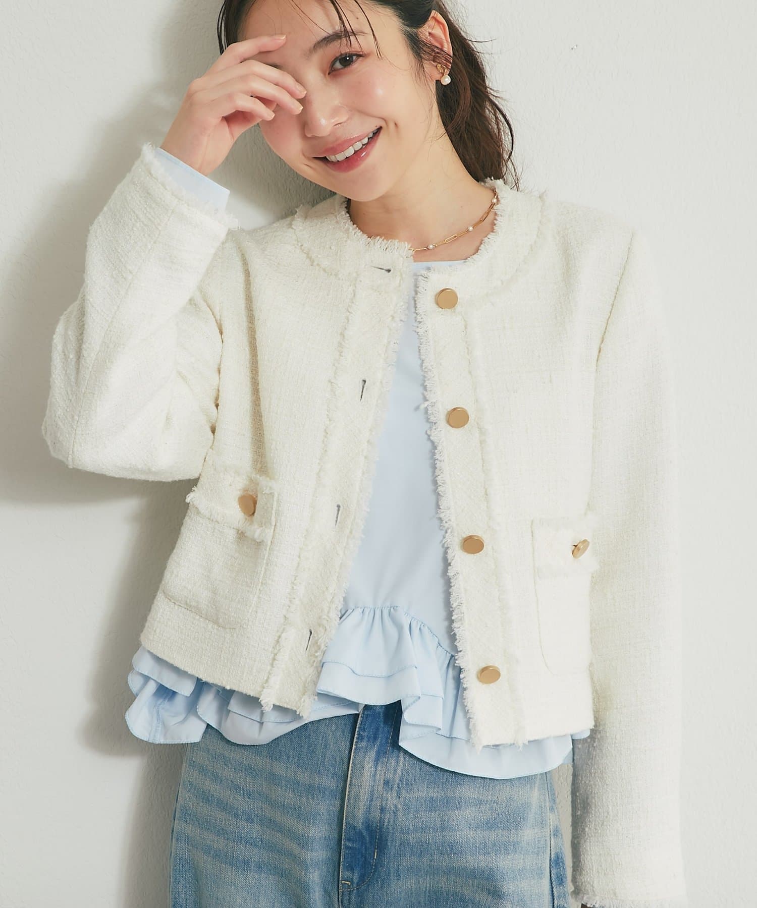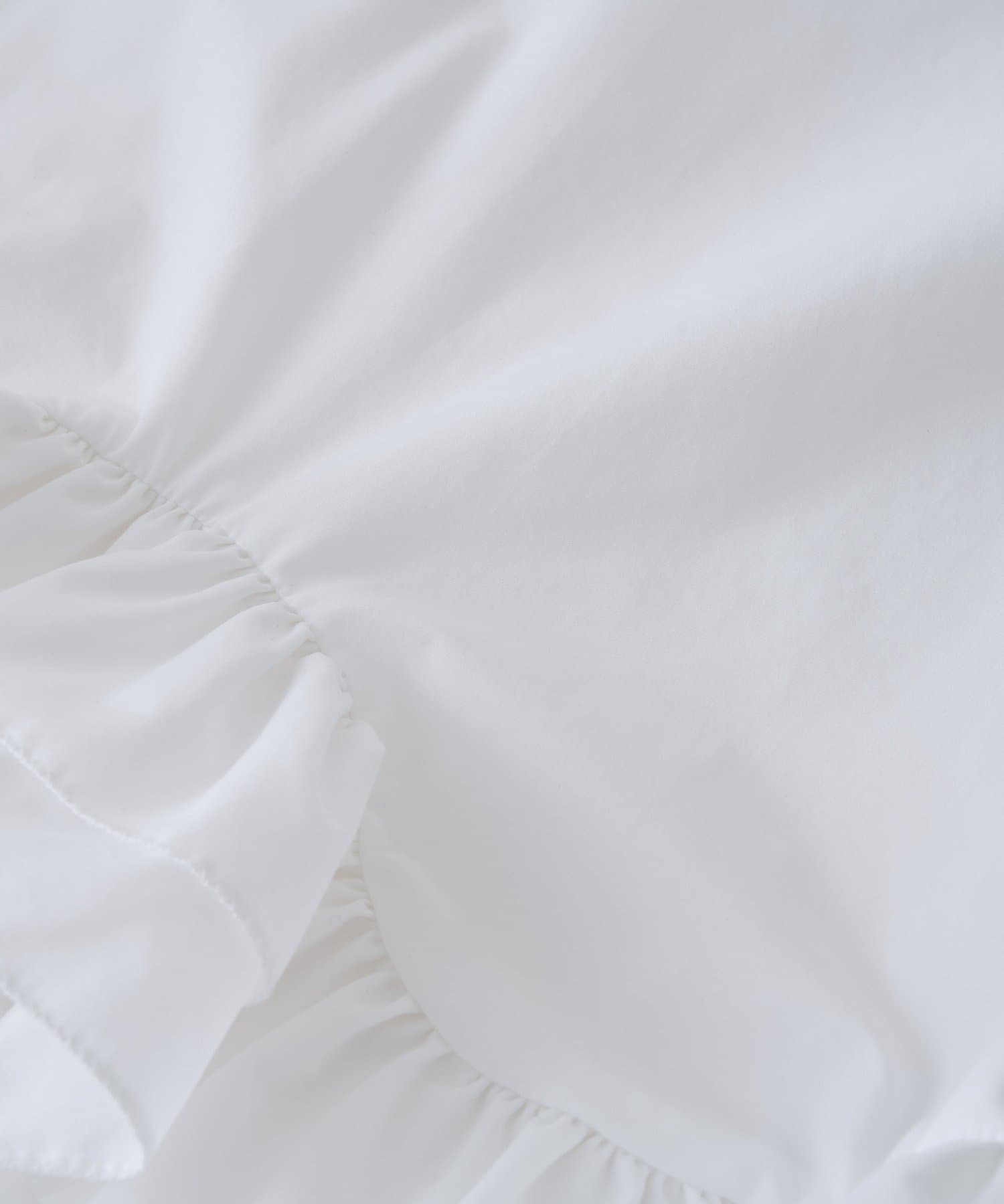 不規則な動きのフリルがさりげなくフェミニンな印象をプラス。
