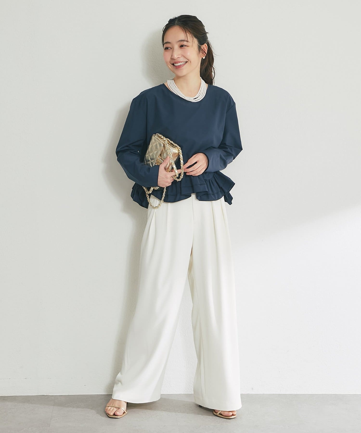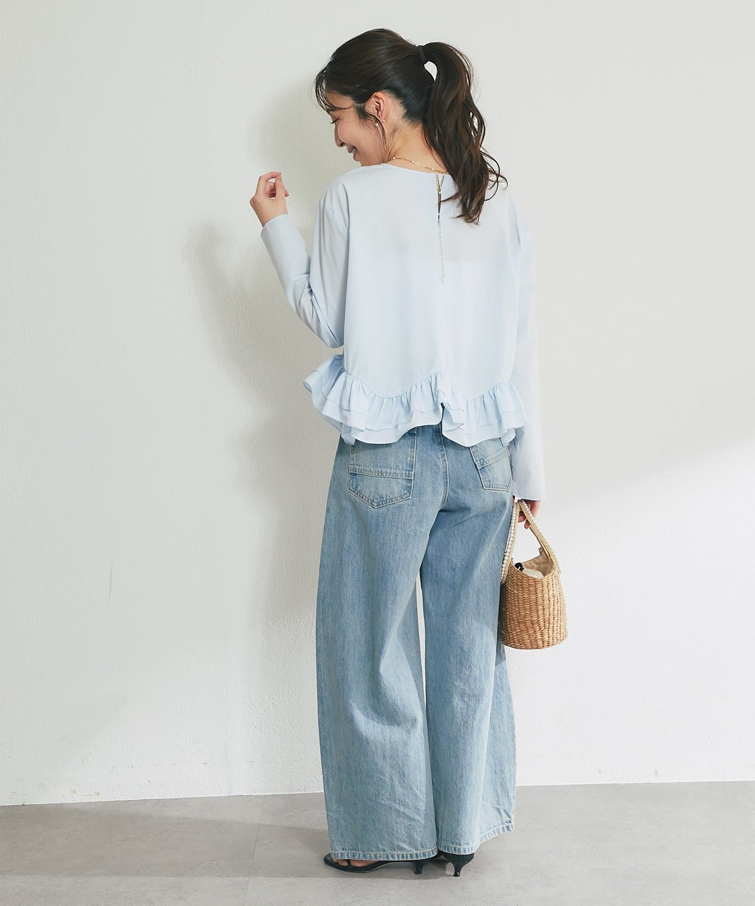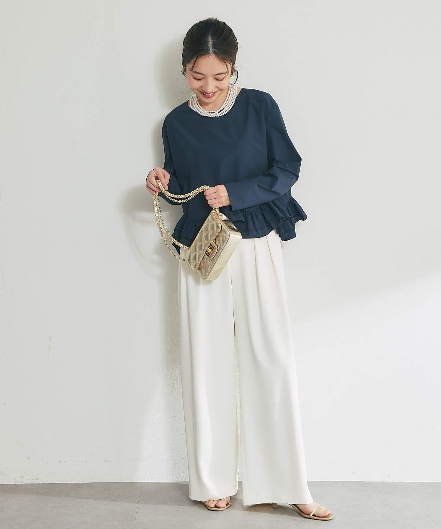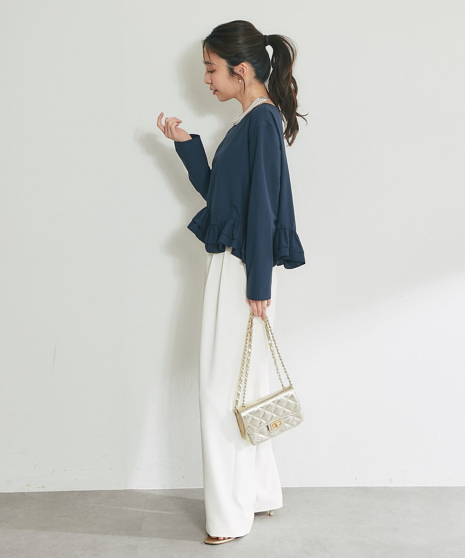 シンプルなシルエットに、ふんわりと軽やかなフリルが映えるブラウス。