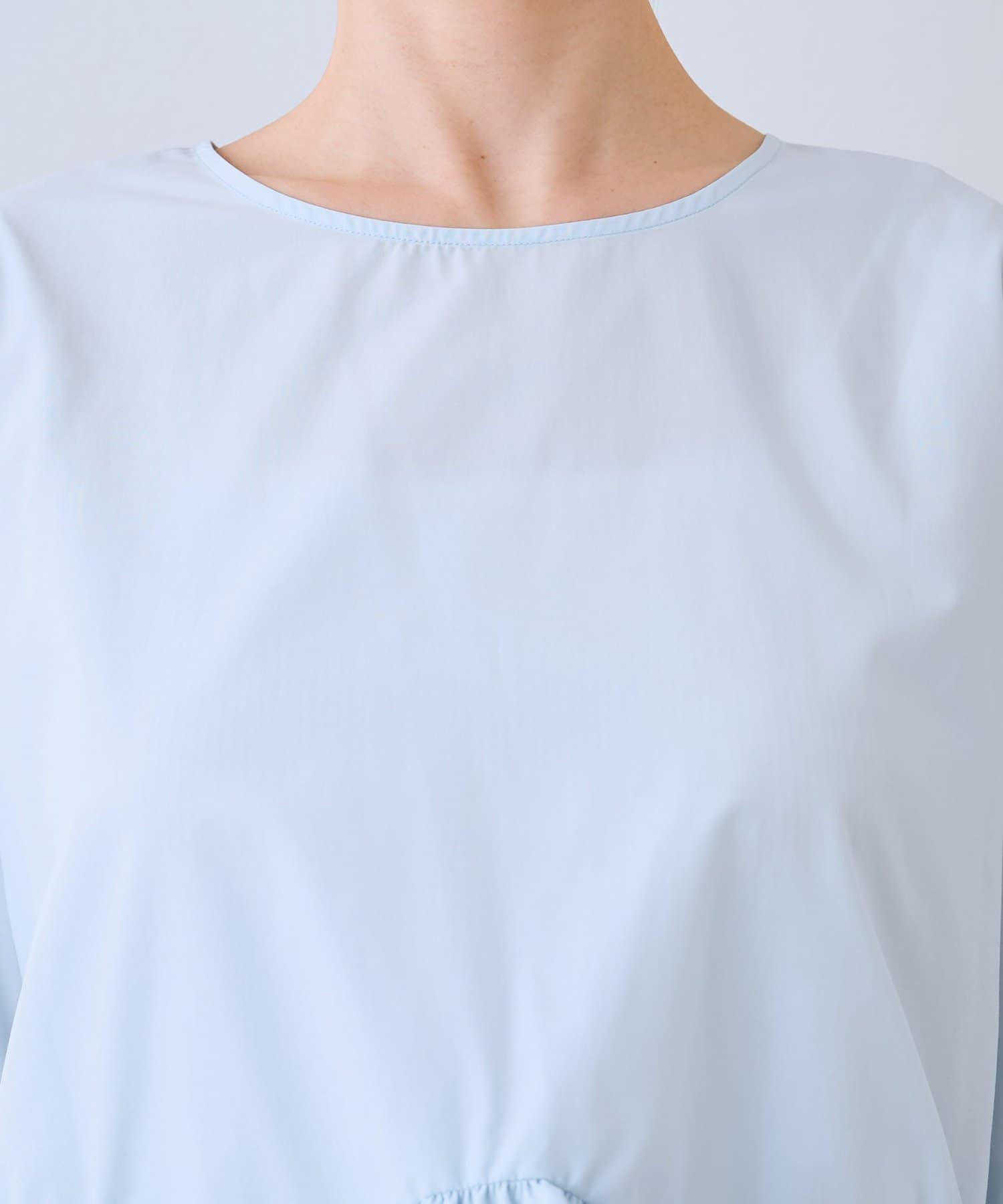 首元をすっきりと見せてくれるラウンドネックでネックレスとの相性も◎
