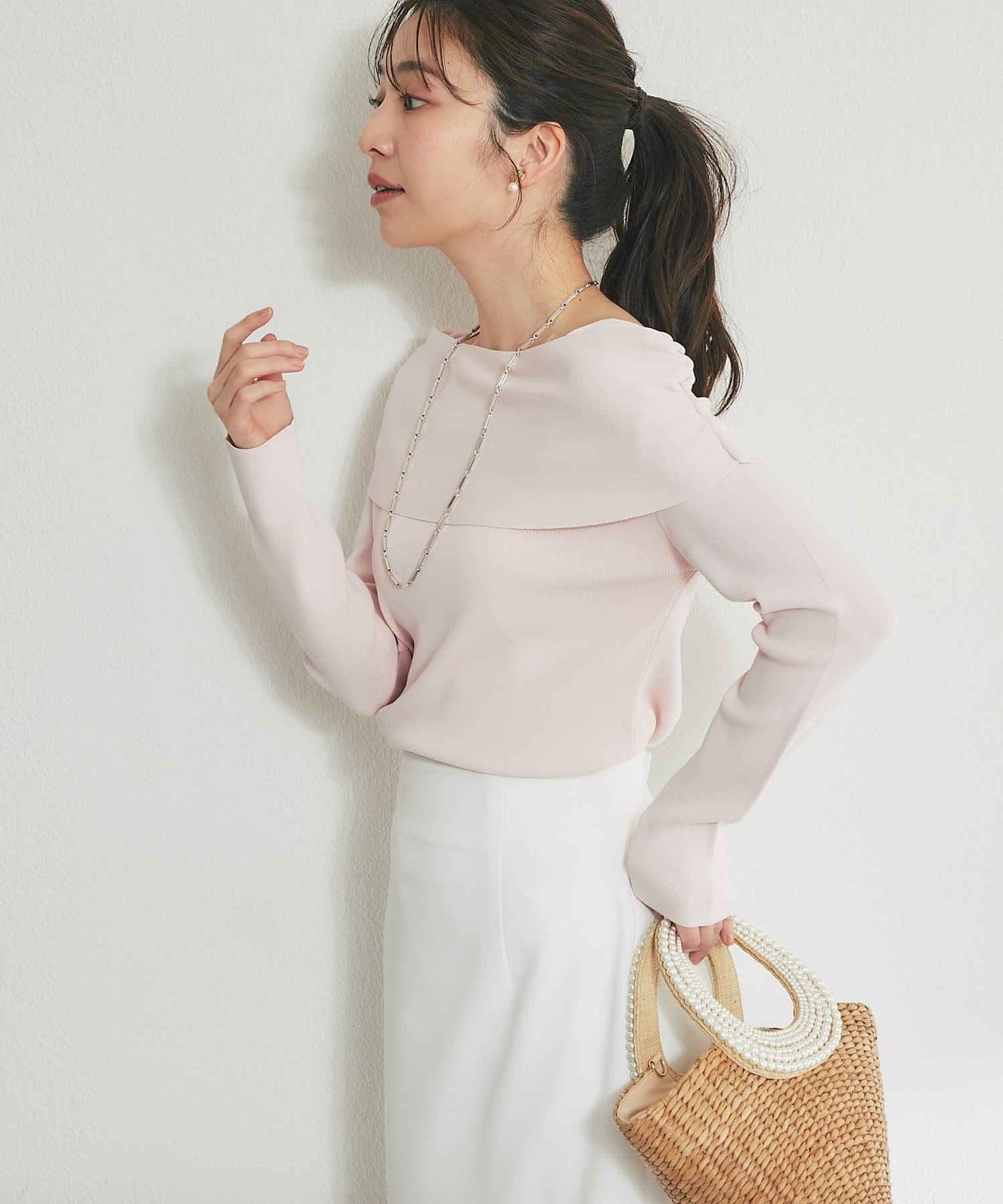 いつものスタイルがワンランクアップする大人のオフショルニット