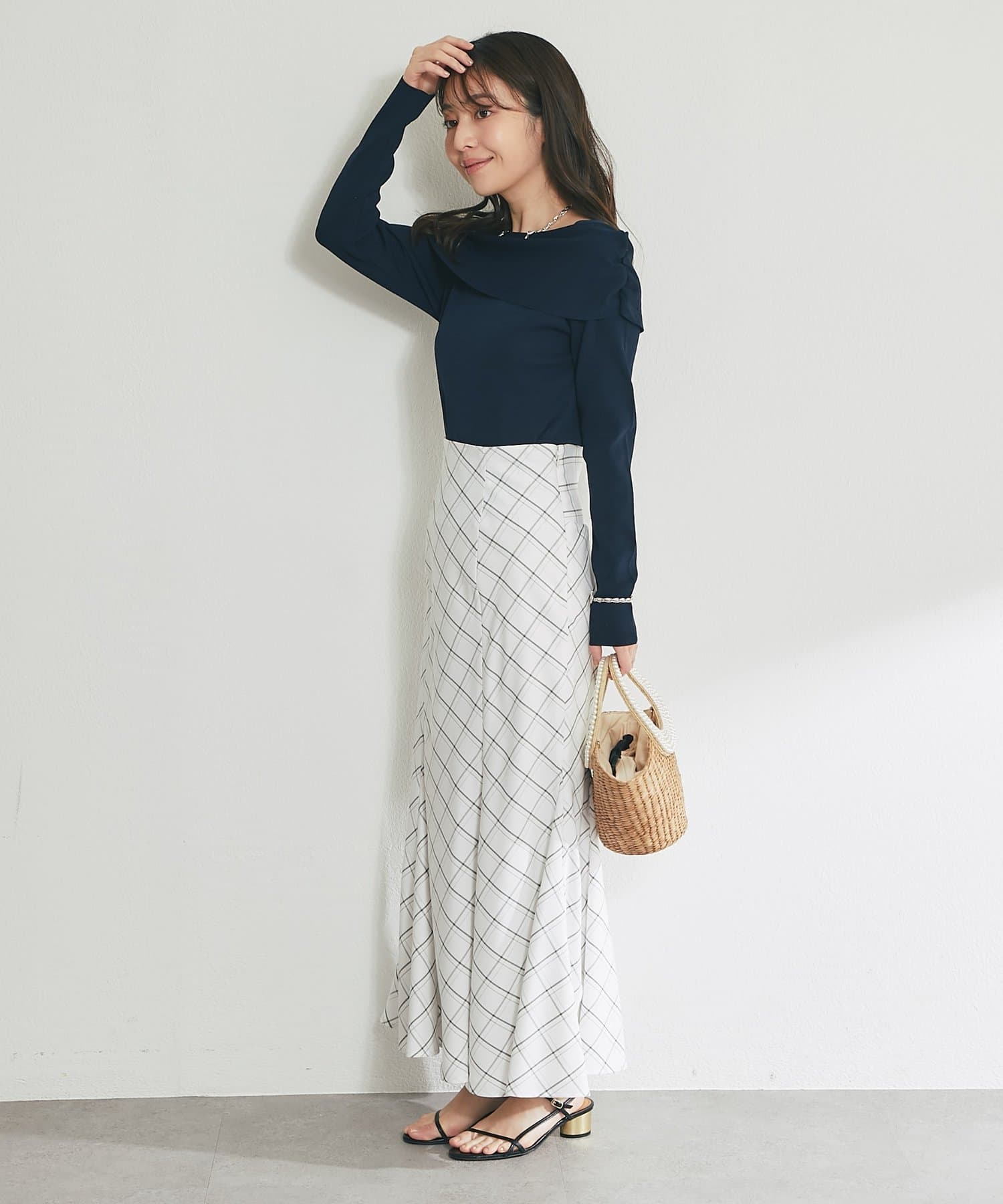 ブラウスやニットと合わせて、フェミニンで上品なスタイリングに。