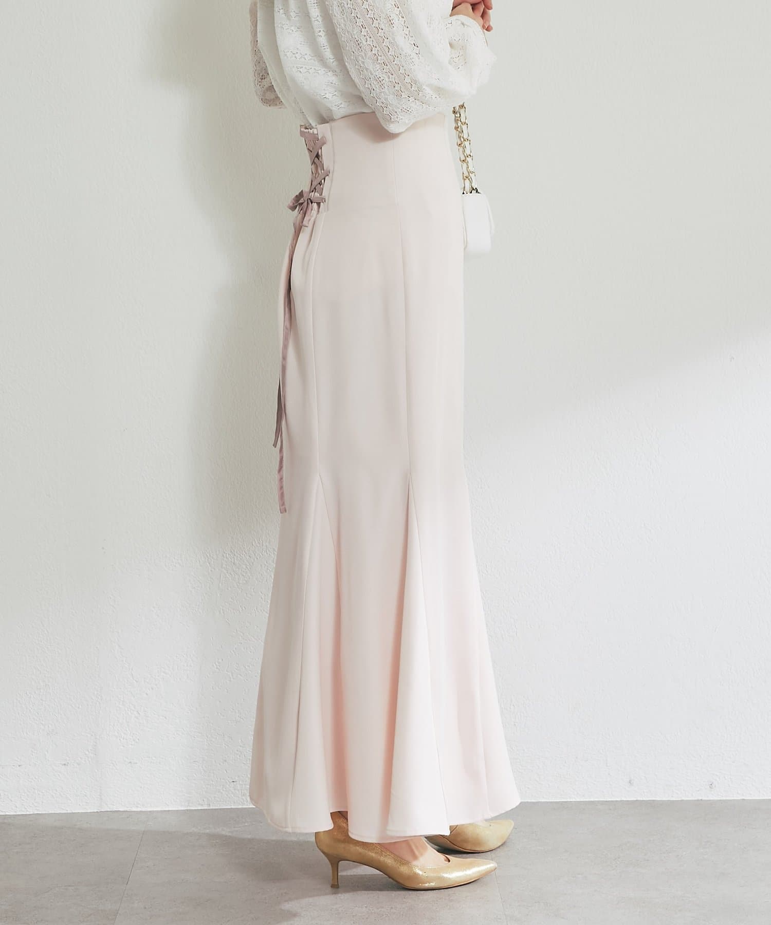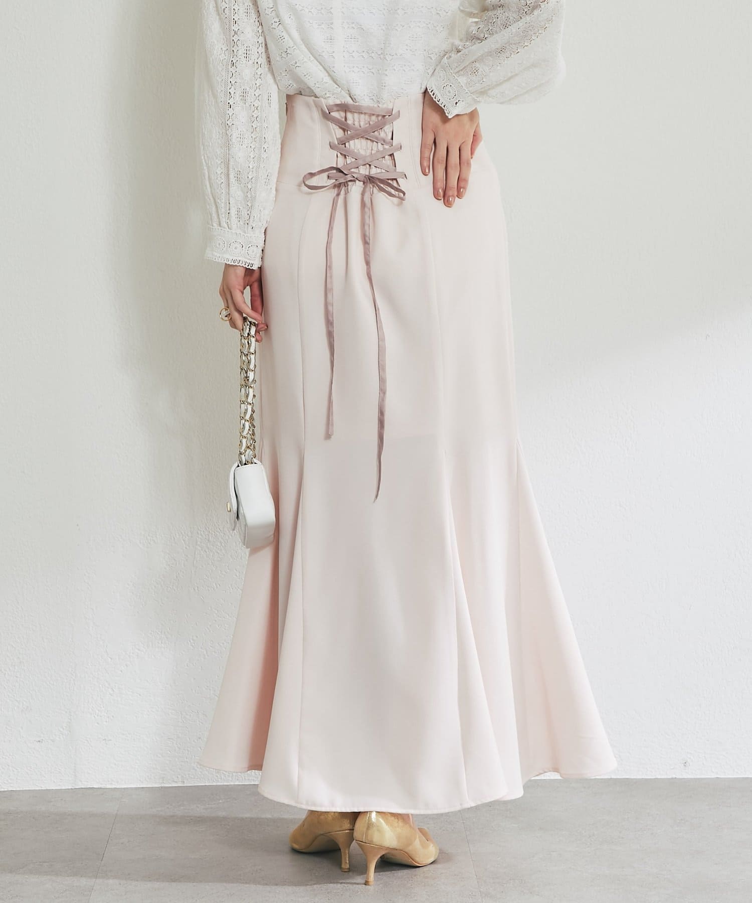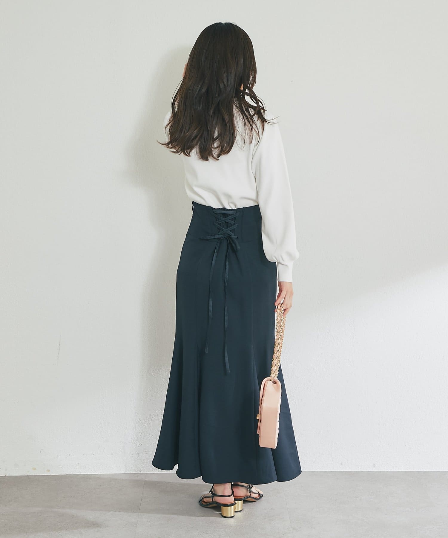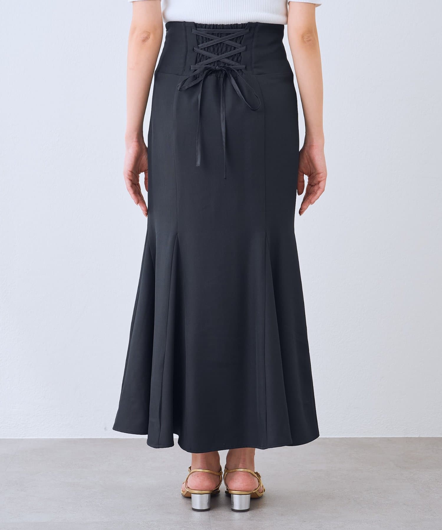 後ろ姿まで美しく。レースアップが映えるマーメイドスカート。