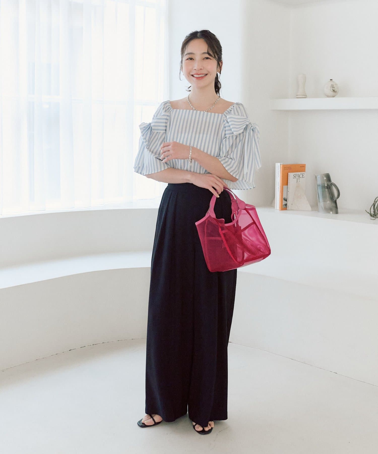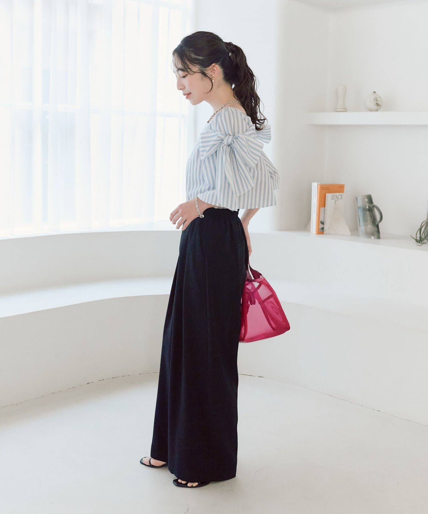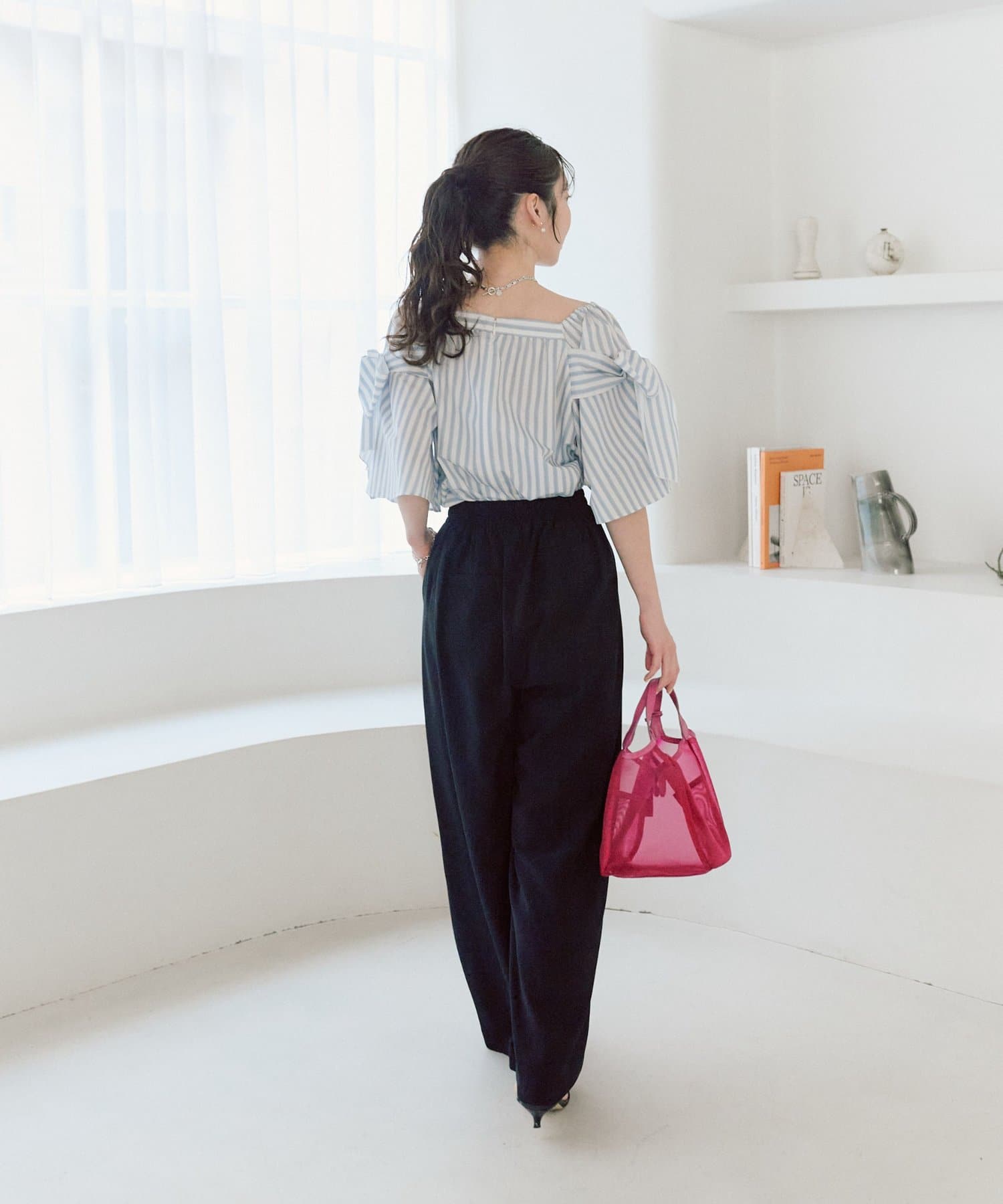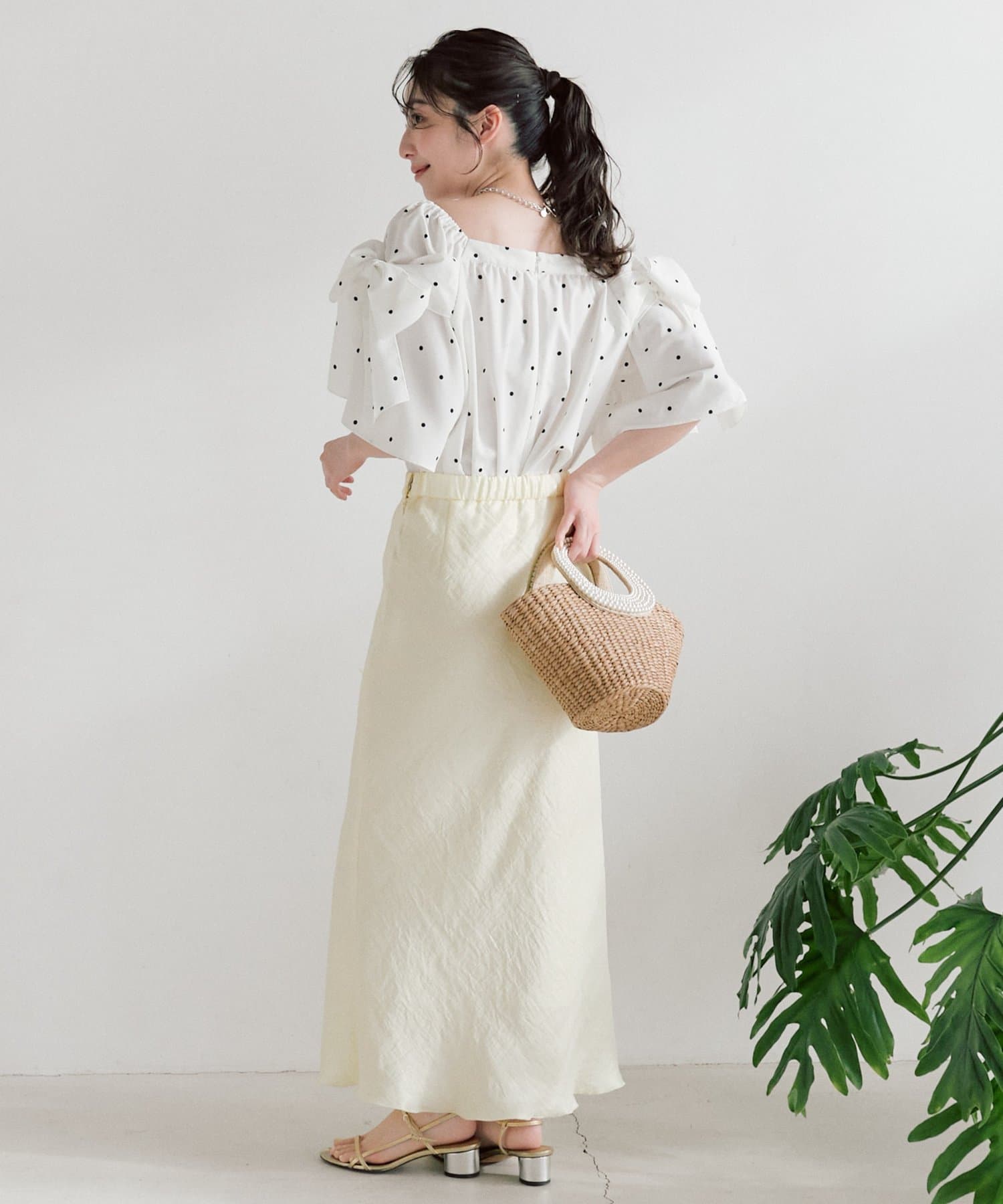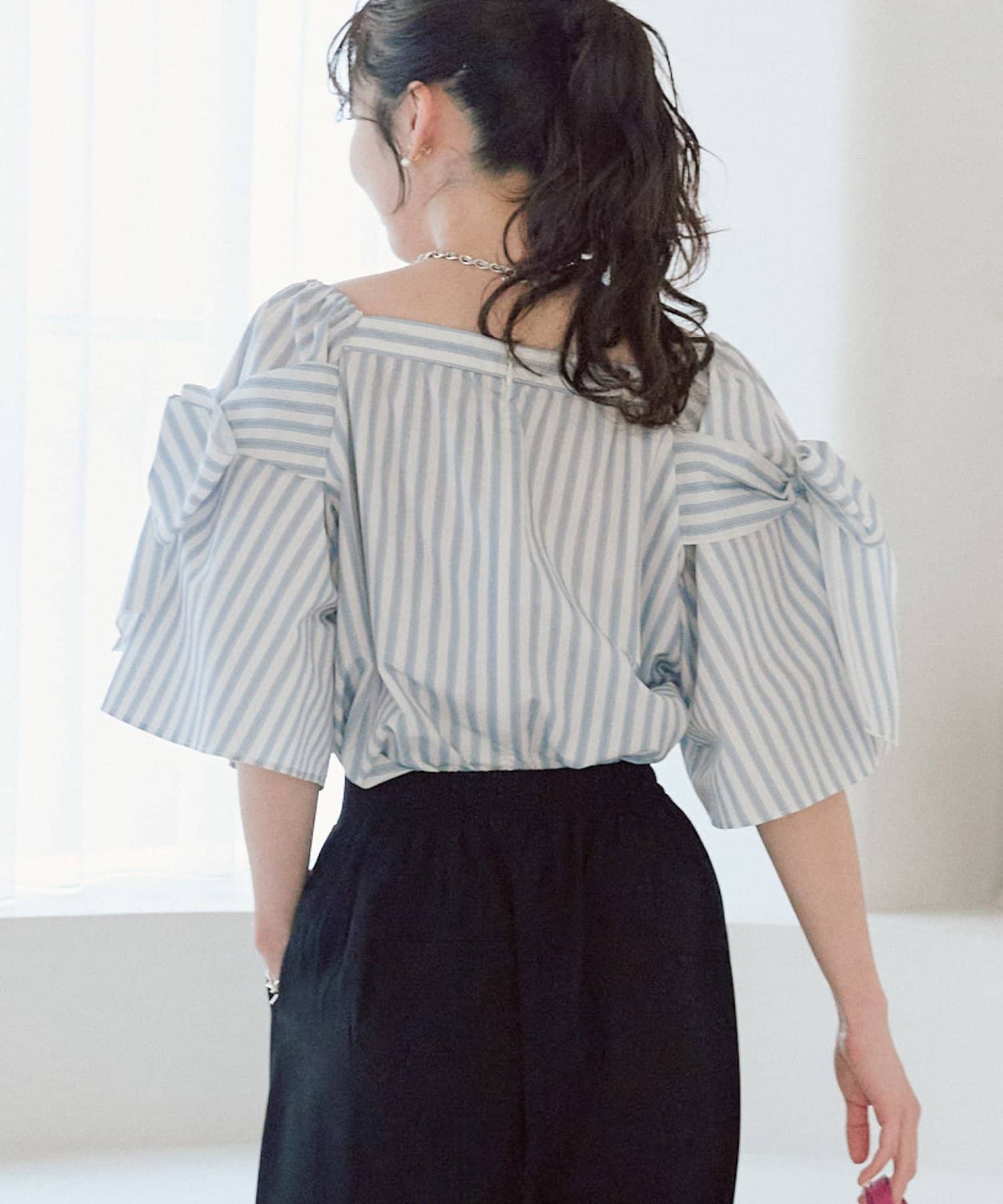 ボリュームのあるブラウスなので、シンプルなタイトスカートやワイドパンツ合わせがお勧めです。