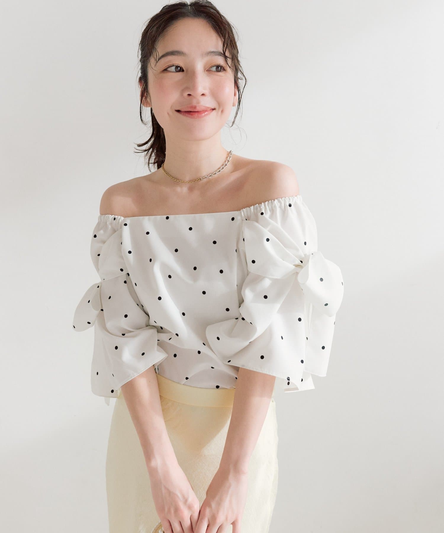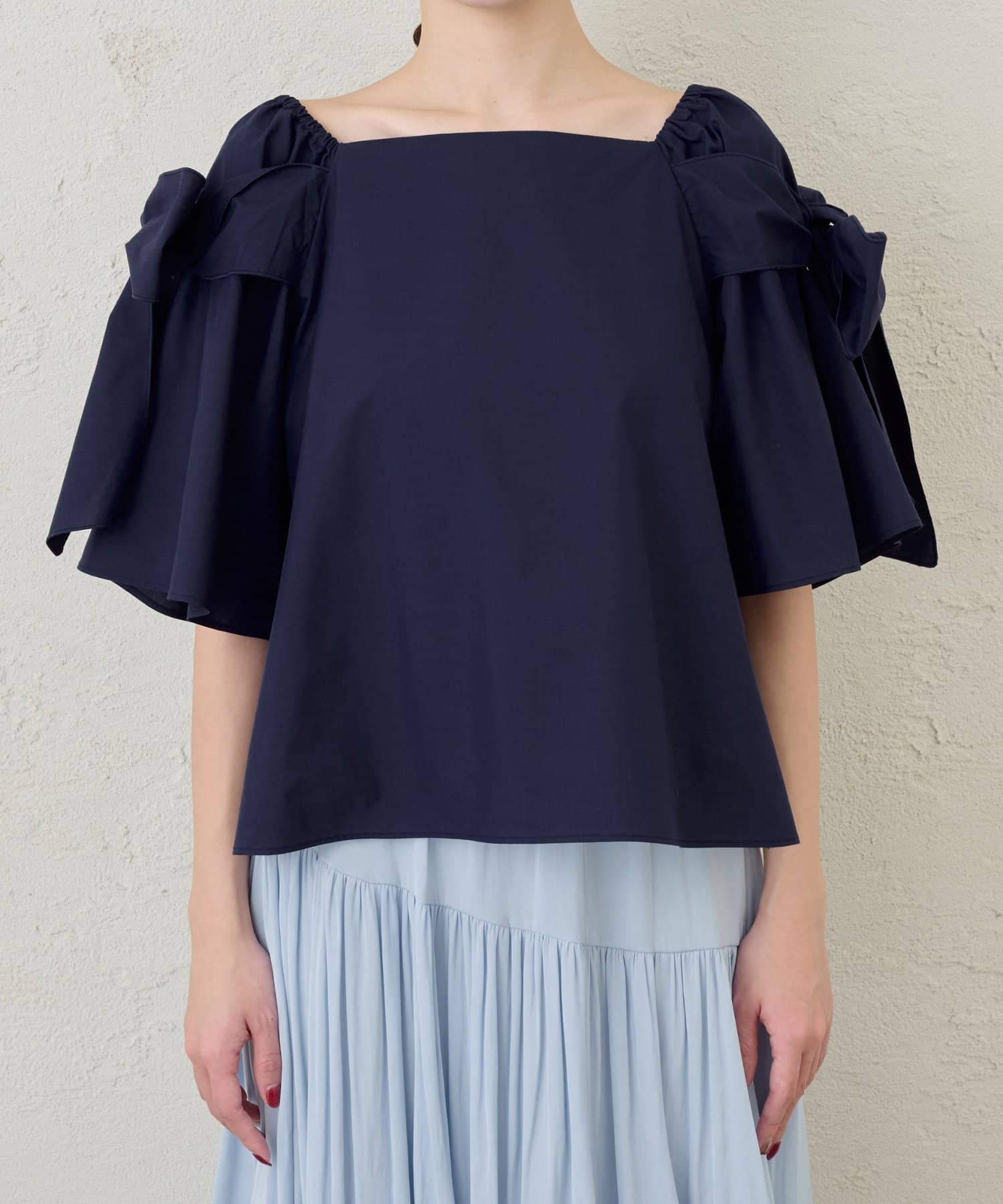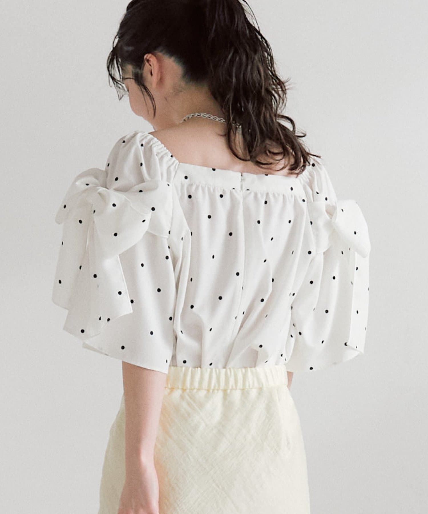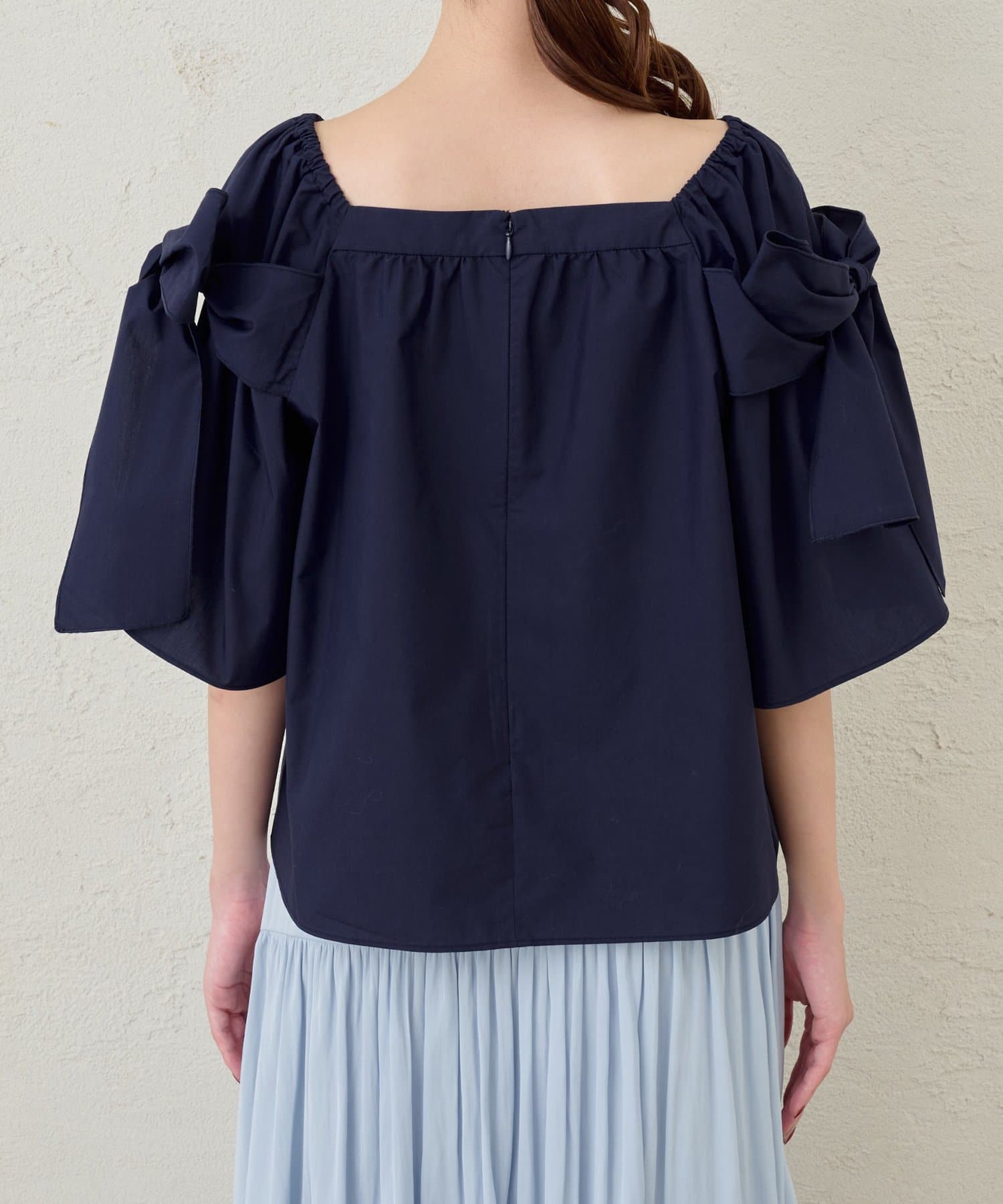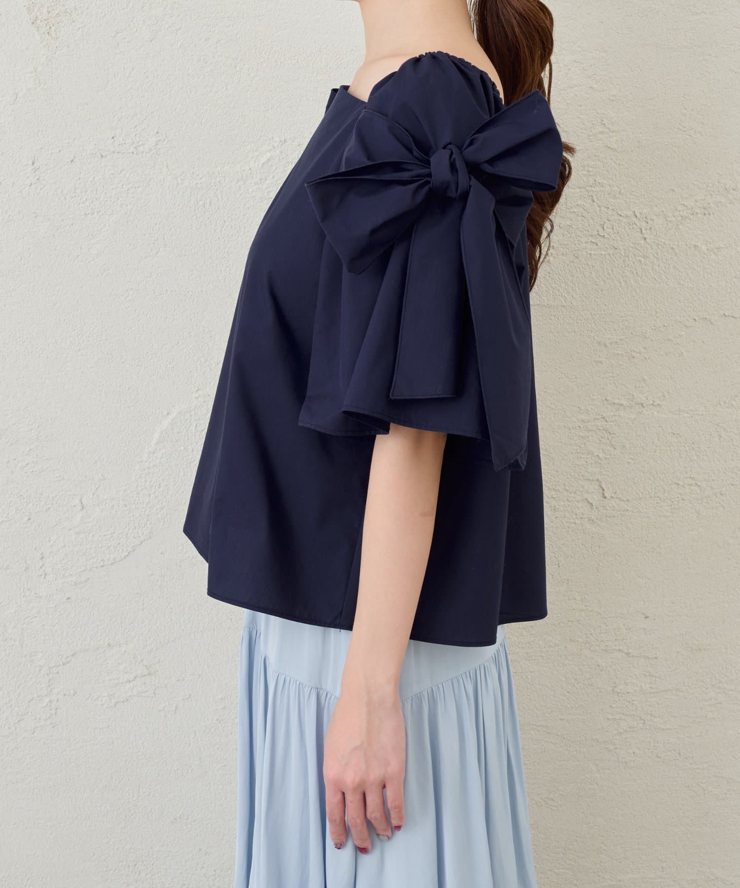 昨年好評だった肩のリボンが大人可愛いブラウス。