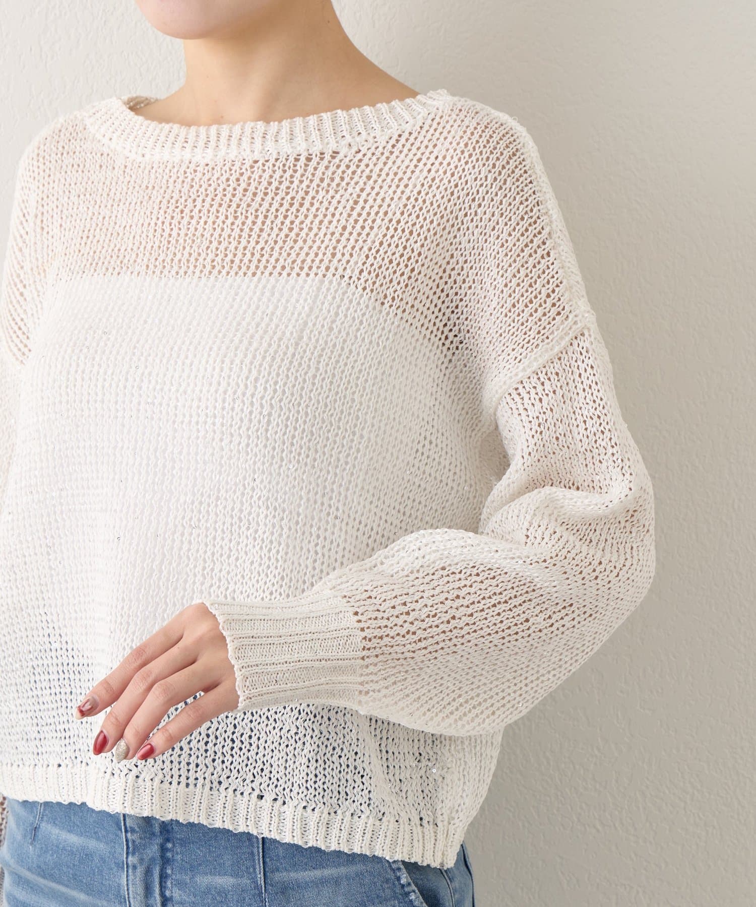 清涼感がありシワになりにくいギマ素材を使用しており、ざっくりとした編地で抜け感も◎