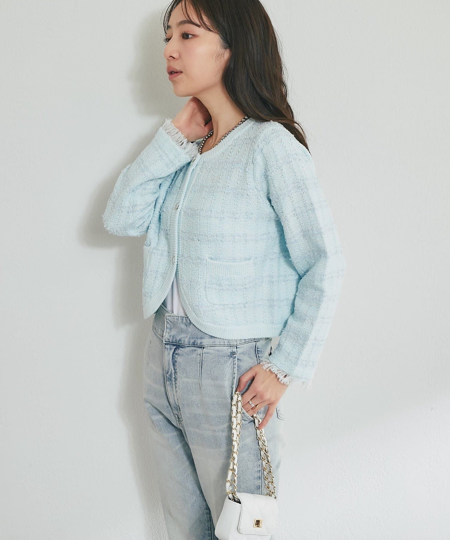 【取り入れやすいトレンド】ツイードニットボレロカーディガン